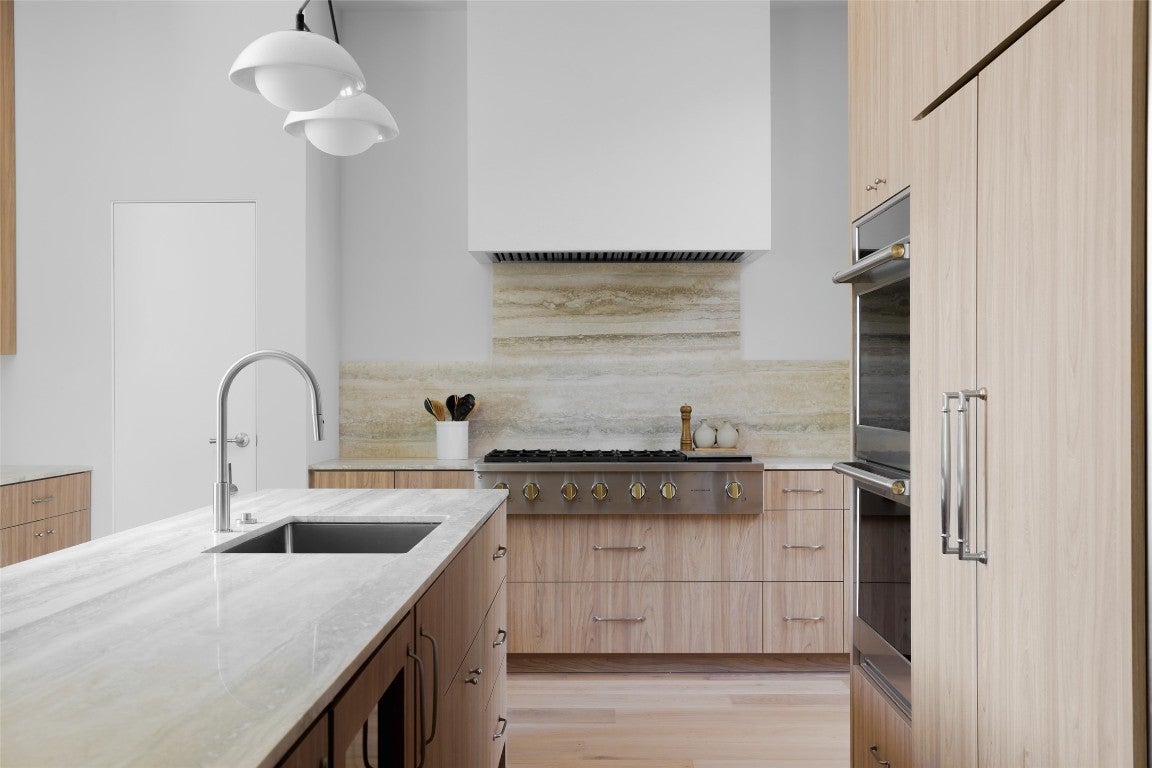 - Built-In Gas Range, Built-In Oven, Built-In Refrigerator, Double Oven, Dishwasher, Gas Cooktop, Disposal, Oven, Range