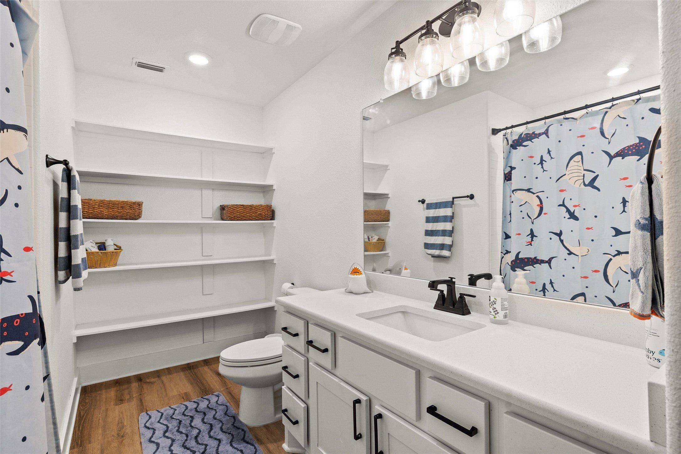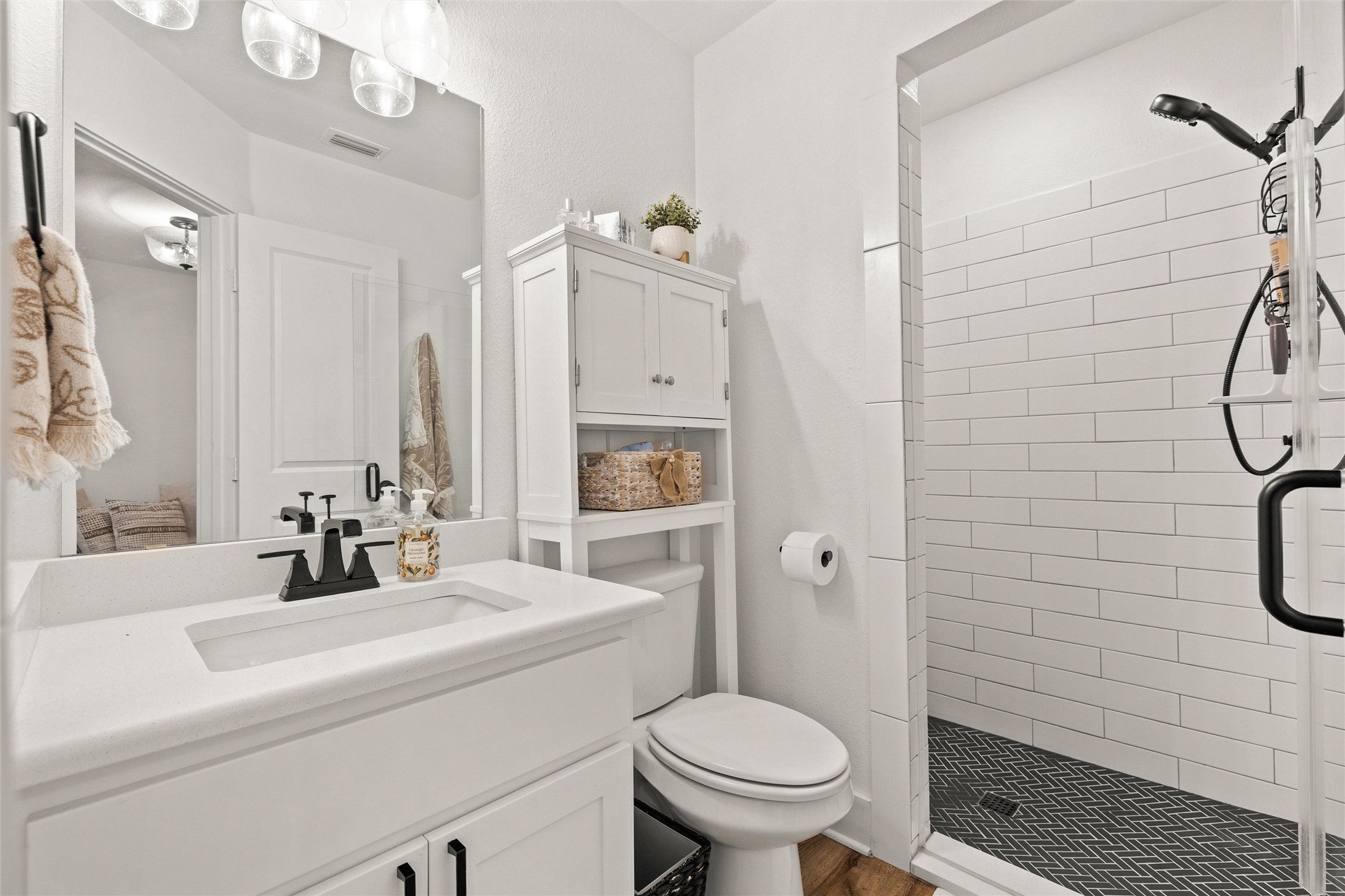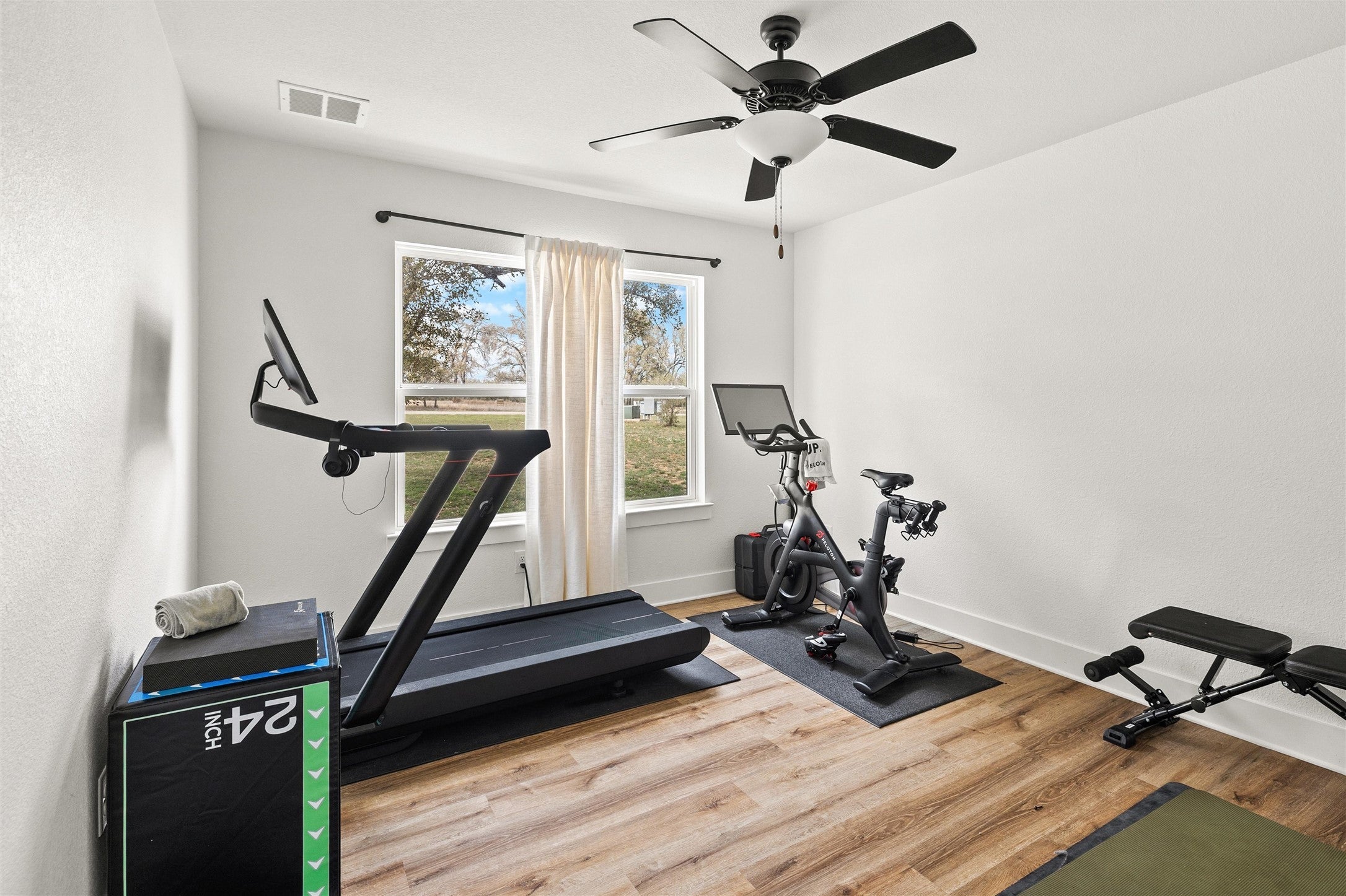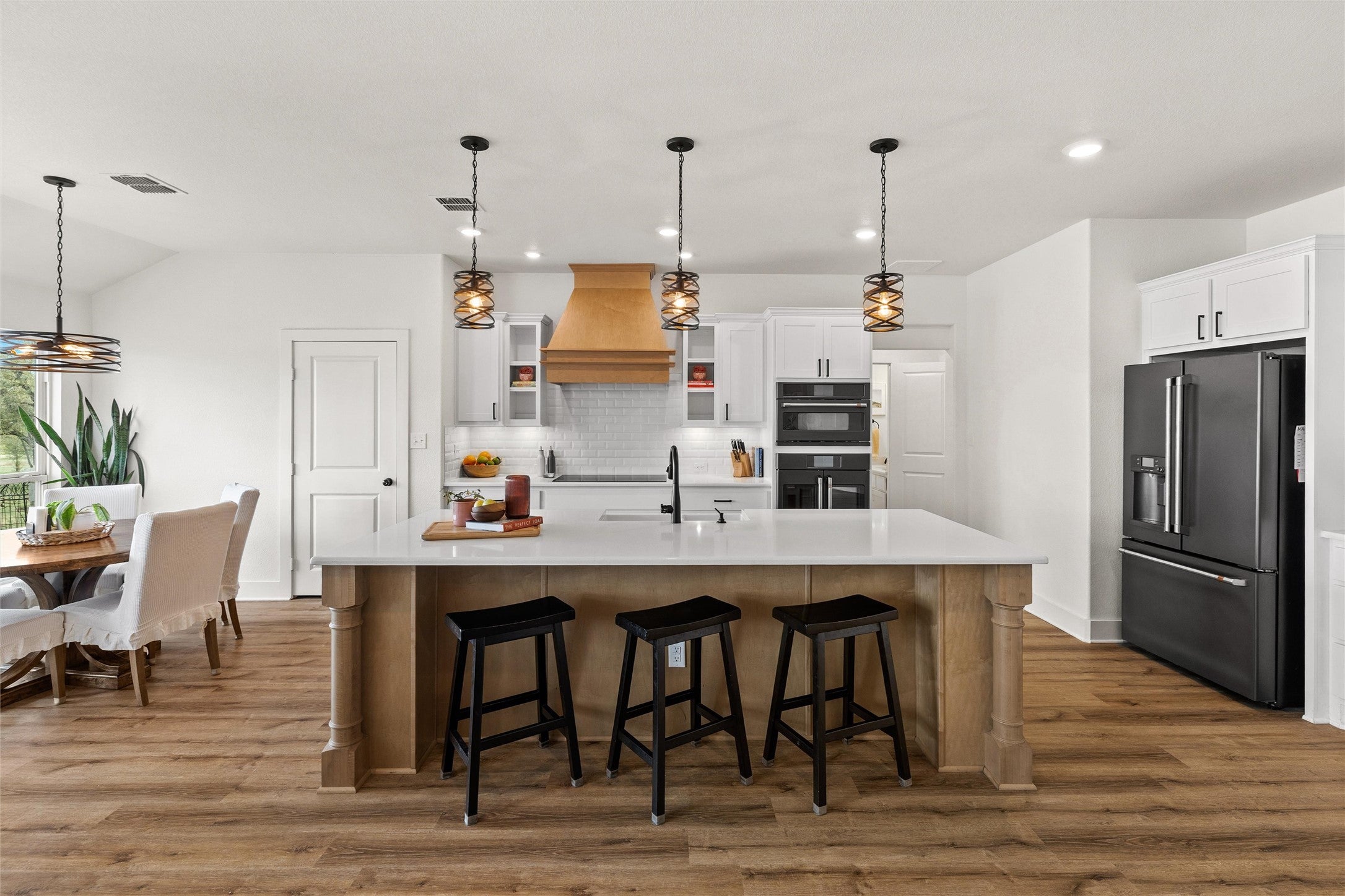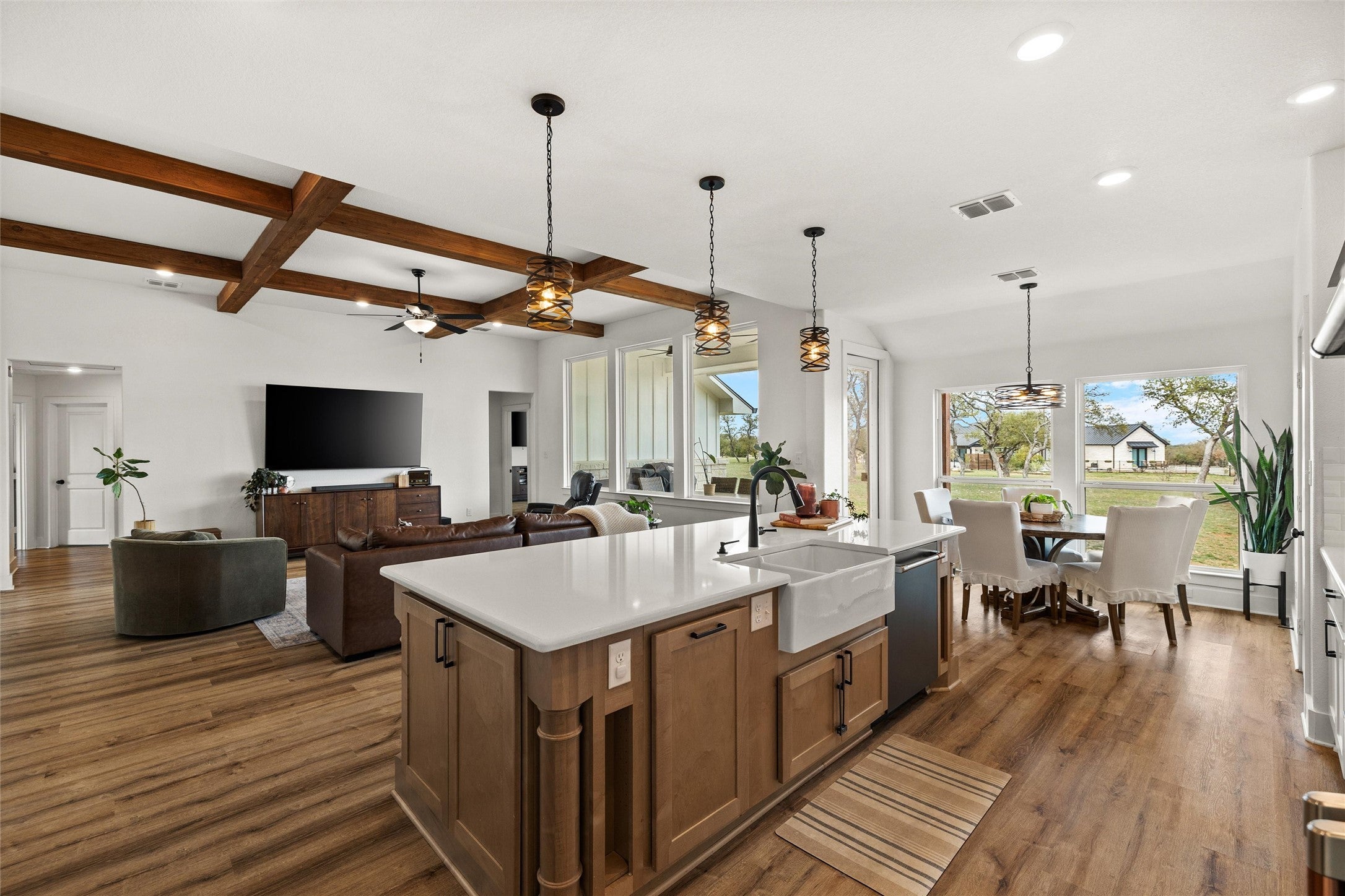 Set within the private gated community of Trinity Oaks Preserve in Round Mountain known for its large estate lots and beautifully manicured streets, 345 Morning Dew Drive offers a rare opportunity to own a newer luxury home in one of the Hill Country’s most peaceful and scenic settings. Built in 2023, this thoughtfully designed single story residence blends modern comfort with relaxed Hill Country living, all surrounded by wide-open skies and natural beauty. Inside, the home features five spacious bedrooms and four full bathrooms, with an open, flowing layout designed for both everyday living and effortless entertaining. The kitchen opens seamlessly to the main living area, creating a welcoming central gathering space with generous room for family and guests. Luxury vinyl plank flooring runs throughout the home, providing both durability and style while tying the spaces together with a clean, contemporary feel. One of the standout features of this property is the attached guest quarters, offering a private living area, large bedroom, and full bath—perfect for extended family, visiting guests, or a comfortable multi-generational living arrangement. The primary suite is generously sized, offering a quiet retreat, while the secondary bedrooms are equally spacious and thoughtfully positioned. Outdoor living is just as inviting, with both front and back porches that capture the charm of Hill Country life—ideal for morning coffee, evening sunsets, and enjoying the peaceful surroundings. With its combination of newer construction, lower taxes, privacy, large homesites, and quality finishes, 345 Morning Dew Drive represents a rare luxury offering in Round Mountain—where space, comfort, and a slower pace of life come together beautifully.