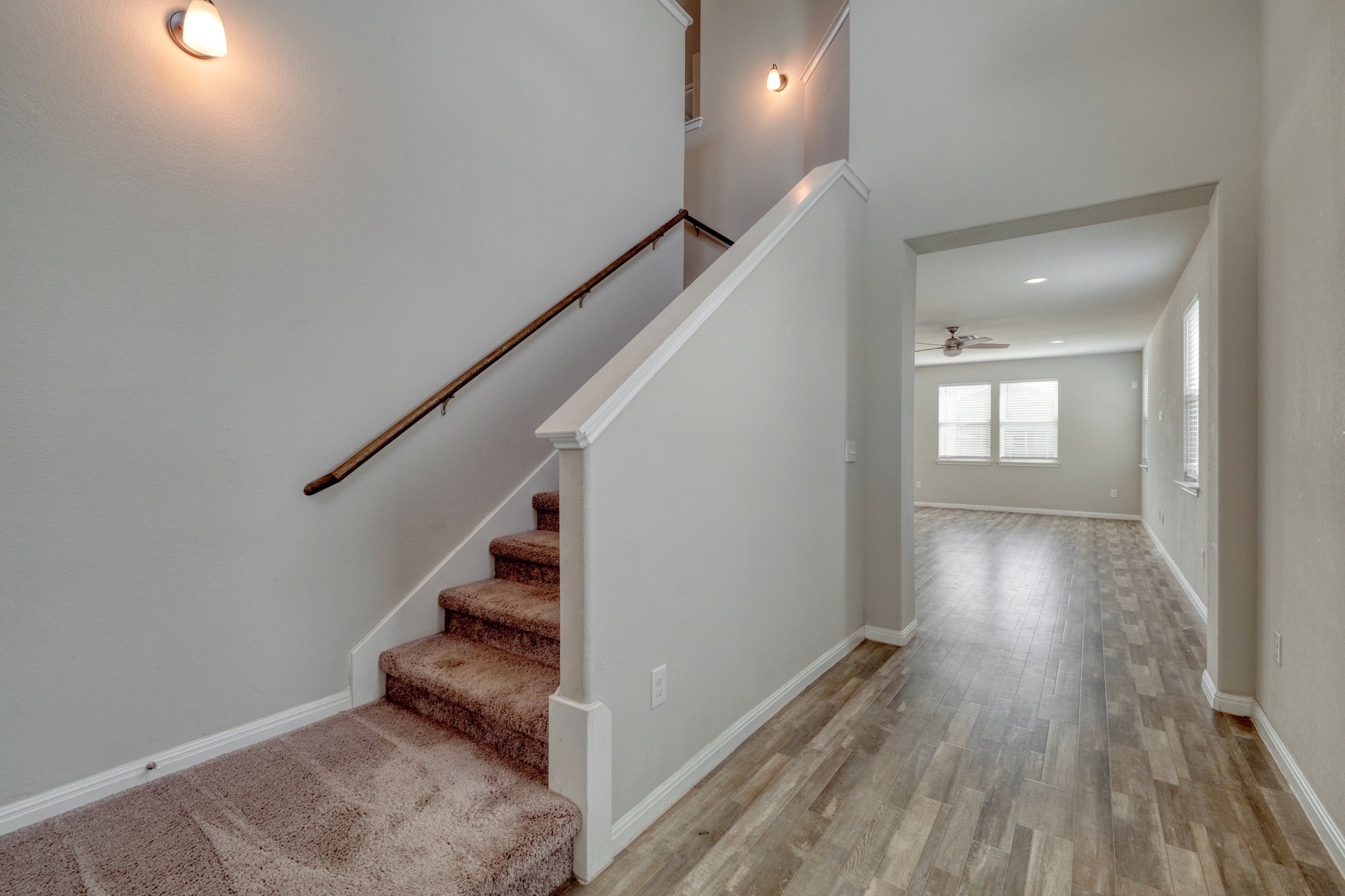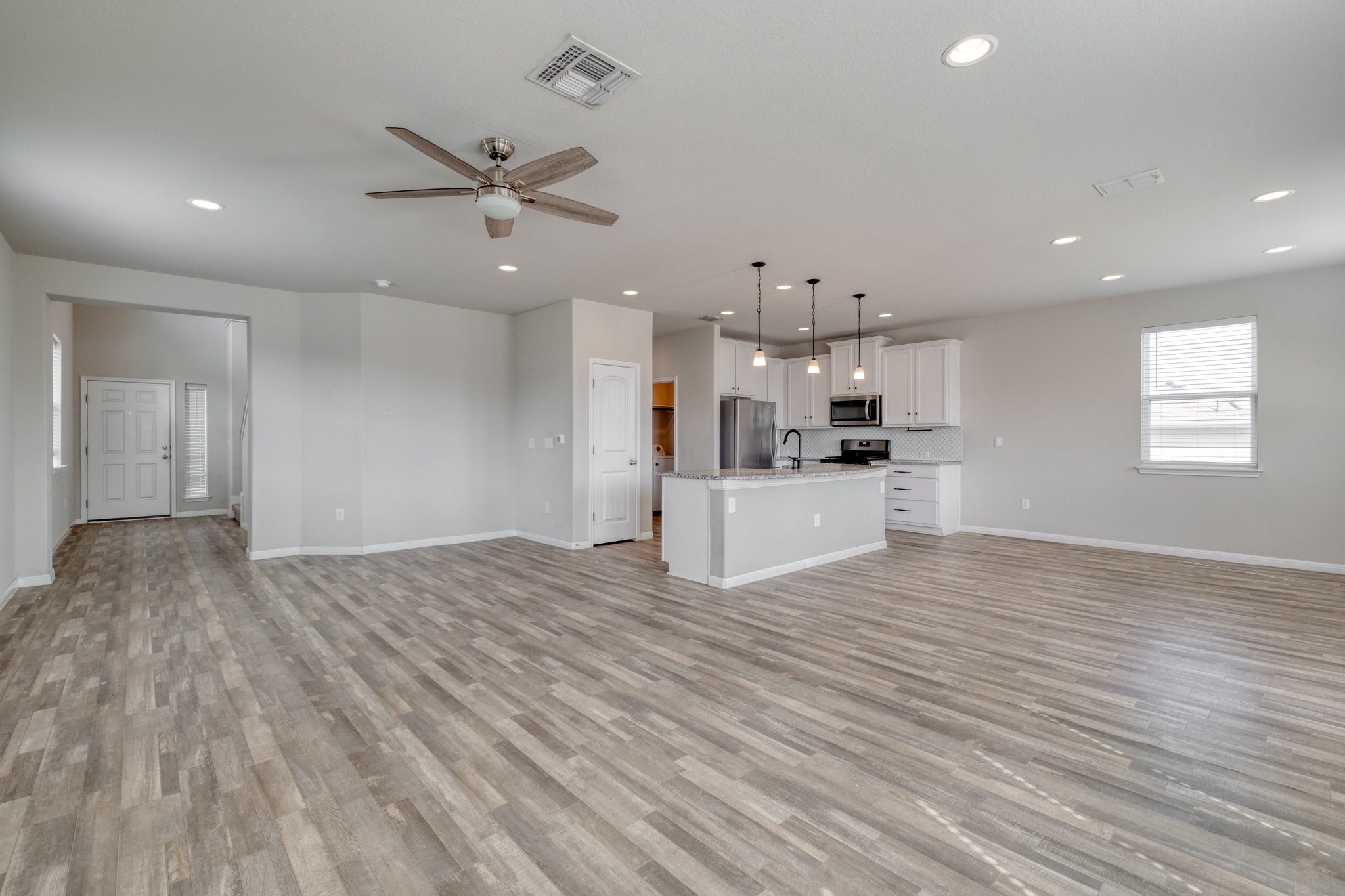 Located on a quiet cul-de-sac with a massive backyard, 10605 Harwood Overlook boasts 4 bedrooms, 3 bathrooms, open concept floor plan for the main level, with a fully fenced oversized yard. The main floor has a chef-inspired all white kitchen with oversized island, complete with gas stove, oven, granite counters, and plenty of cabinet space. Off the kitchen is the laundry room with washer & dryer included, guest half bathroom, additional storage with access to the two car garage. Upstairs welcomes you to the oversized loft with built in shelving, perfect for entertaining or a secondary living space. The owners suite has ample space for king sized bed, dresser, end tables and seating space, with the attached en-suite with dual vanities and oversized shower. Three additional upstairs guest bedrooms with walk-in closets and tons of natural light share a second full bathroom. Complete with a covered backyard patio, oversized corner lot and full irrigation systems included. Don't miss out on the opportunity to call this masterpiece your home!