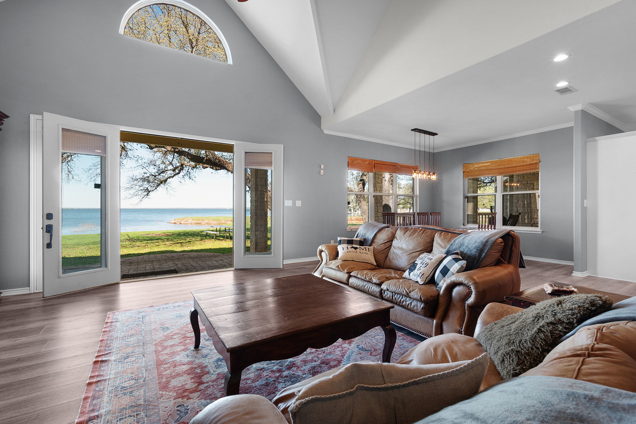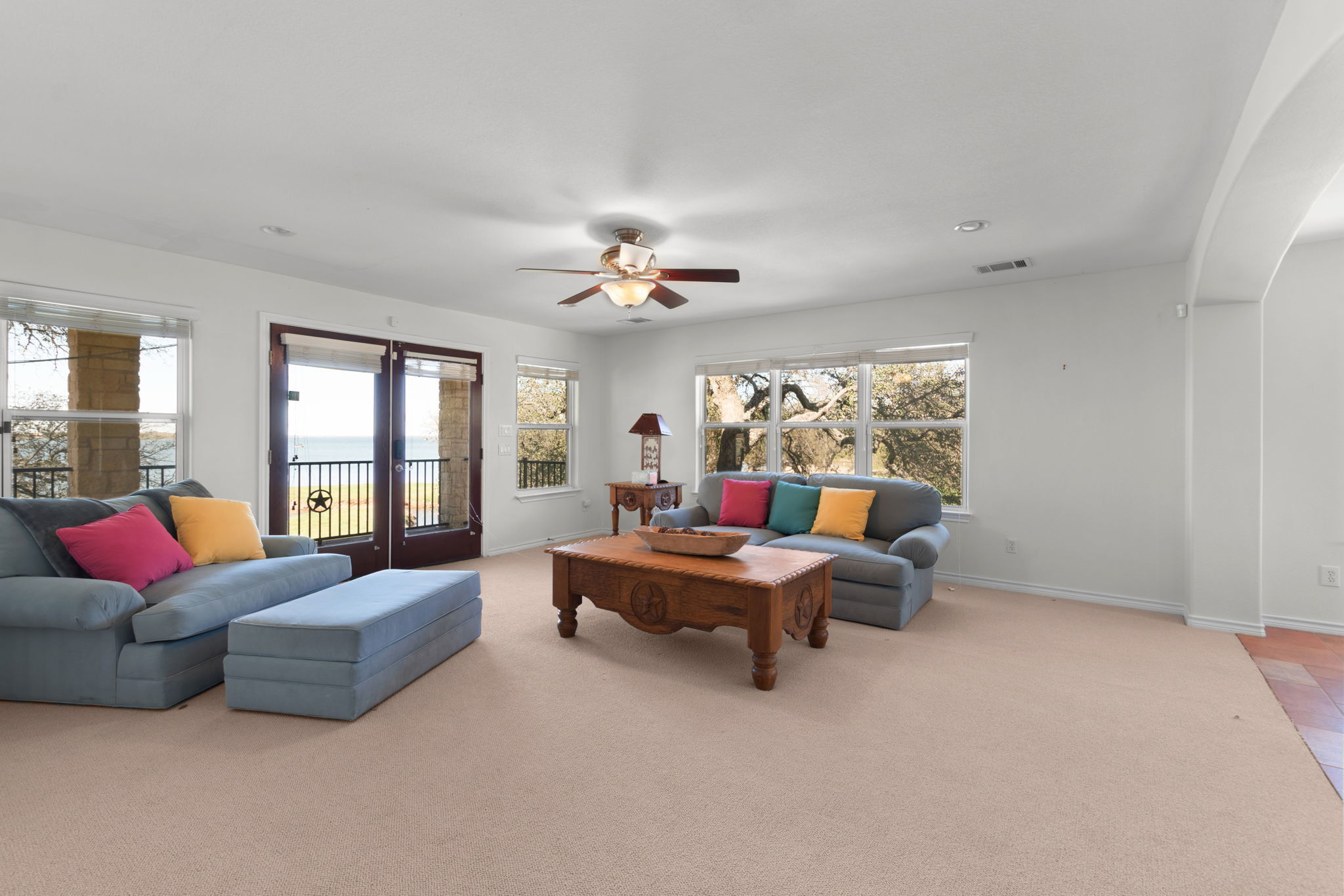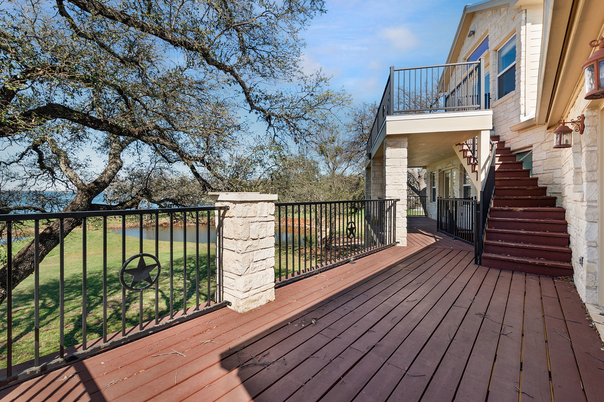 Welcome to one of Lake Buchanan’s most impressive waterfront estates, now offered together with the adjoining lot for a combined 2.9± acres of prime Hill Country lakefront property with almost 300 feet of water frontage. This extraordinary retreat features 7,166 square feet, 7 bedrooms, and 6 bathrooms, designed to accommodate large gatherings while capturing breathtaking lake views & unforgettable sunsets. Nestled among beautiful mature oak trees, the property offers privacy, space, & sweeping panoramic views of Lake Buchanan. With its multi-level design and spacious layout, this home is ideal for large family gatherings, corporate retreats, or a luxury short-term rental opportunity. The main level welcomes you with a dramatic living room featuring vaulted ceilings and a cozy fireplace, along with a spacious living and dining area and expansive primary suite. The kitchen is recently remodeled and equipped with double ovens, Sub-Zero refrigeration, and ample workspace, while an oversized laundry room, powder bath, and large game room complete the first floor. The second level is designed for rest , relaxation and watching the sunset from the second story balcony. A full secondary kitchen and a spacious living room create the perfect gathering space for guests. On the third level, you will find a massive game room and another kitchen open onto a brand new deck overlooking the lake, offering more front-row views of the spectacular Lake Buchanan sunsets. A private boat ramp, multiple garages and extra parking add to all this property has to offer giving owners additional privacy, expansion opportunities, or simply more room to enjoy the natural beauty of the Texas Hill Country. Home may be negotiated to convey fully furnished, creating a truly turnkey lakefront retreat With expansive living spaces, incredible lake views, mature oak trees, and nearly three acres of property, 101 Kelly Emerald Rd is a rare opportunity to own a premier Lake Buchanan estate.