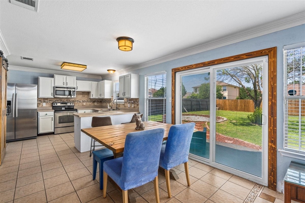 Rare 2 story, 3-bedroom, 2.5-bath, home for lease in HuttoParke featuring a fantastic layout and modern appeal! Recently painted in clean white tones, this home offers an updated feel throughout. Enjoy durable tile and laminate flooring - no carpet here! This well-maintained home includes a comfortable kitchen with a breakfast bar, a bright and open living area, and spacious bedrooms with walk-in closets. A newer HVAC system adds efficiency and comfort year-round. Step outside to a large, fenced backyard with plenty of space for entertaining, relaxing, or play. Ideally located near Toll Road 130, Home Depot, and Walmart Supercenter, with access to community parks, a pool, and walking trails - this HuttoParke home truly has it all!