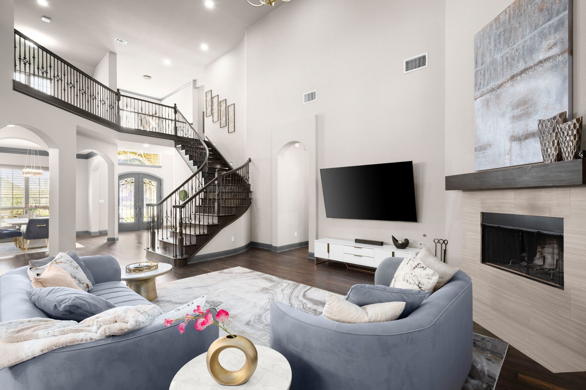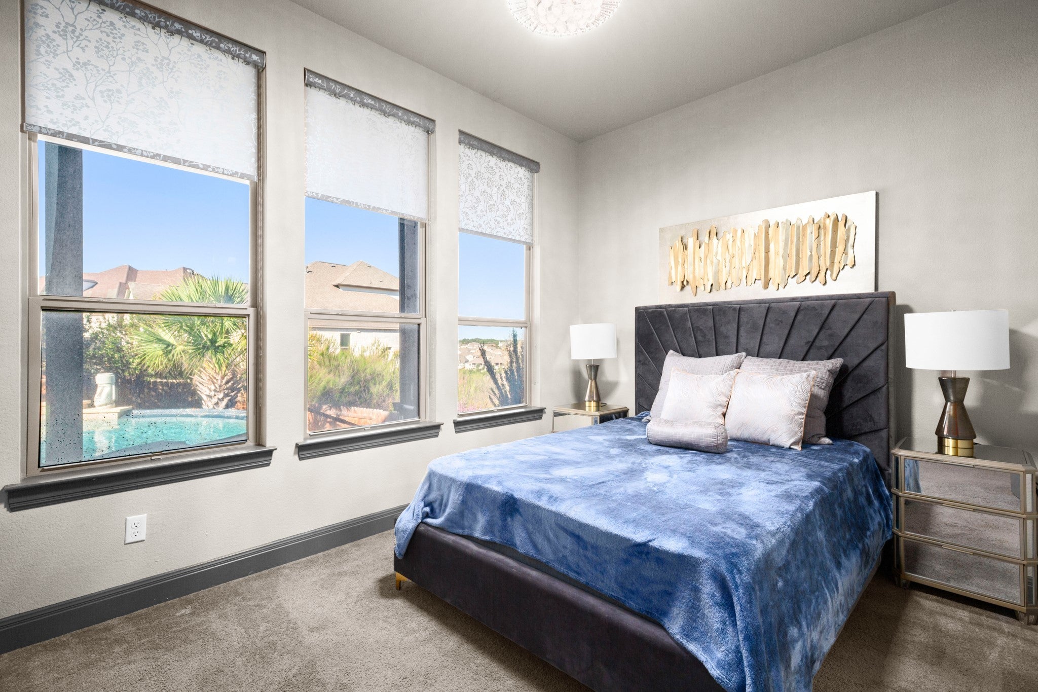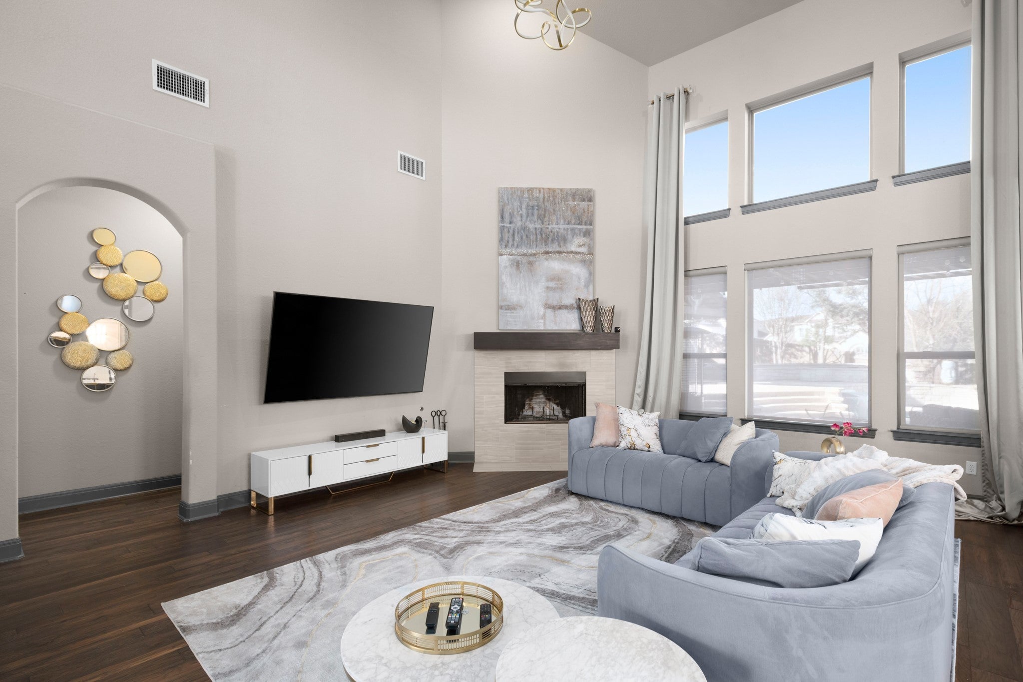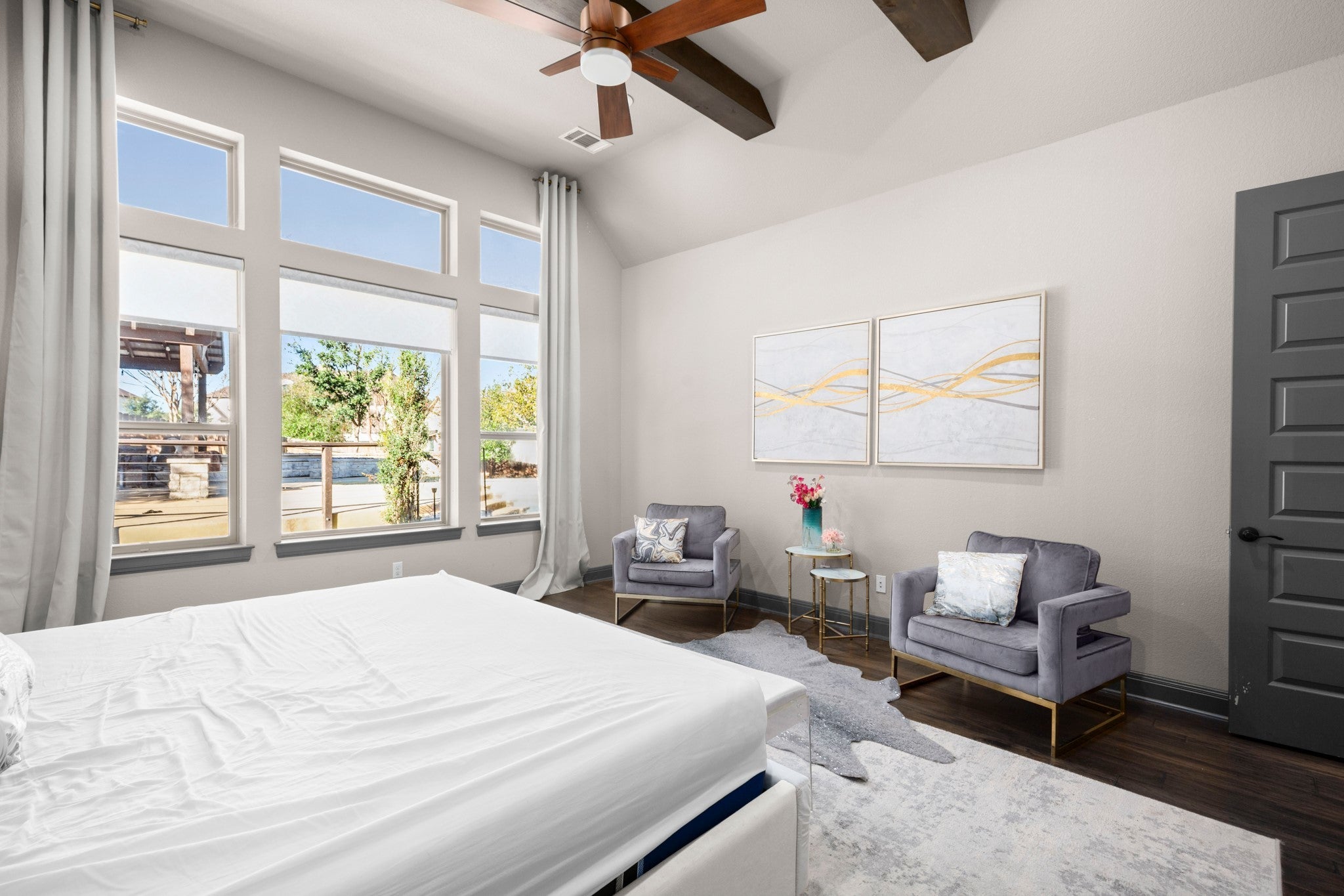 Welcome to 5916 Davenport Divide, set within a gated enclave of Sweetwater—where everyday life feels like a private getaway. Offered furnished, this home blends comfort, style, and scale. From the moment you step inside, you’re greeted by soaring ceilings, a dramatic curved staircase, and a light-filled living space that immediately makes an impression. The heart of the home is a beautifully appointed kitchen with an oversized island, sleek finishes, and statement lighting—perfect for everything from casual mornings to hosting unforgettable evenings. It flows seamlessly into the expansive living area, where a fireplace and walls of windows bring the outdoors in. Downstairs, you’ll find a dedicated office, formal dining space, and a thoughtfully designed layout that includes both the primary suite and an additional guest bedroom—ideal for multi-generational living, long-term guests, or anyone seeking the convenience of main-floor living. Upstairs, a spacious upper-level lounge provides a flexible second living area, complemented by a movie theater—perfect for movie nights, game days, or unwinding in your own private cinema experience. The primary suite is a true retreat, with high ceilings, abundant natural light, and a spa-inspired bathroom complete with a soaking tub, oversized walk-in shower, and generous closet space. Step outside, and it all comes together. The backyard is built for lifestyle—featuring a resort-style pool, multiple outdoor lounge areas, and a covered outdoor living area for relaxing or entertaining. The covered back porch includes an outdoor TV and is perfect for game days or unwinding outdoors. Located in one of West Austin’s most sought-after communities, this home offers a rare opportunity to enjoy luxury, space, and resort-style amenities—without the commitment of ownership. For those who want more than just a place to live… this is a place to experience.