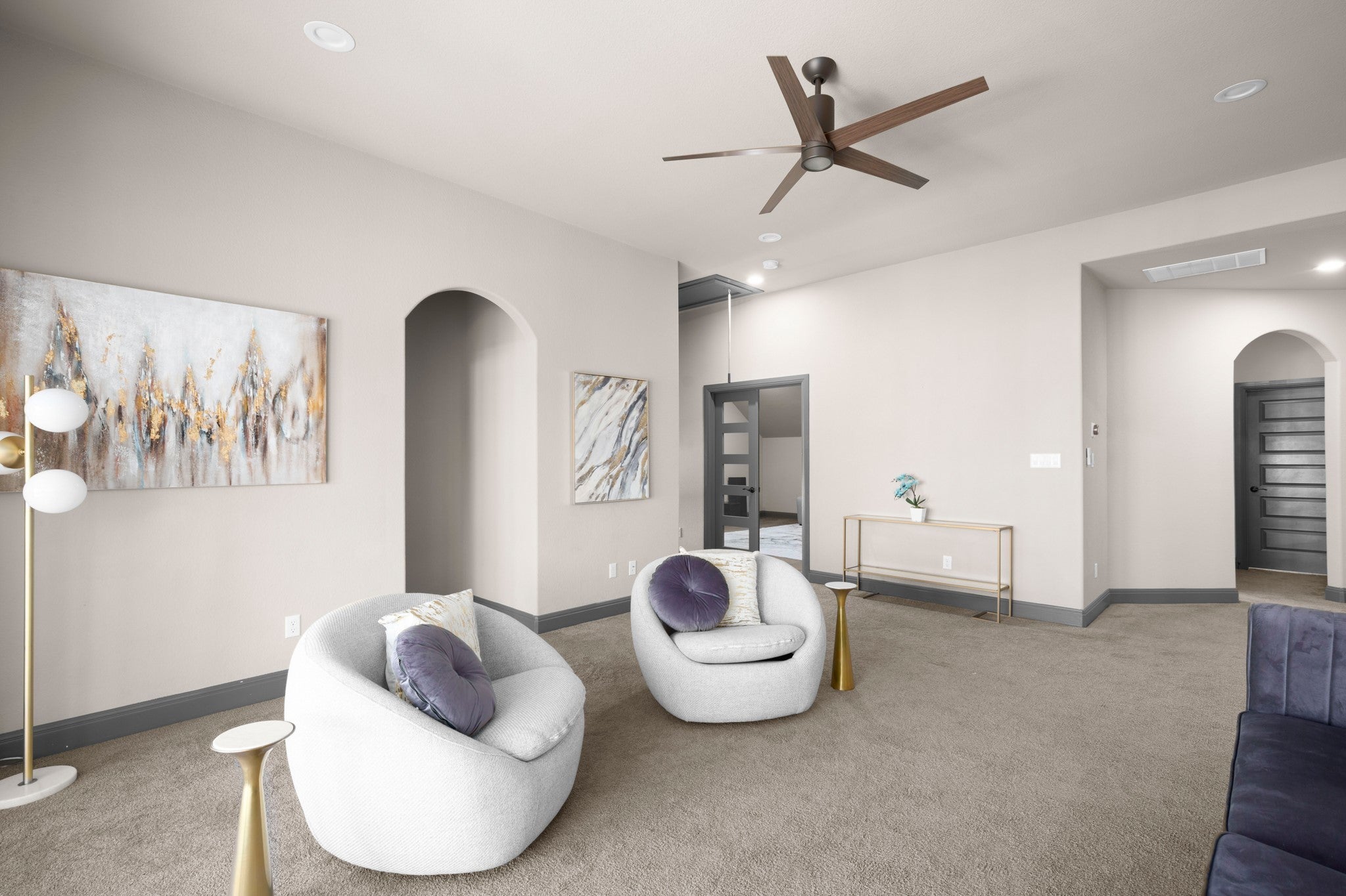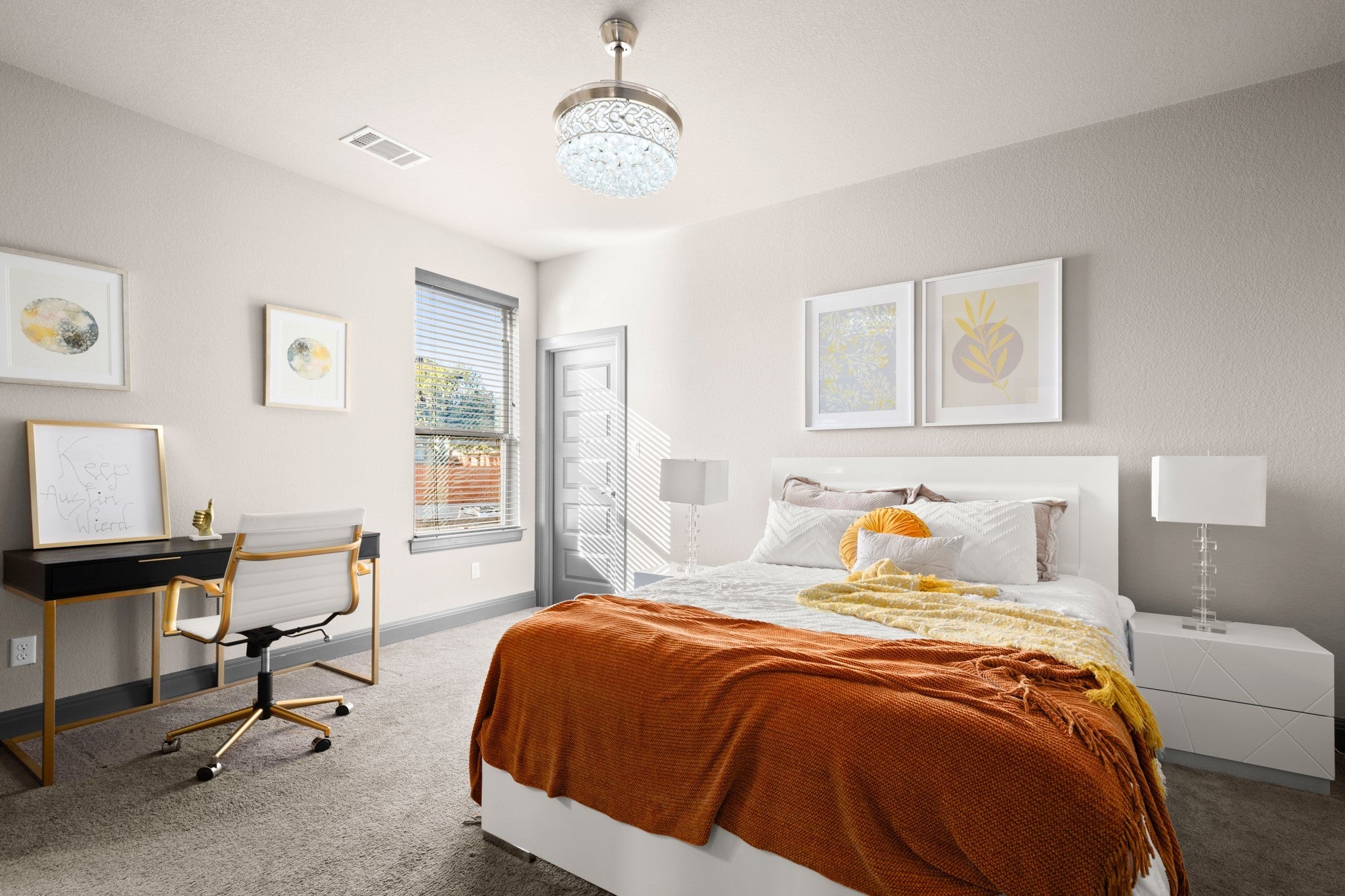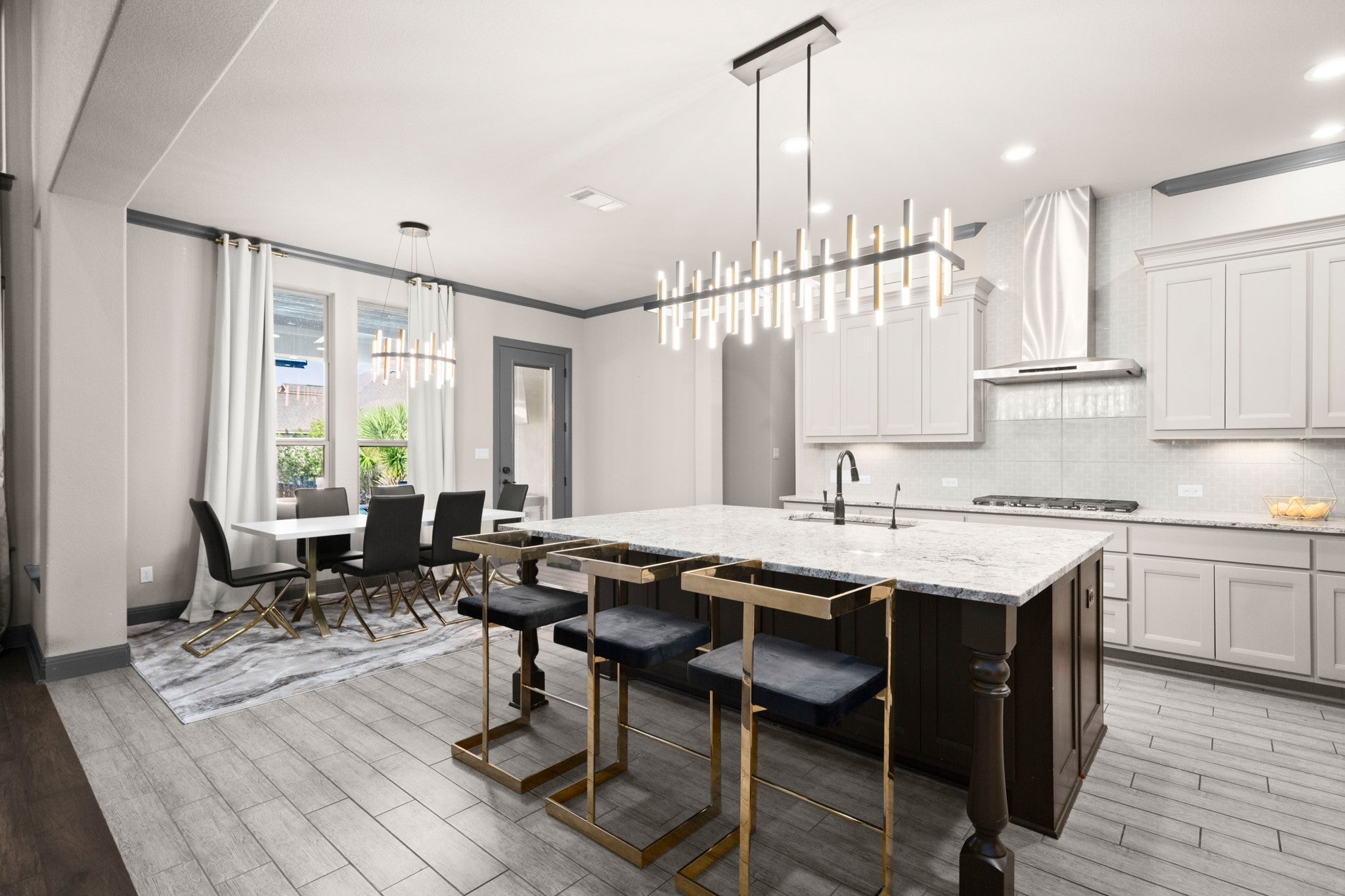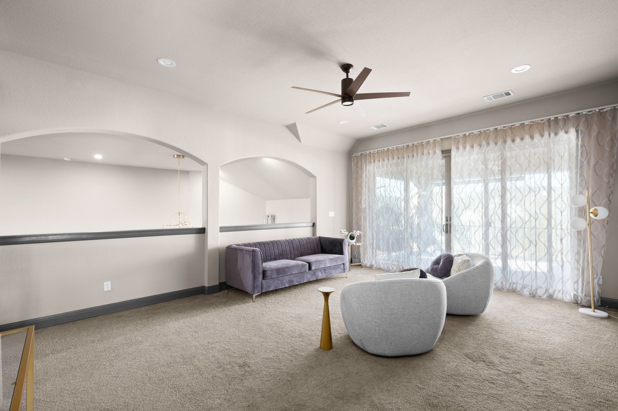 Welcome to 5916 Davenport Divide, set within a gated enclave of Sweetwater—where everyday life feels like a private getaway. Offered furnished, this home blends comfort, style, and scale. From the moment you step inside, you’re greeted by soaring ceilings, a dramatic curved staircase, and a light-filled living space that immediately makes an impression. The heart of the home is a beautifully appointed kitchen with an oversized island, sleek finishes, and statement lighting—perfect for everything from casual mornings to hosting unforgettable evenings. It flows seamlessly into the expansive living area, where a fireplace and walls of windows bring the outdoors in. Downstairs, you’ll find a dedicated office, formal dining space, and a thoughtfully designed layout that includes both the primary suite and an additional guest bedroom—ideal for multi-generational living, long-term guests, or anyone seeking the convenience of main-floor living. Upstairs, a spacious upper-level lounge provides a flexible second living area, complemented by a movie theater—perfect for movie nights, game days, or unwinding in your own private cinema experience. The primary suite is a true retreat, with high ceilings, abundant natural light, and a spa-inspired bathroom complete with a soaking tub, oversized walk-in shower, and generous closet space. Step outside, and it all comes together. The backyard is built for lifestyle—featuring a resort-style pool, multiple outdoor lounge areas, and a covered outdoor living area for relaxing or entertaining. The covered back porch includes an outdoor TV and is perfect for game days or unwinding outdoors. Located in one of West Austin’s most sought-after communities, this home offers a rare opportunity to enjoy luxury, space, and resort-style amenities—without the commitment of ownership. For those who want more than just a place to live… this is a place to experience.