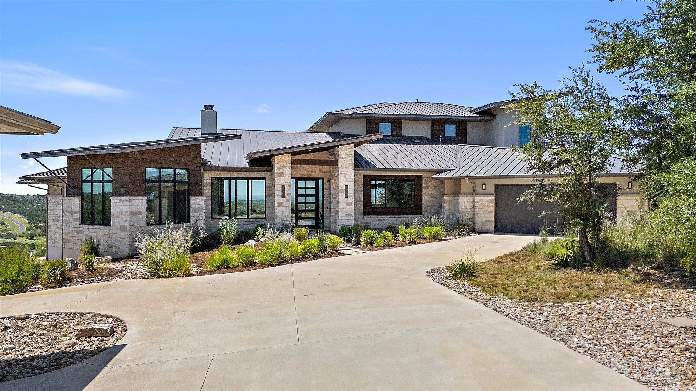 Discover the pinnacle of modern Hill Country living at 416 Julieanne Cove- a privately gated estate nestled on 28+ acres of pristine landscape in the coveted West Austin/Dripping Springs area. Designed and built by renowned John Siemering Custom Homes in 2018, this one-of-a-kind retreat offers breathtaking panoramic views, unrivaled privacy, and exceptional craftsmanship throughout. Set at the end of a long private driveway, this striking residence is sited to maximize its dramatic vantage point over the rolling hills. Inside, interiors curated by Jennifer Garner Interiors blend bold sophistication with natural elegance, balancing comfort, functionality, and luxury. An expansive open-concept layout offers effortless flow between living, dining, and entertaining spaces, all framed by soaring wood-beamed ceilings and walls of glass that bring the outdoors in. The chef’s kitchen is a true showpiece, featuring Thermador appliances, custom black cabinetry with brass hardware, and a dramatic granite island- all accented by a clean, modern palette. The main-level primary suite is a serene escape with sweeping views, while additional bedrooms, a dedicated office (or optional fifth bedroom), and an upstairs game room with full bath provide ample space for family and guests. Every detail of this home was designed with efficiency and comfort in mind- foam insulation, zoned HVAC, tankless water heaters, whole-house R/O, AV wiring, and automatic window shades. Step outside and embrace a world of endless possibilities- savor the art of outdoor cooking in the summer kitchen, unwind beneath the covered terrace with family and friends, or let the night sky captivate you as you stargaze from the balcony. With two combined lots spanning 28+ acres, there's room to add a guest house, pool, barn, sport court, or equestrian facilities. A rare opportunity to own a modern luxury estate with uncompromising views, room to grow, and the kind of privacy that can’t be replicated.