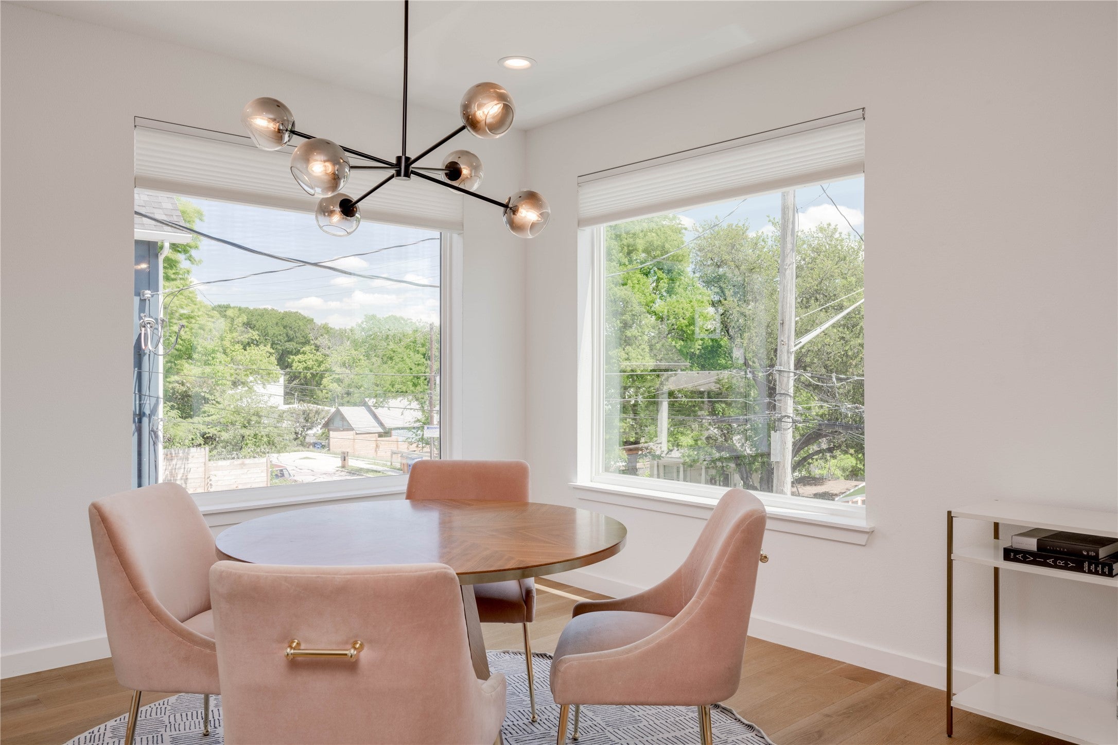 Welcome to 1208 Luna St.—a stunning home where contemporary design meets a serene, treehouse-inspired vibe. Ideally located near Austin’s top dining and entertainment, this residence blends comfort, style, and urban convenience. Step inside to warm white oak floors that flow seamlessly throughout the home. Modern ceiling fans and recessed lighting create a bright, airy atmosphere, while the gourmet kitchen steals the show with an oversized waterfall-edge island and premium appliances, including a refrigerator, washer, and dryer. Gas cooking adds both efficiency and culinary ease. Spa-like bathrooms feature elegant glass tile surrounds and frameless shower doors, offering a touch of luxury in your daily routine. The spacious bonus room provides endless possibilities—use it as a family retreat, entertainment area, or home office. An attached 1-car garage adds secure parking and valuable storage.