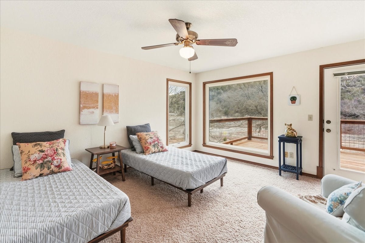 Rare opportunity to own your place on the Blanco River in Wimberley, TX. Whether you’re looking for a weekend home or a full-time residence, you will appreciate the setting and the views on this beautiful property. This home is on a rare part of the river where there is no home directly across from it, as there is a working farm/ranch and not a neighborhood. Enjoy life by the river from the two porches, or sit in the shade of the massive trees in the yard. New Andersen windows were added in 2021, as well as a new roof. The home is move-in ready, and the downstairs was remodeled after the 2015 flood. You will enjoy the instant hot water at the kitchen sink and water-saving on-demand hot water throughout the house. The current owners built the oversized garage, with plenty of space for storage or even an old-fashioned barn dance! This wonderful property is a short drive to the Wimberley Square and all the things that make life in the Valley unique and special.
