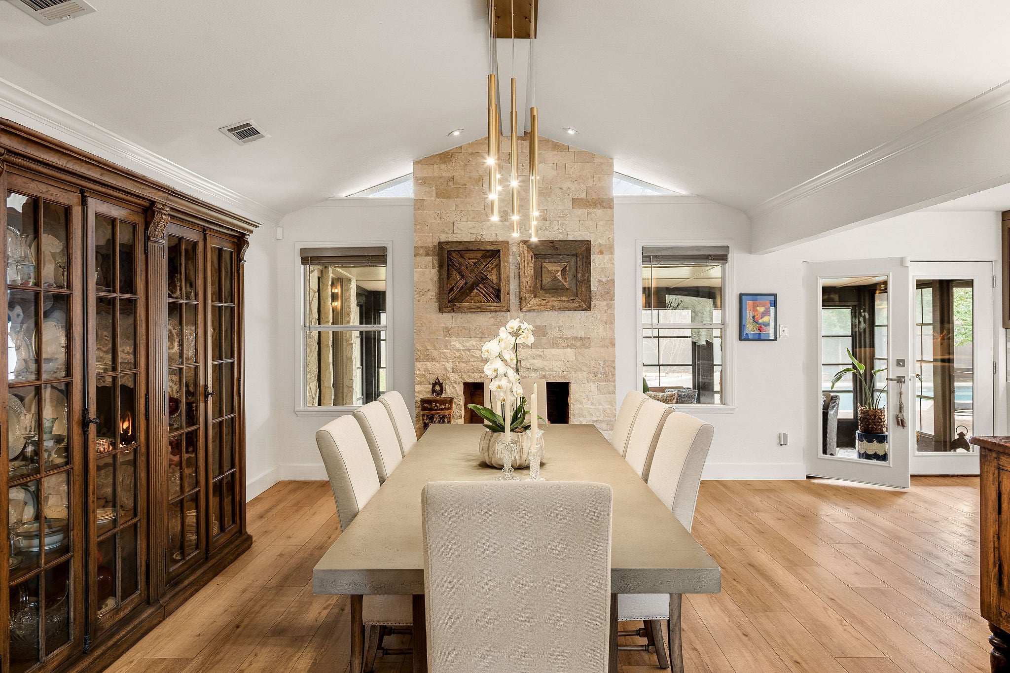 Quietly tucked away on a cul-de-sac in the heart of 78704,this beautifully remodeled single-story home offers exceptional indoor–outdoor living, timeless materials, and a layout designed for both comfort and entertaining. Inside, wide-plank wood floors & an open floor plan connect multiple living & dining spaces.The main living area features a striking fireplace & opens seamlessly to a backyard dining area, covered by a lovely pergola, creating a natural extension of the home for everyday living and gatherings.The gourmet kitchen anchors the home with custom cabinetry, Dekton countertops & premium stainless appliances.The kitchen opens to the large dining room, complete with a fireplace, perfect for hosting friends & family. Off the kitchen is the oversized laundry room with cabinetry, counters, & utility sink. This area can double as a prep kitchen & extra storage. The primary suite is spacious, with an ensuite bath & walk-in closet & opens to the screen porch.Two additional bedrooms are well-proportioned with natural light & complemented by an updated guest bathroom.This property has 2 opportunities for a home office/studio. There is a dedicated home office with a built-in desk & cabinetry inside the home, and an additional space accessed by a private entrance off the backyard that is perfect for an office, workshop or creative space, complete with central HVAC. Outside is a true backyard retreat: an in-ground pool, expansive stone patio, pergola-covered dining area, fire pit seating, & a screened-in porch-ideal for year round enjoyment.The carport offers covered parking & could easily be converted to a 2 car garage. Just 11 miles to ABIA. Walking distance to the Gus Fruh Greenbelt entrance & award winning Barton Hills Elementary & minutes from Zilker Park, Barton Springs,South Lamar & all that central Austin has to offer.2505 Side Cove combines architectural character, modern comfort & an unbeatable 78704 location.Please see MLS for full list of improvements.