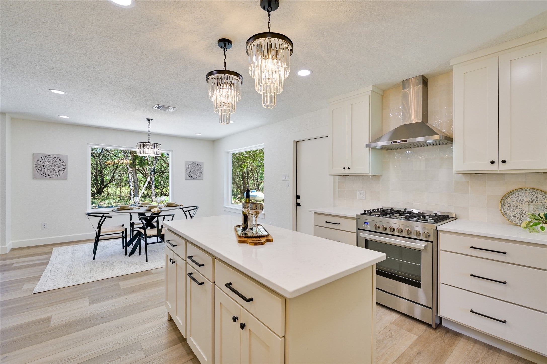 STR's allowed. 2 beautifully remodeled homes consist of a 3/2 home w/attached 2-car garage an a 2/2 guest house on a serene 5 ac backing to a ranch. The homes features a standing seam metal roof and fresh interior and exterior paint for a move-in-ready experience. Step through the double front doors into a welcoming foyer and take in the open floor plan, highlighted by new floors an a cozy wood-burning fireplace. Lg windows in the living and dining areas fill the space with natural light and offer peaceful views of the surrounding landscape. The kitchen is a chef’s delight, complete with stainless steel appliances, a center island, stone countertops, abundant cabinetry and pretty pendants that add that sparkle. A convenient laundry area and pantry is located just off the kitchen. The spacious primary bedroom includes room for a seating area, while the ensuite bath features a double vanity, stone counters, and an oversized walk-in shower. Two additional bedrooms are equipped with ceiling fans and share a stylish secondary bath with a large shower. Off the back of the home is a cut limestone paver patio great for morning coffee or backyard barbeques. The Guest House was renovated and taken down to the studs and thoughtfully rebuilt, blending modern convenience with rustic charm. Step onto the inviting covered front porch and into a warm, open-concept interior. New floors flow throughout, and the living room is anchored by a cozy fireplace flanked by custom built-ins. The split-bedroom layout offers privacy, while a dedicated office provides a perfect space to work from home. The kitchen is outfitted with stone countertops, stainless steel appliances (including refrigerator), and a large pantry/laundry combo for added functionality. Enjoy the peaceful surroundings from your private back deck. A move-in ready retreat/family compound with charm, style, and room to roam! Homes sit on 2 separate lots giving you the flexibility to be able to sell if you ever chose too.