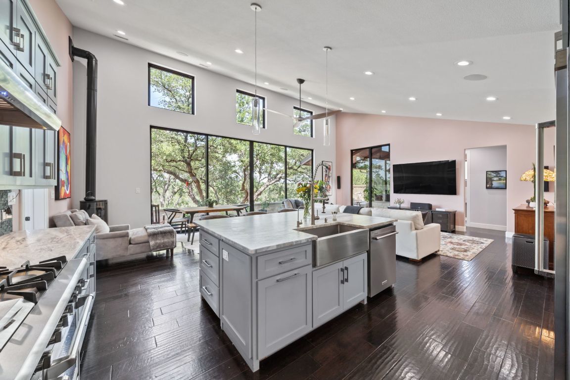 Charming Riverfront Retreat. Discover your own slice of paradise on the picturesque Pedernales River, just 30 miles West of Austin. This comfortable, contemporary home offers a perfect blend of modern living and natural beauty, making it an ideal oasis for nature lovers and those seeking tranquility. As you step into this inviting residence, you will be greeted by an open and airy layout that seamlessly connects indoor and outdoor spaces. The contemporary design features large windows that illuminate the interior, allowing you to soak in the stunning views of the lush surroundings. The property features a delightful multilevel geography adorned with massive rock formations and hidden caves, creating a striking contrast against the natural landscape. These caves add an adventurous touch to the property, inviting exploration and imagination. Thoughtfully designed stairs lead graciously down to the river, where you will be enveloped by beautiful, aged cypress trees that provide both shade and a breathtaking backdrop, creating an enchanting atmosphere perfect for relaxation and recreation. Outdoors, immerse yourself in the vibrant ecosystem teeming with life. Enjoy the sight and sounds of abundant bird species, including colorful hummingbirds, charming painted buntings and graceful cardinals, amidst the beautiful landscape. Whether you are sipping coffee on the patio or enjoying an evening fire by the river, you will feel surrounded by the serene beauty of nature. This property is not just a home; it is a retreat that invites relaxation and inspiration. Whether you are kayaking on the river, hiking the nearby trails, or simply taking in the sunset, this is a place where memories are made. Do not miss the opportunity to make this contemporary riverside escape your own. Schedule a showing today and experience the tranquility and beauty that await you!