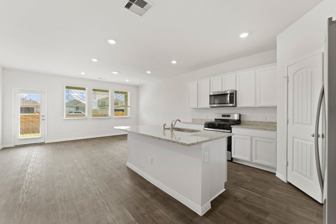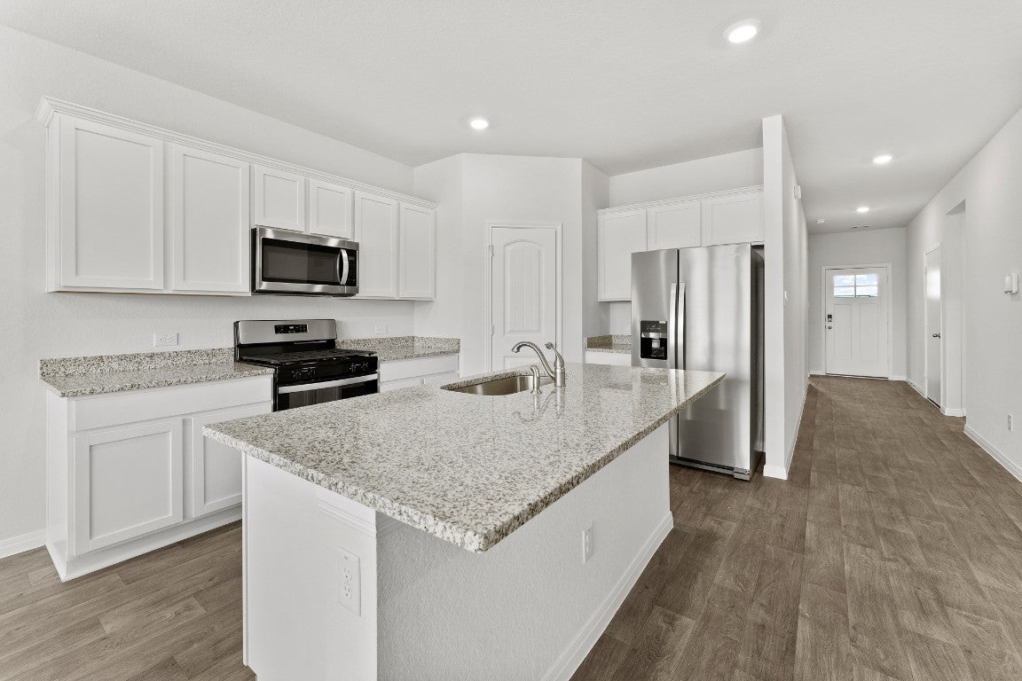 We are pleased to present the Easton II, a thoughtfully designed single-level home offering 4 bedrooms and 2 bathrooms. This floor plan is distinguished by its generously sized secondary bedrooms, providing ample space compared to similar layouts. Upon entering, you will find three bedrooms located at the front of the home, designed for versatility as guest rooms, offices, or family use. The primary suite is situated toward the rear of the residence, ensuring privacy and a quiet retreat. The open-concept dining area and living room create a welcoming central space, ideal for both everyday living and entertaining. Notable features of this home include: A covered back patio, standard with the floor plan, for outdoor relaxation. Granite countertops and 9-foot ceilings, offering a modern and elevated interior feel. Full sprinkler system with sod for easy lawn maintenance. An extended 2.5-bay garage situated on a spacious 50-foot-wide lot, providing additional storage and parking flexibility. Natural gas connections for both cooking and heating, ensuring efficiency and convenience. Rental Qualification Requirement: All applicants must demonstrate a combined monthly gross income equal to at least three times the monthly rent and with credit score of at least 575.
