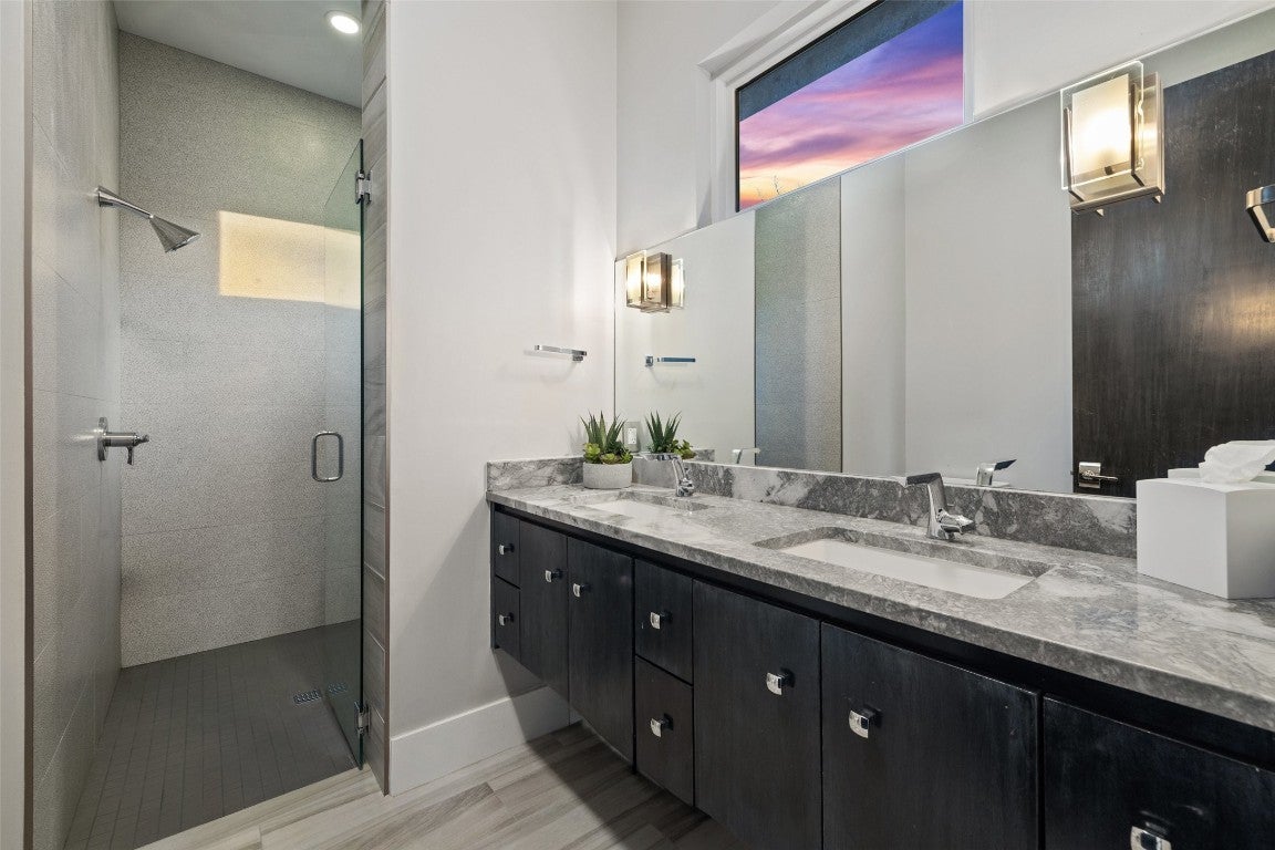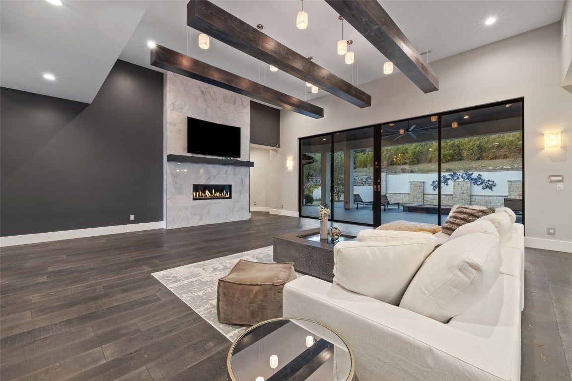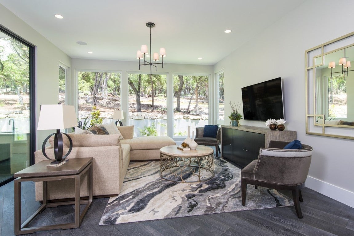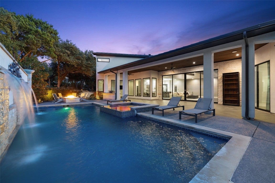 This stylish, contemporary home embodies drama and elegance, perfectly sited on an oversized, heavily treed lot. Seven Custom Homes’ design reflects client feedback, resulting in a clean, two-level floorplan with no wasted space. The home spans 5,124 sq. ft., seamlessly blending practicality, leisure, and modern convenience. The generous primary suite features a matching bath and walk-in closet, offering ultimate privacy and tranquility. Custom touches include a large front porch and 20-ft sliding doors opening to a covered patio with pool, spa, bar, and gas grill—ideal for enjoying the natural beauty and seclusion of The Reserve at Lake Travis. The Reserve is a gated lakeside community on Lake Travis’ coveted south shore within Lake Travis ISD. Boating enthusiasts enjoy unrestricted access to the 64-mile lake, while golfers find championship courses nearby. Shopping is just minutes away at Hill Country Galleria, with casual and upscale dining options close by. Downtown Austin’s vibrant music and nightlife scene is a scenic 45-minute drive. Resort-style amenities include: The Barn—with shuffleboard, billiards, ping pong, outdoor kitchen & BBQ, big screens, and reading porch with fireplaces; The Lodge—for member events, relaxing after boating, or gathering by the fire pit; Swim Park and Cypress Club—with pools, lazy river, waterslides, spa, cabanas, and a swim-up bar; and The Marina—with 160 slips, concierge services, and golf cart access. Seven Custom Homes is a multi award-winning Texas builder known for stunning, unique designs crafted by top architects, builders, and interior designers. Every detail matters, with leading-edge construction methods, impeccable finishes, and sustainable, energy-efficient specs. Whether timeless or contemporary, their end-to-end approach delivers dream homes that balance style, function, and lasting elegance.