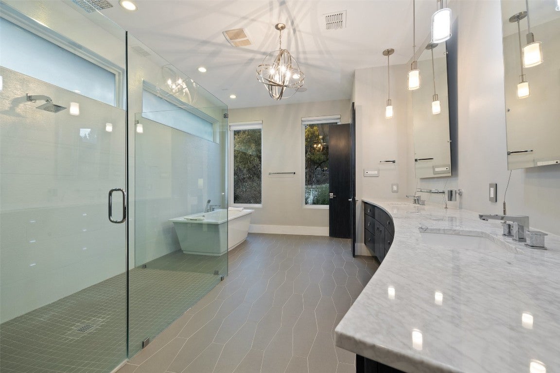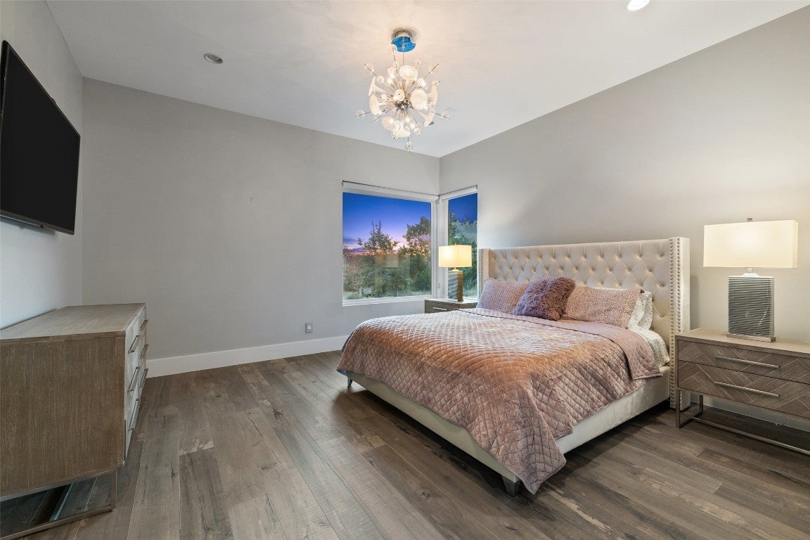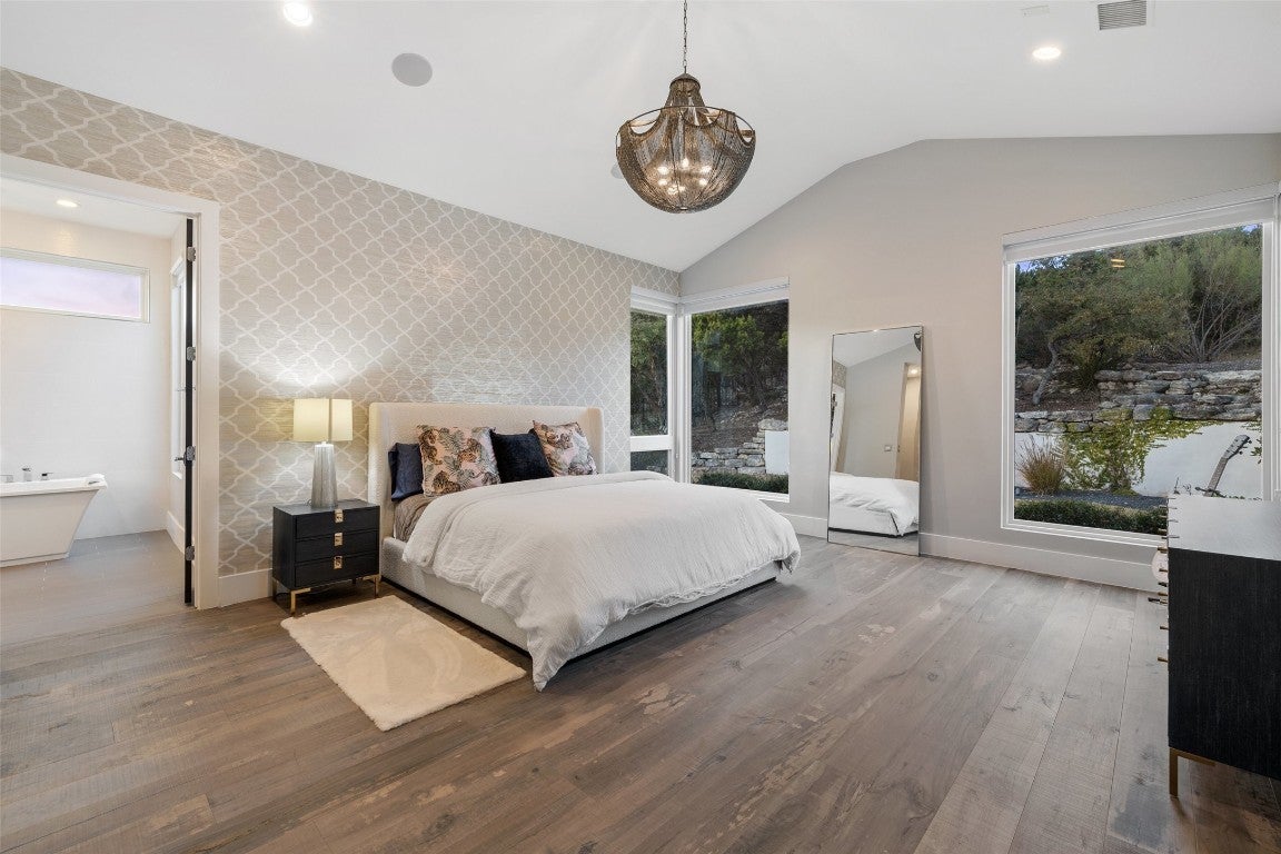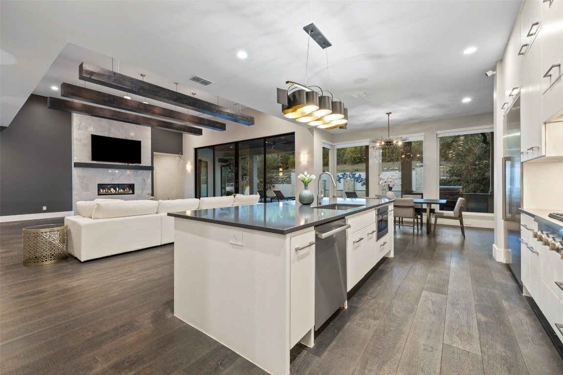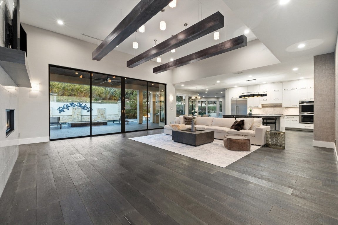 This stylish, contemporary home embodies drama and elegance, perfectly sited on an oversized, heavily treed lot. Seven Custom Homes’ design reflects client feedback, resulting in a clean, two-level floorplan with no wasted space. The home spans 5,124 sq. ft., seamlessly blending practicality, leisure, and modern convenience. The generous primary suite features a matching bath and walk-in closet, offering ultimate privacy and tranquility. Custom touches include a large front porch and 20-ft sliding doors opening to a covered patio with pool, spa, bar, and gas grill—ideal for enjoying the natural beauty and seclusion of The Reserve at Lake Travis. The Reserve is a gated lakeside community on Lake Travis’ coveted south shore within Lake Travis ISD. Boating enthusiasts enjoy unrestricted access to the 64-mile lake, while golfers find championship courses nearby. Shopping is just minutes away at Hill Country Galleria, with casual and upscale dining options close by. Downtown Austin’s vibrant music and nightlife scene is a scenic 45-minute drive. Resort-style amenities include: The Barn—with shuffleboard, billiards, ping pong, outdoor kitchen & BBQ, big screens, and reading porch with fireplaces; The Lodge—for member events, relaxing after boating, or gathering by the fire pit; Swim Park and Cypress Club—with pools, lazy river, waterslides, spa, cabanas, and a swim-up bar; and The Marina—with 160 slips, concierge services, and golf cart access. Seven Custom Homes is a multi award-winning Texas builder known for stunning, unique designs crafted by top architects, builders, and interior designers. Every detail matters, with leading-edge construction methods, impeccable finishes, and sustainable, energy-efficient specs. Whether timeless or contemporary, their end-to-end approach delivers dream homes that balance style, function, and lasting elegance.