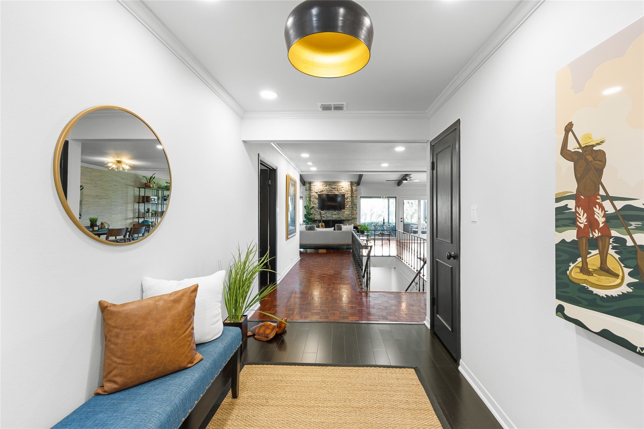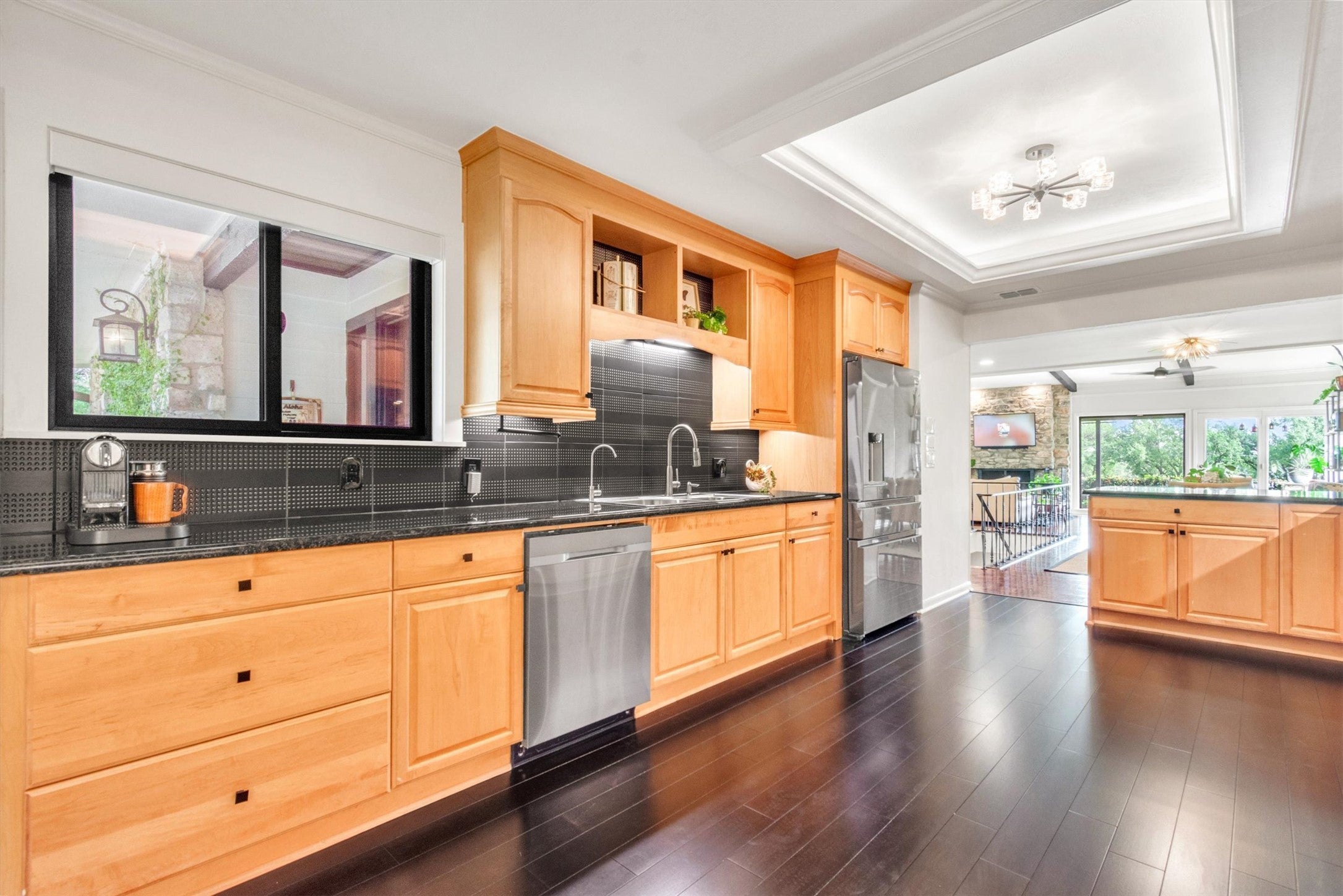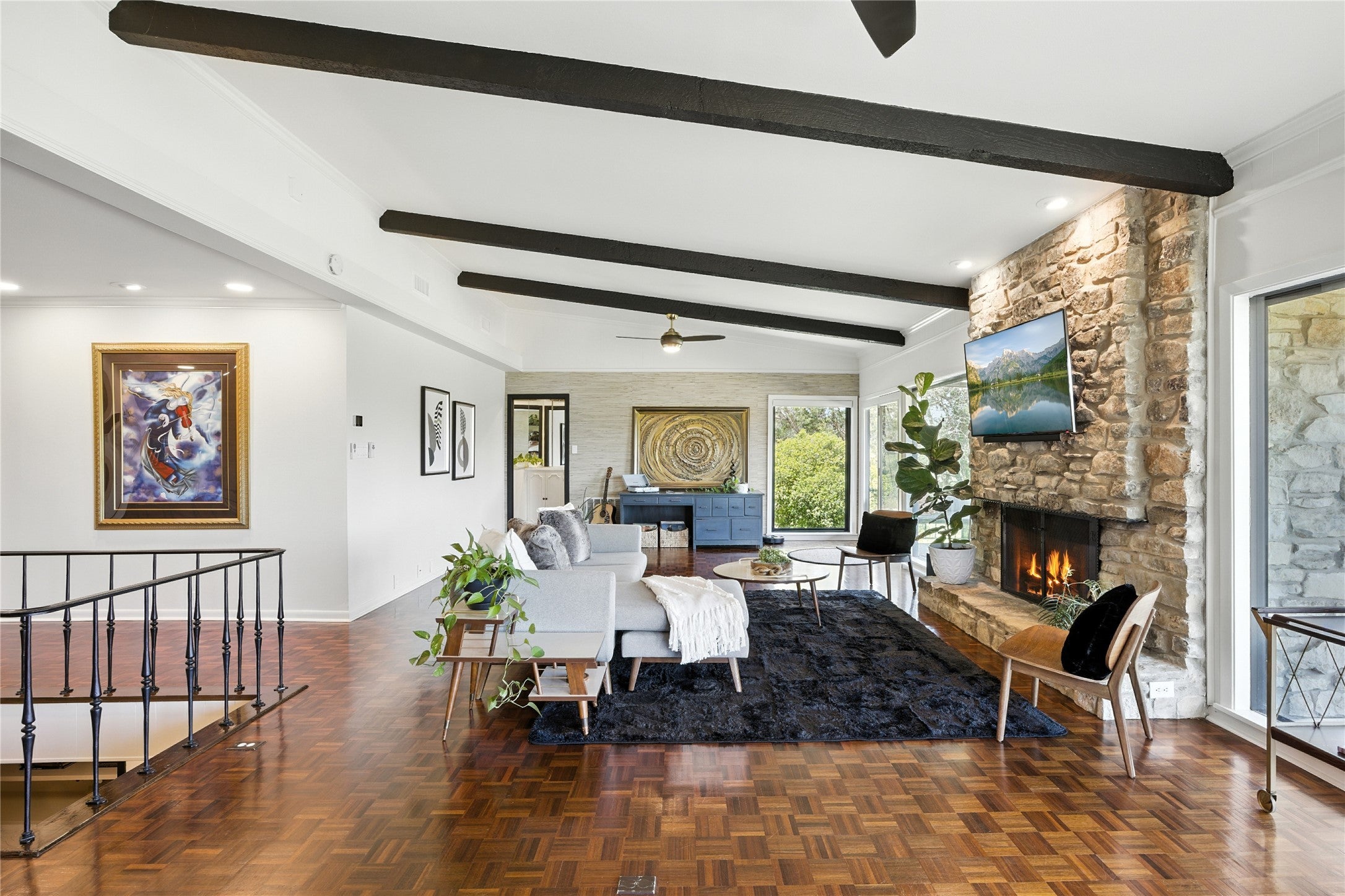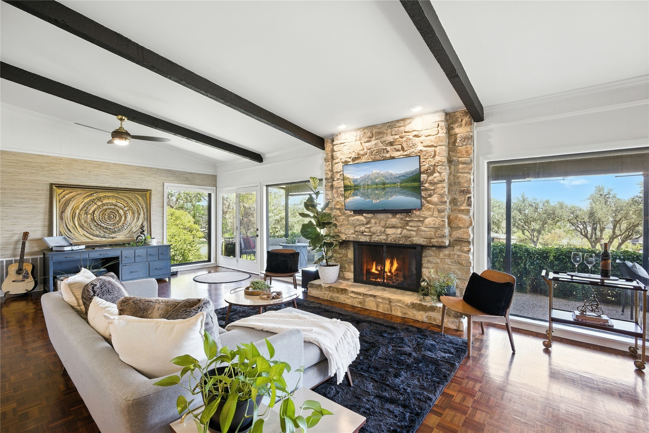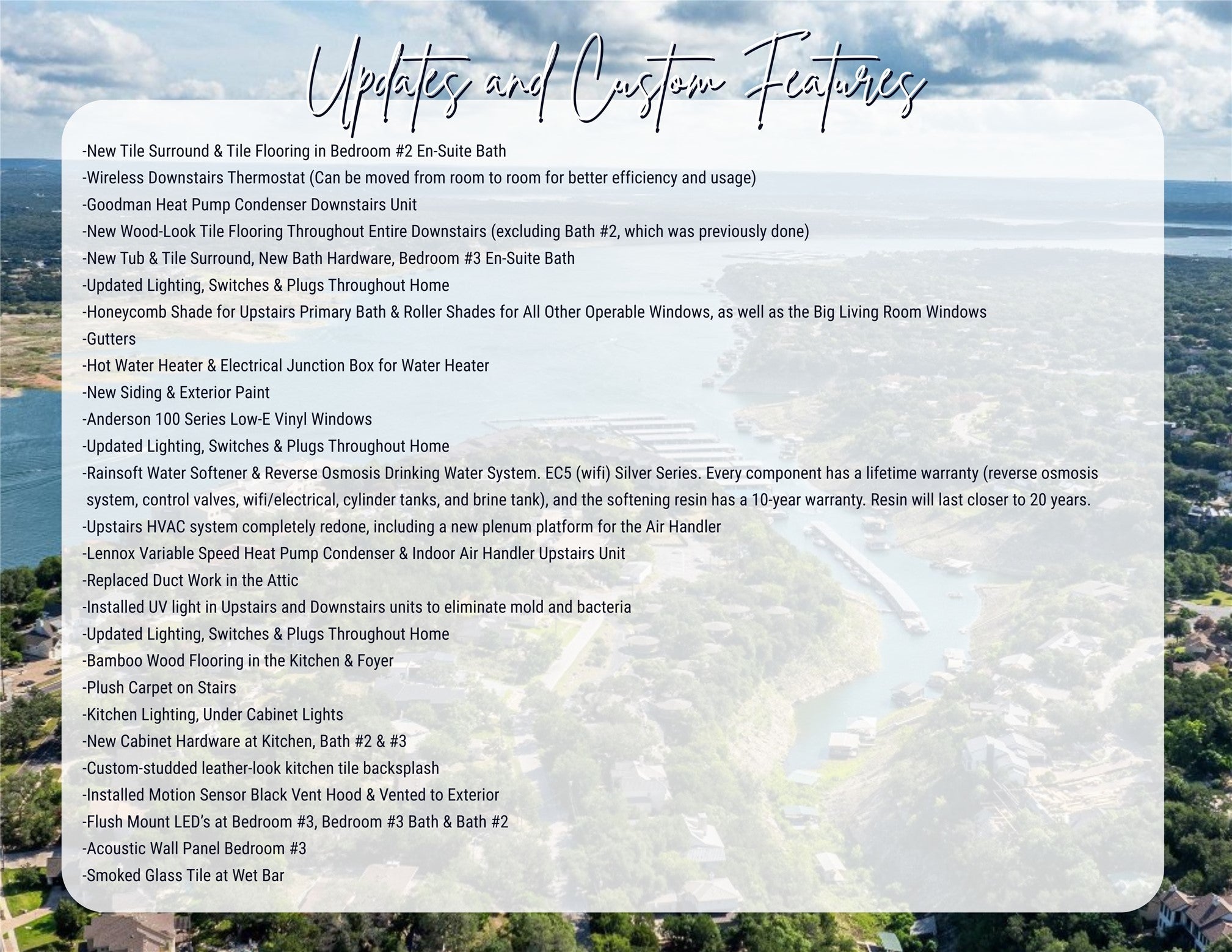 Call for Private Tour with Agent/Owner. Discover this 1977 mid-century modern retreat perched above the 10th hole of Live Oak Golf Course in the heart of Old Lakeway. This architecturally distinct home captures the essence of MCM, blending clean lines, designer upgrades, and effortless indoor-outdoor living. Step inside to find three spacious bedroom suites, each with private en-suite baths—ideal for multigenerational living, guest space, or home offices. The open-concept main level features original wood beams, parquet flooring & 8’ wide wood burning fireplace w/stone surround. Original custom iron work fireplace screen, staircase & exterior railing. New Bamboo flooring at kitchen & entry & new plush carpeting on the stairs. Downstairs you’ll find wood-look porcelain tile flooring. A Chef’s dream kitchen awaits w/sleek leather-look tile backsplash, upgraded hardware, under-cabinet lighting, & a motion-sensor vent hood. RARE walk out basement in Texas! Upgrades include: 2024 Lennox variable-speed HVAC & Heat Pump upstairs unit, NEW ductwork upstairs, air purification (both units) & Goodman condenser downstairs installed 2021. RainSoft soft-water and reverse osmosis system (with lifetime warranty). Renovated bathrooms w/designer fixtures & finishes, Primary shower w/dual rainforest shower heads, handheld sprayer and 3 jets, New exterior siding & fresh paint, Anderson Low-E 100 Series on all operable windows (2021). The tiered layout flows seamlessly to a private backyard overlooking the fairway, perfect for al fresco dining, morning coffee, or starlit evenings. Located in a Dark Sky Community, you’ll enjoy crystal-clear night skies and true Hill Country serenity. Bonus: The Lakeway MUD sewer connection fee has already been paid. Optional membership at The Hills Country Club offers access to world-class golf, tennis, fitness, and social amenities just minutes away. This rare mid-century modern beauty blends location, lifestyle, and architectural character.