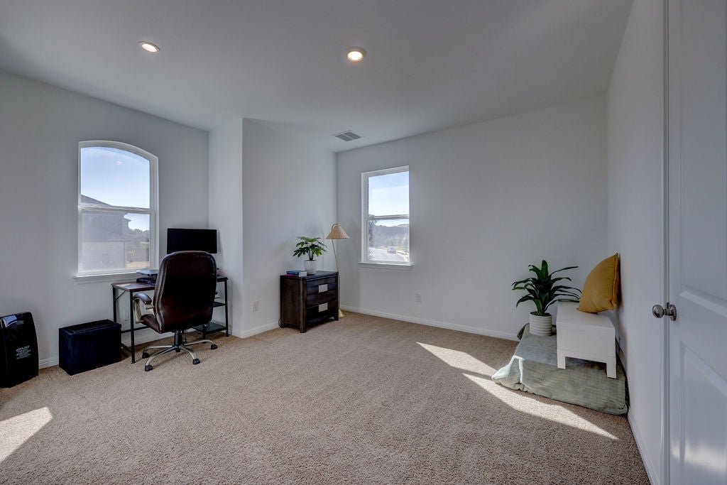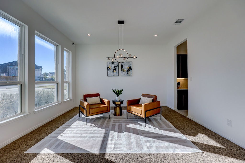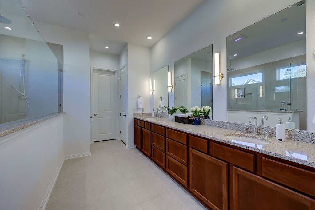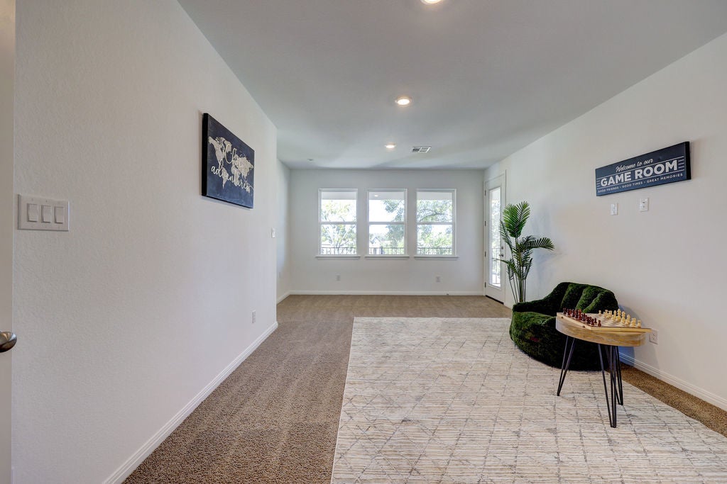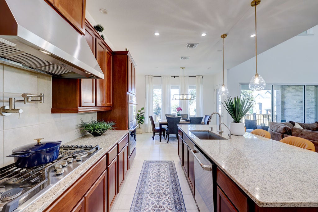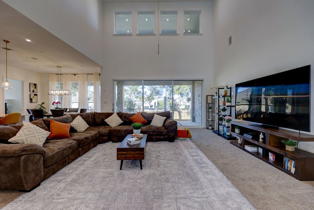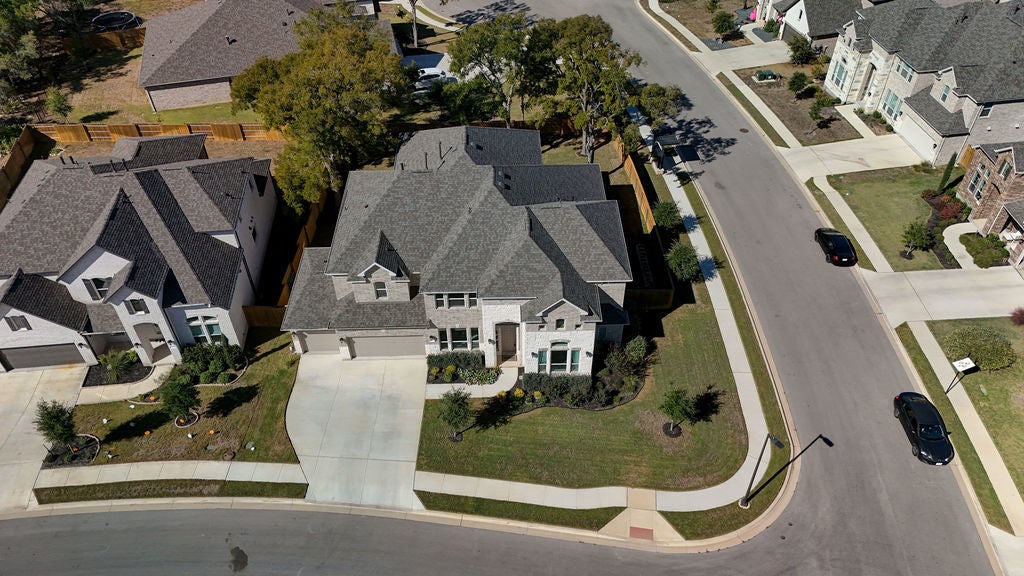 Stunning 6 Creeks Taylor Morrison home on a Premium Corner Lot — Packed with Upgrades. Come see this move-in-ready home in the highly desirable 6 Creeks community. It is located on a corner lot surrounded by mature trees, a great view, and remarkable sunsets. The home showcases over $150,000 in builder upgrades and has a thoughtfully designed, open-concept layout. When you walk into the entry, notice the impressive 20-foot ceilings that give way to a bright, inviting living space filled with natural light. A 15-foot sliding glass door opens to your private backyard retreat, with a covered patio plumbed for a gas grill, and plenty of space to relax or entertain. The lighted backyard is arguably one of the best in the neighborhood. The chef’s kitchen is a chef’s dream, featuring top of the line appliances, a gas cooktop, pot filler, double ovens, and lots of granite countertops. From custom lighting to electrical upgrades, from EV charger to extra outlets, from hot tub prewiring to in-wall speaker prewiring – the list of upgrades goes on and on. The three-car garage features 10-foot ceilings, upgraded overhead doors, and luxury vinyl plank flooring. The garage flooring is durable enough for vehicles yet stylish enough for a studio. One of the garage bays have been converted to a professional home gym with $30K in premium equipment and upgrades. Other premium features include a whole-house water filter and softener with UV, two tankless water heaters. Upstairs, unwind in the pre-wired media room, host friends in the game room, or retreat to spacious bedrooms, find ways to enjoy the upstairs balcony. This home checks all the boxes. As a resident of 6 Creeks, you will enjoy great amenities including pools, clubhouse, pickleball courts, playgrounds, fishing pond, and scenic trails—all just minutes from shopping, dining, and a short drive to Austin. Schedule your appointment today.