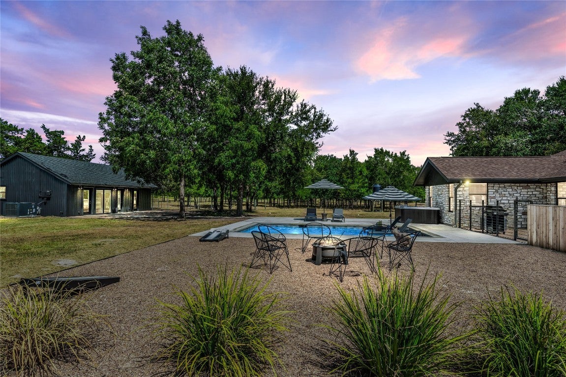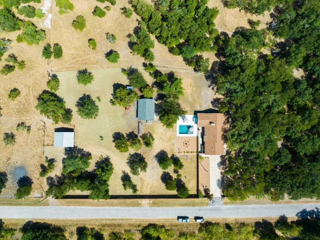 Welcome to your dream home! Nestled on a serene 5-acre park-like estate with hundreds of mature oak and elm trees, this meticulously renovated 6-bedroom, 4-bathroom rock home offers the perfect blend of luxury and tranquility. Located on a quiet, dead-end road just 18 miles from downtown Austin, with easy access to Highway 130 and the Manor toll road, this property provides a seamless commute to Tesla and Samsung plants. Step inside the main home, which underwent a complete renovation in 2023, boasting high-end finishes and meticulous attention to detail. The open floor plan features a spacious primary bedroom with a double vanity and walk-in closet, a formal dining room, and a breakfast nook with bay windows. The kitchen is a chef's delight, offering plenty of counter space and cabinets. The living area is adorned with a wood-burning rock fireplace and built-in bookcase. A newly constructed guest house awaits with 2 bedrooms and 2 full baths, complemented by a covered front porch and open back porch. Outdoor living is elevated with a heated pool and hot tub, perfect for relaxation and entertainment. Enjoy scenic views in every direction from this picturesque property. Don't miss the opportunity to make this stunning retreat your home, where luxury meets nature in perfect harmony. Schedule your showing today!