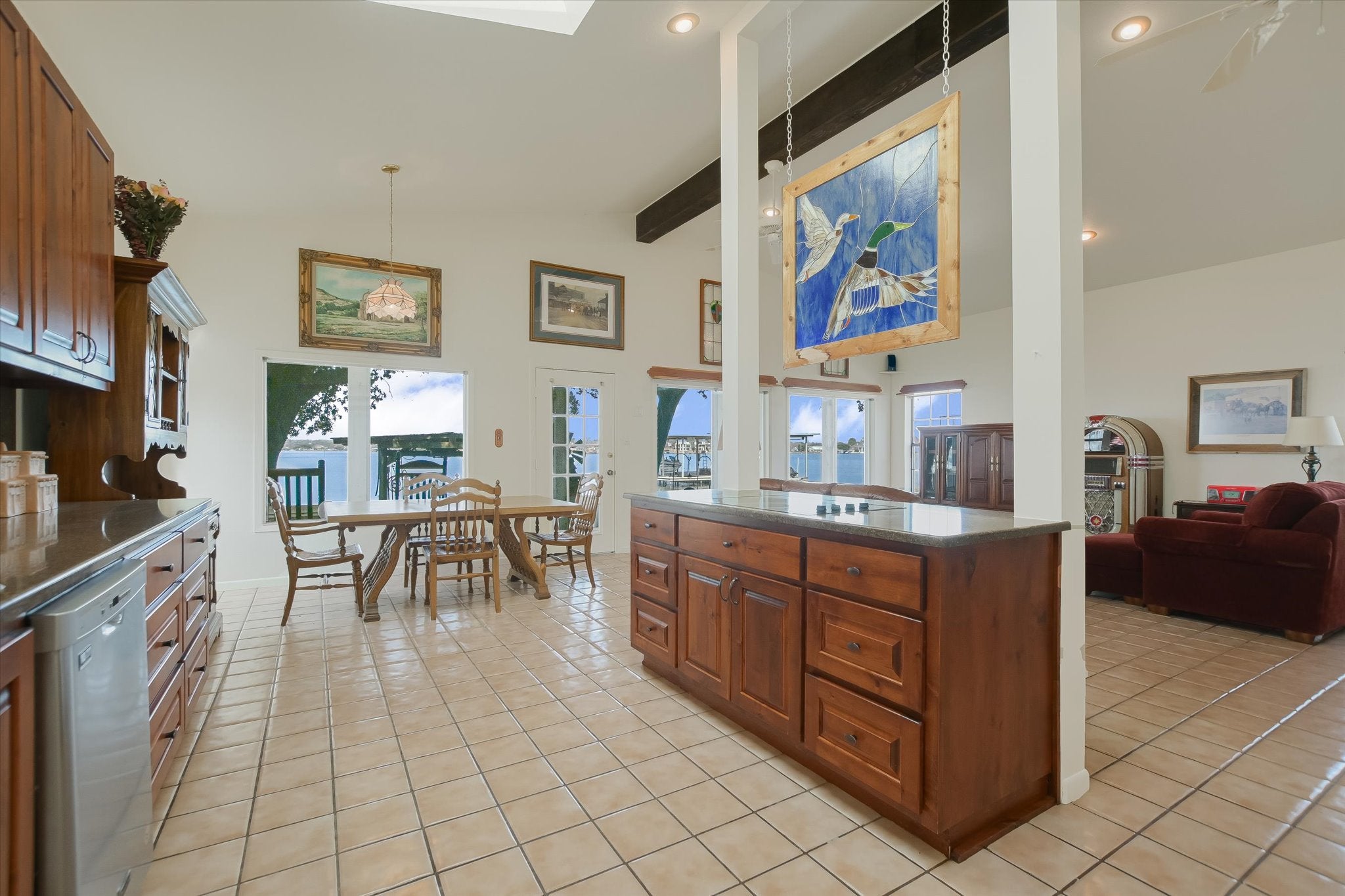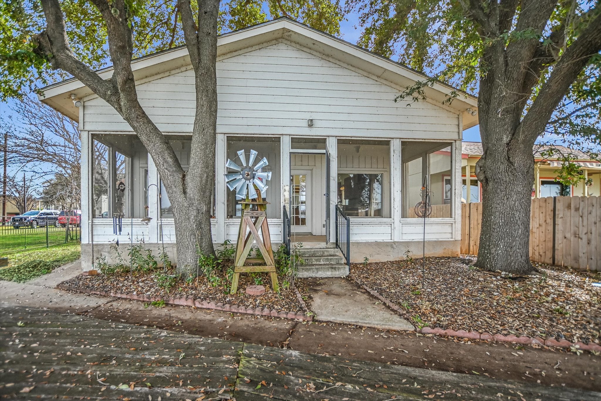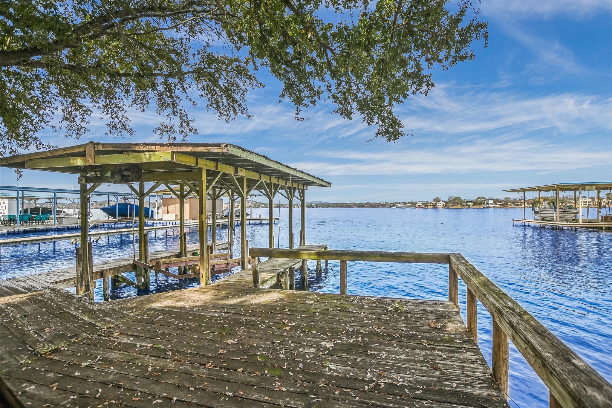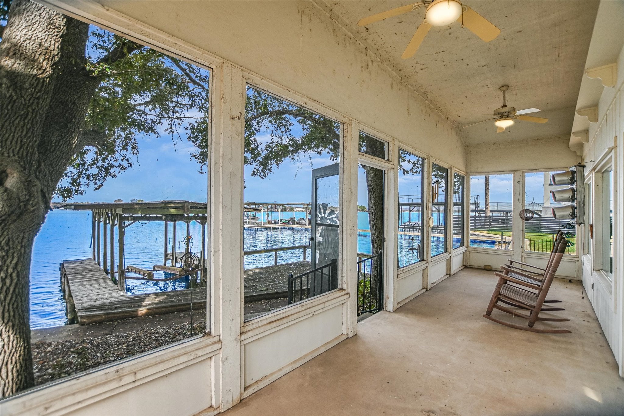 Welcome to the ultimate Lake LBJ retreat, perfectly positioned on 50+ feet of prime open water frontage in one of the most desirable stretches of the lake. This classic 3-bedroom, 3-bathroom single-story home was built in 1970 and has been partially updated. Inside, the main living area features soaring ceilings, abundant natural light, and unobstructed views of Lake LBJ. Large windows frame the water, creating a bright and inviting space ideal for relaxing or entertaining. Built-ins add character and functionality, while the absence of carpet throughout the home ensures easy lake living. The spacious kitchen offers generous storage, a large walk-in pantry, and plenty of room to gather. The primary suite captures beautiful lake views and includes a large walk-in closet and private en-suite bath. Two guest bedrooms are both well-sized with closets and shutters, complemented by a full hallway bath. An additional full bathroom is conveniently located near the garage and washer/dryer hookups - perfect after a long day on the water. Step outside to the screened-in porch that truly feels like you’re sitting right on top of the lake — the perfect spot for morning coffee or sunset evenings. With 50+ feet of open water frontage, this property delivers the wide views and breezes that make Lake LBJ so special. Parking is plentiful with a 2-car attached garage, a 2-car carport, and additional space accommodating up to five vehicles. Short-term rentals are allowed. This is everything you want your Lake LBJ home to be!