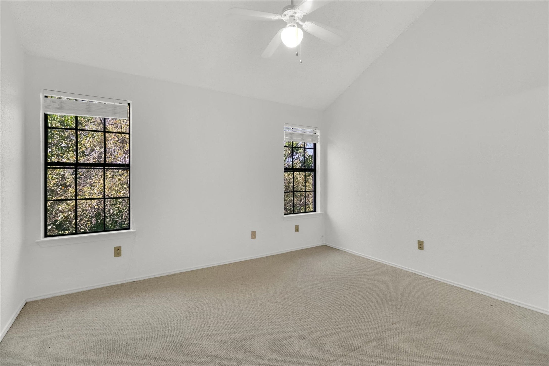 Spacious townhouse with residential feel in pocket neighborhood backs to Bright Leaf Preserve. New interior paint March 2025. Ipe deck, storage, in back provides tranquil views of Preserve. Kitchen/baths remodeled by prior owner with tasteful design choices. Thoughtful layout with common areas downstairs and two master suites with en-suite baths upstairs. Open floor plan, vaulted ceilings, gas fireplace. Easy access to MoPac, shopping. UT Shuttle. Refrigerator/washer/dryer included.
