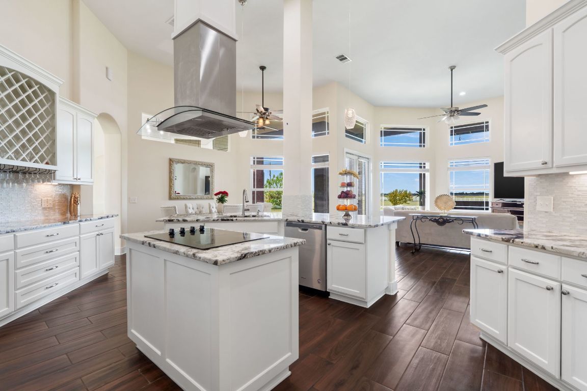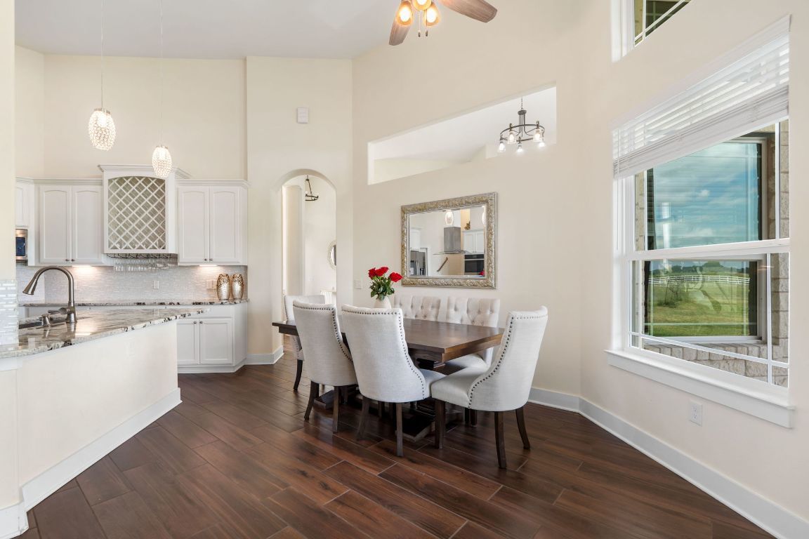 This must-see gem is a beautifully designed two-story residence offering 4,359 sq ft, 6 bedrooms, 5 bathrooms, and a 3-car garage, located just 10.6 miles northeast of the upcoming $17 billion Samsung Semiconductor Plant in Taylor, TX. Perfectly positioned on 10.01 fully fenced acres, this property blends peaceful country living with upscale comfort and modern amenities. The gated entry, adorned with elegant iron fencing and a stately gate, welcomes you and your guests into a space ideal for both private living and entertaining. The main home is filled with natural light thanks to large windows throughout, and features wood-look tile flooring, plush carpeted bedrooms, tall ceilings, and ceiling fans with modern fixtures throughout. At the heart of the home is a chef’s dream kitchen, showcasing white Alaskan granite countertops, a large island, dual ovens, electric cooktop, and abundant cabinet space. The spacious primary suite offers a comfortable seating area and a spa-inspired bathroom with a marble-tiled walk-in shower, standalone jacuzzi tub, and dual vanities. The laundry room provides ample storage, counter space, and a convenient utility sink. Outside, the property truly shines. A brand-new carport/storage facility offers flexible space for guest vehicles, luxury cars, equipment, or recreational toys. Horse lovers will appreciate the 4-stall horse stable, fully fenced and ready to use. For hosting special occasions, the expansive event building includes interior kitchen access and two exterior bathrooms—perfect for weddings, holiday gatherings, or large-scale entertaining. Additional features include co-op water, RV access, and close proximity to shopping and amenities—just 4.6 miles from H-E-B. Whether you're looking for a private retreat, a family compound, or a venue-ready estate, this property delivers flexibility, space, and unbeatable potential in a rapidly growing area.