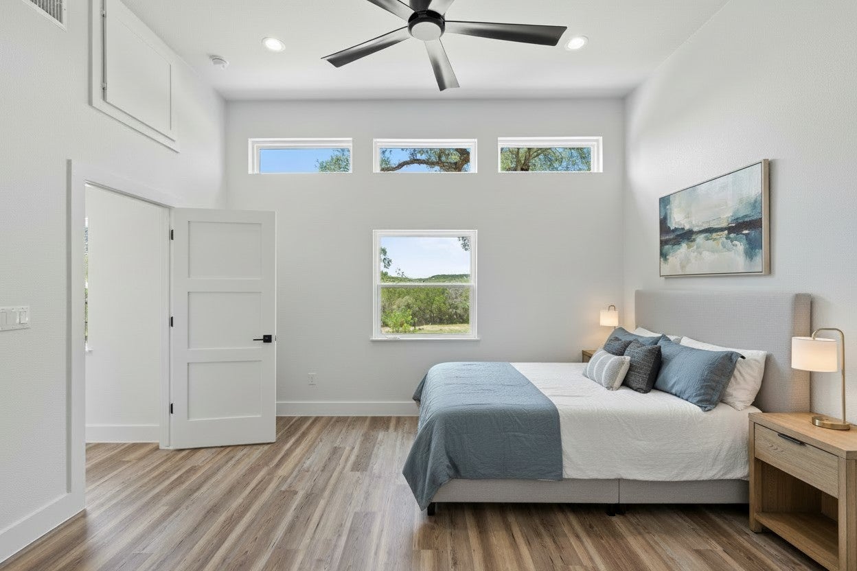 Privately gated and fully fenced, this exceptional Hill Country estate presents a rare opportunity to own a three-residence compound in the heart of Spicewood. Situated on 2.5 serene acres, the property offers panoramic Hill Country views, complete privacy, and remarkable flexibility, making it ideal for a family compound, multigenerational living, live-work estate, equestrian retreat, or strategic investment. Designed for privacy, the property features three distinct residences, each with its own layout and outdoor space designed to capture the surrounding natural beauty. A long private drive provides ample parking, plus a two-car garage and detached carport. Mixed zoning allows residential and commercial use, a rare find in this desirable Hill Country location. Horses are allowed, and the property benefits from a very low tax rate with no HOA. All three residences were rebuilt from the studs in 2025, blending high-end finishes with a refined modern farmhouse aesthetic. Kitchens feature quartz countertops, custom cabinetry, and new appliances, while updates include luxury vinyl plank flooring, energy-efficient windows, upgraded insulation, and new HVAC systems. The first residence offers 1,784 SF with 2 bedrooms, 2 baths, and a flexible office or dining space with a private deck overlooking a courtyard. The middle residence offers 1,440 SF with 2 bedrooms, 2 baths, an office, and a private courtyard and deck. The third residence, above the garage, offers 1,381 SF with elevated Hill Country views, open living areas, and a spacious bedroom and bath. Conveniently located just off Highway 71 with easy access to Bee Cave, Marble Falls, and Lake Travis, this one-of-a-kind property offers a rare combination of acreage, mixed zoning, income potential, and Hill Country lifestyle in one exceptional setting. No restrictions and short-term rentals allowed, including Airbnb and VRBO.
