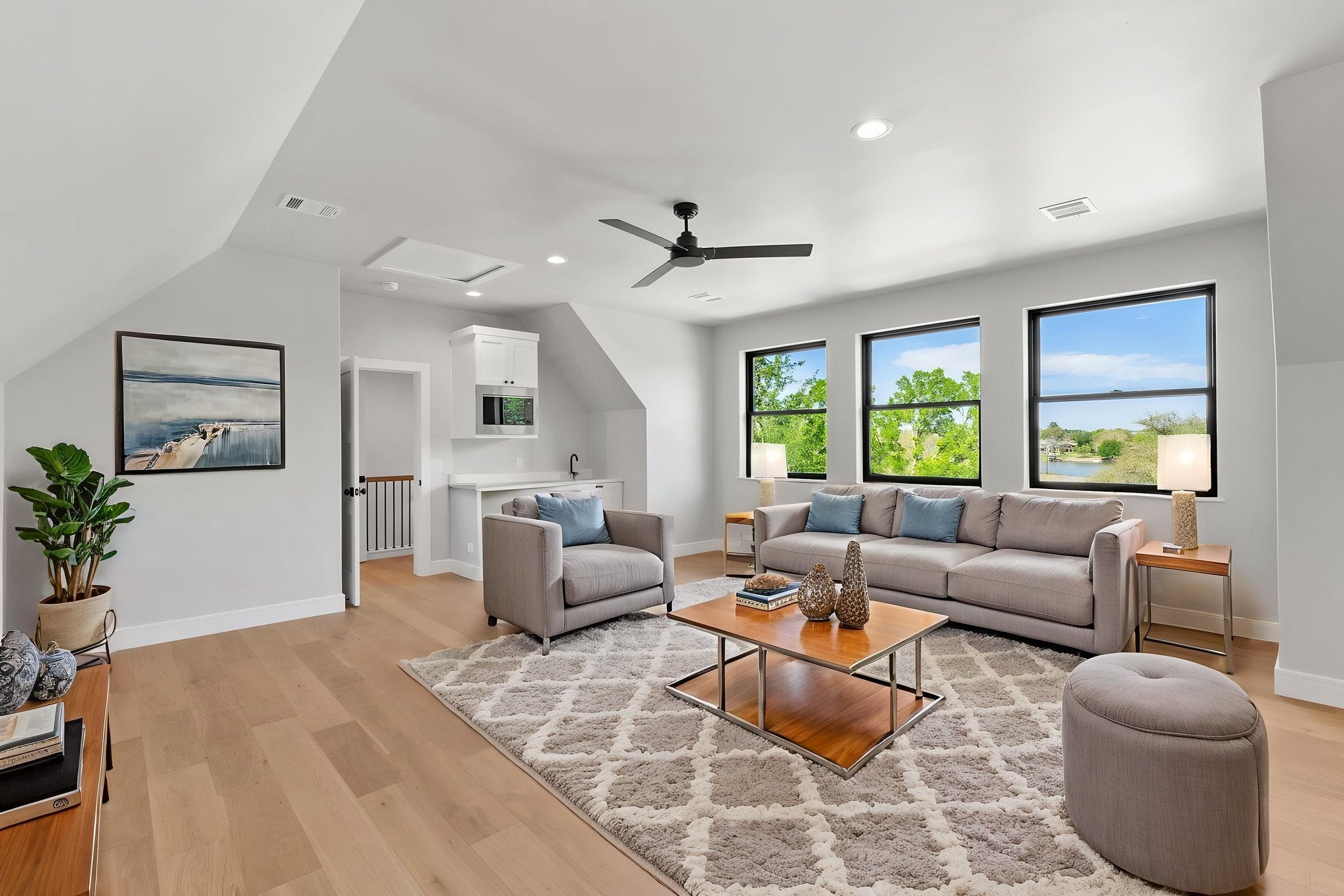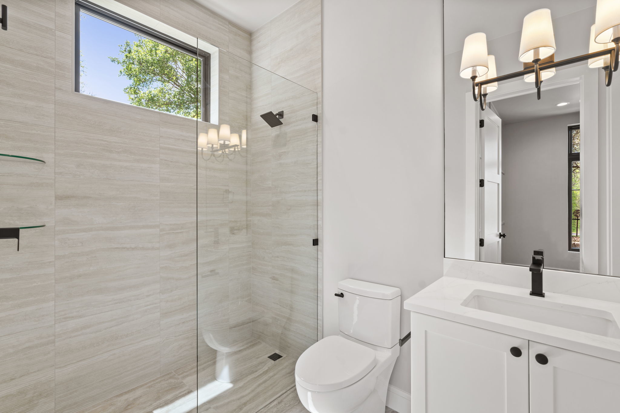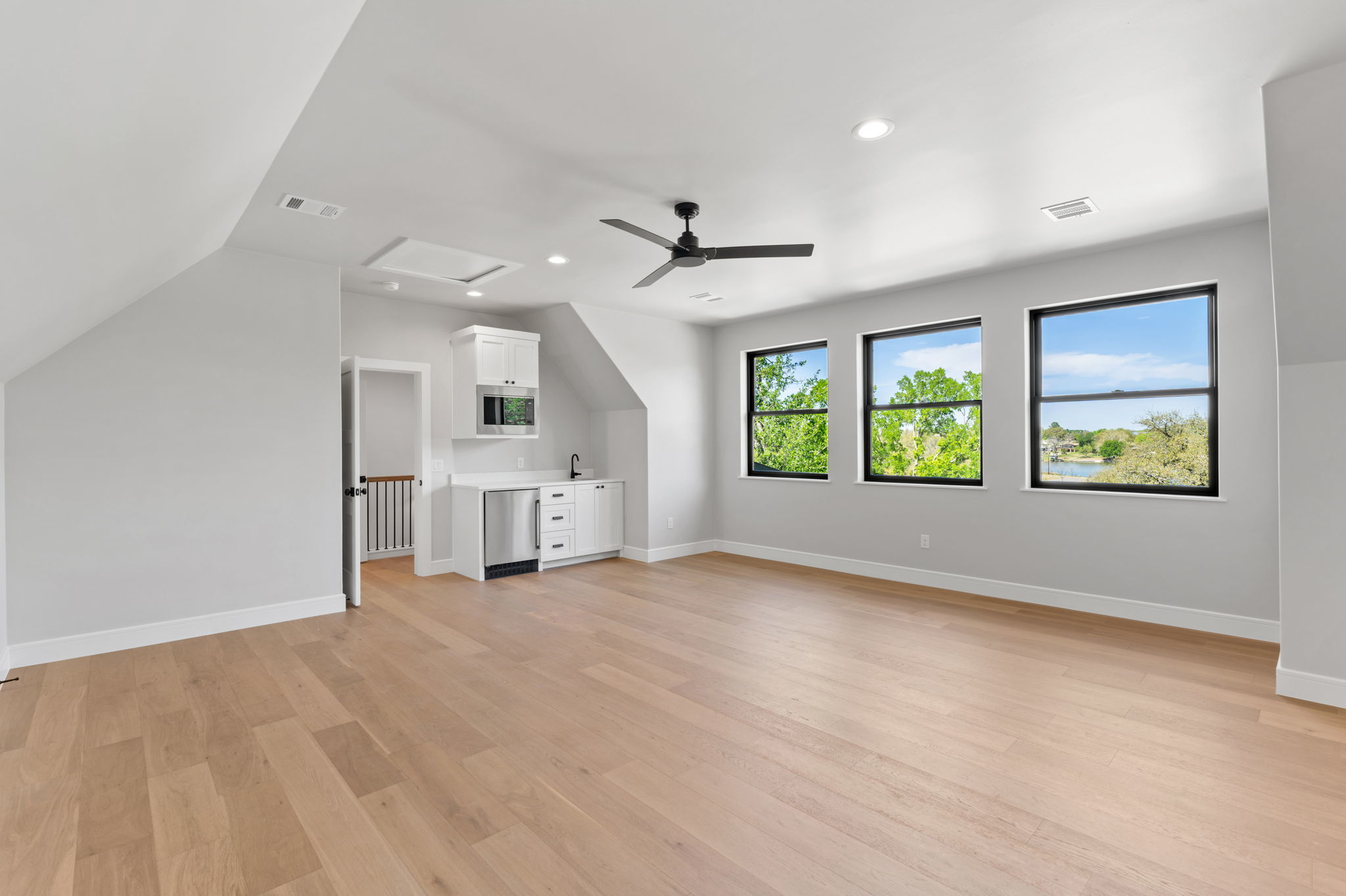 Nestled within the gated community of Trails of Horseshoe Bay, this exquisite custom home offers luxury and sophistication right next to Lake LBJ, and just a short walk to the neighborhood marina and clubhouse. The thoughtfully designed split floor plan features an open-concept layout with hardwood floors and soaring 10’–13’ ceilings. The entry showcases a sleek glass-and-steel front door, and expansive windows that fill the foyer with natural light. The great room is anchored by a 60” linear LP gas fireplace with a stone accent wall. The chef’s kitchen includes top-of-the-line Jenn Air appliances, quartz countertops and backsplashes, custom solid wood cabinetry, and a spacious butler’s pantry with a dual-zone wine refrigerator. Outdoor living shines with a covered back porch, Coyote BBQ grill, pool/spa, and gas fire pit. The primary suite offers views of Lake LBJ, a spa-like bath with dual vanities, walk-in shower, and freestanding tub. A fifth bedroom is located on the second level, offering added privacy and flexibility, and can easily serve as a bonus room, study, or guest suite. Additional features include a three-car garage with epoxy floors and built-ins, standing seam metal roof, spray foam insulation, Andersen windows/doors, water filtration system, and three dual-zoned high-efficiency HVAC units. The neighborhood is nestled among 300 acres of wildlife preserve with home sites on Lake LBJ surrounded by dedicated greenbelt. Amenities include over 500ft of waterfront common area park, miles of secluded hiking paths, separate horse-riding trails, equestrian center, clubhouse and pool next to a private marina with covered boat slips.