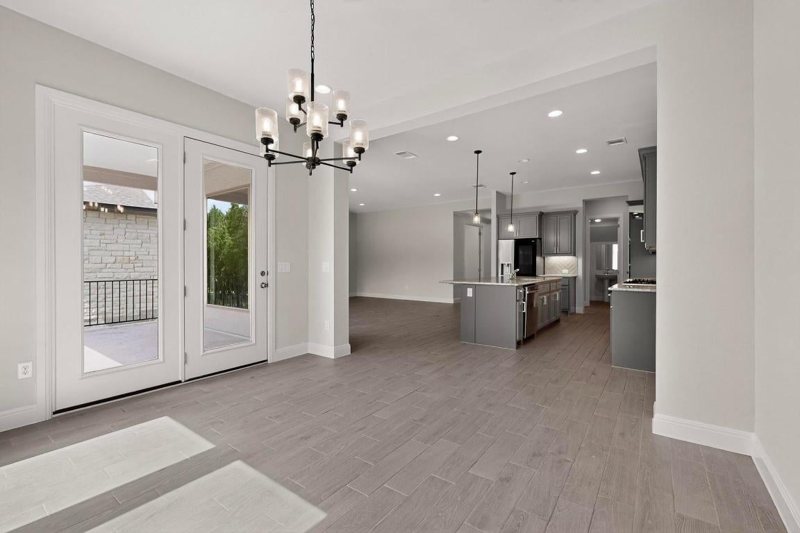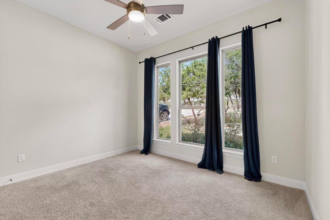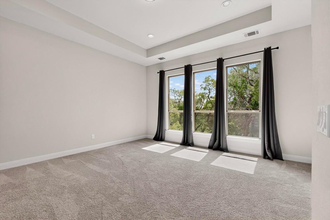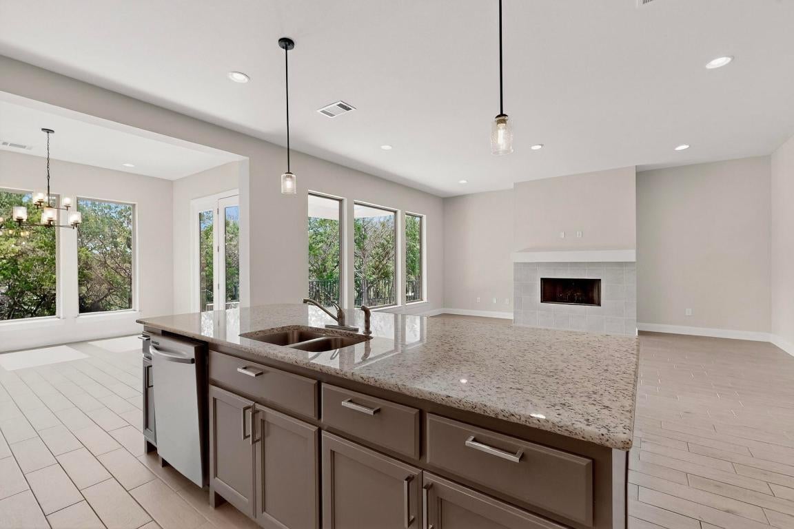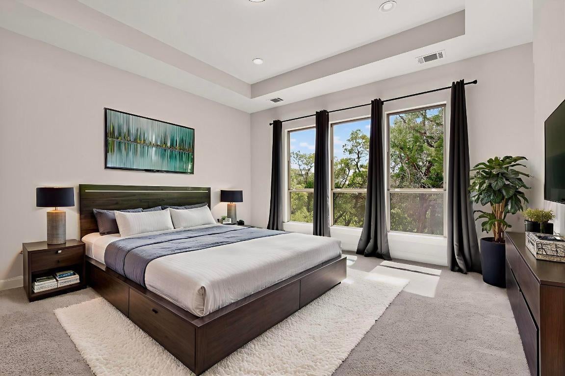 Lake views, peace, and a lifestyle that feels like vacation every day. Surround yourself with the serene beauty of nature in this thoughtfully designed Drees Custom Home, located in the desirable Hollows community in Lago Vista. This gorgeous home features 4 bedrooms, 4.5 bathrooms, a dedicated office, game room, media room and over 3,500 square feet of luxury living. Step through the grand foyer with soaring ceilings into a light-filled, open-concept layout offering stunning greenbelt views. At the entry is an office, perfect for remote work or study, while the in-law suite provides privacy, a full bath, and views of nature. The heart of the home is a spacious living room with a wood-burning fireplace and expansive windows showcasing a 360-degree greenbelt view. The modern kitchen features a large center island, top-of-the-line appliances, designer backsplash, abundant cabinetry and a spacious walk-in pantry. The laundry room includes a cabinet-style sink adding convenience and function. The spacious primary suite is also on the main level, with a tray ceiling, greenbelt views and an en-suite bath with an extended double vanity, walk-in shower, soaking tub and generous walk-in closet. The main-level covered patio overlooks the private backyard with mature trees and peaceful surroundings. Upstairs, two additional bedrooms offer private baths and closets, each designed as a personal retreat with comfort and privacy in mind. A spacious game room with a connected media room wired for sound offers endless entertainment. The tiled upstairs patio provides a relaxing space to enjoy greenbelt views and a glimpse of the lake. Additional highlights include a 2-car garage with horizontal glass inserts for natural light and a mudroom for shoes, coats, and bags. Enjoy access to The Hollows’ amenities featuring multiple pools, a fitness center, pickleball courts, breathtaking scenic trails for hiking, lake access, and community events.