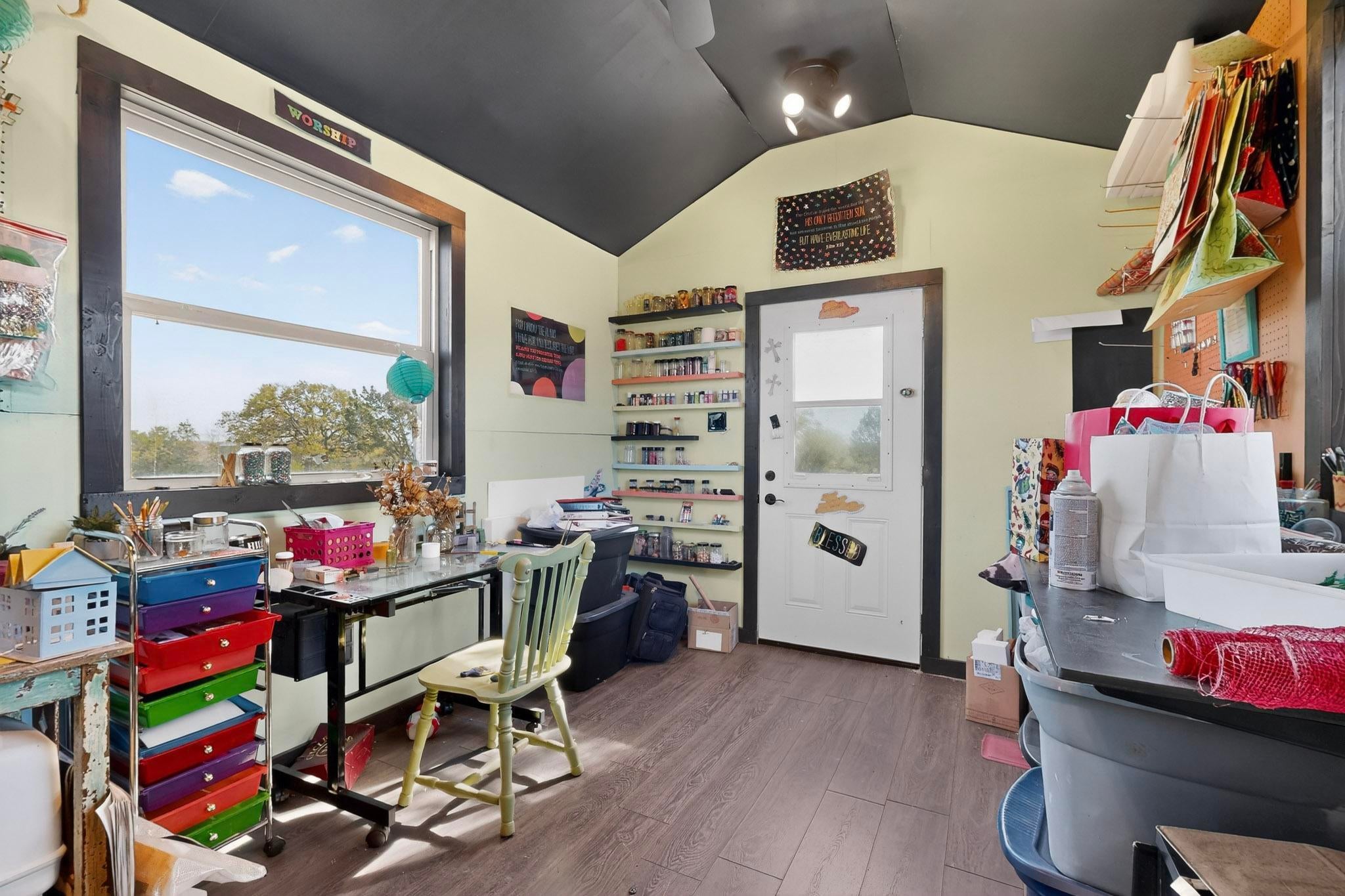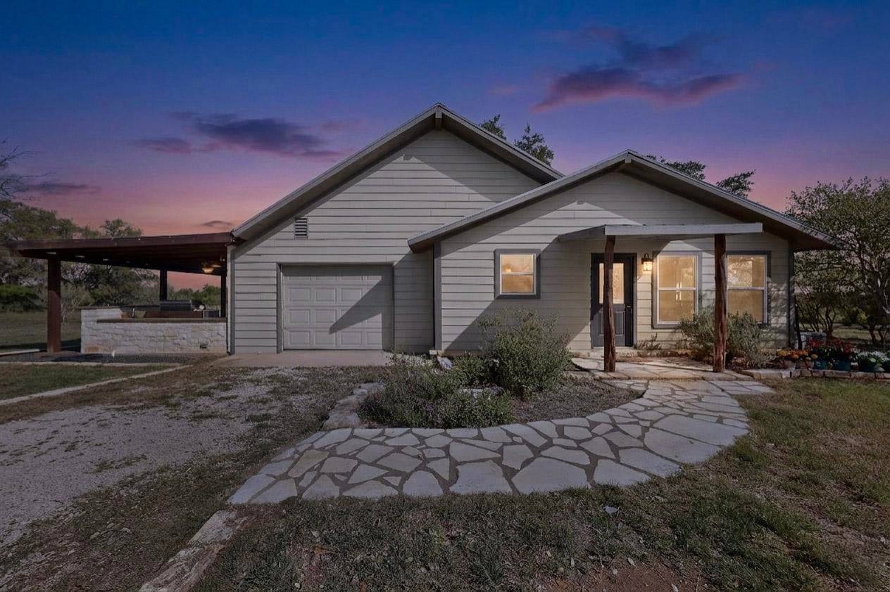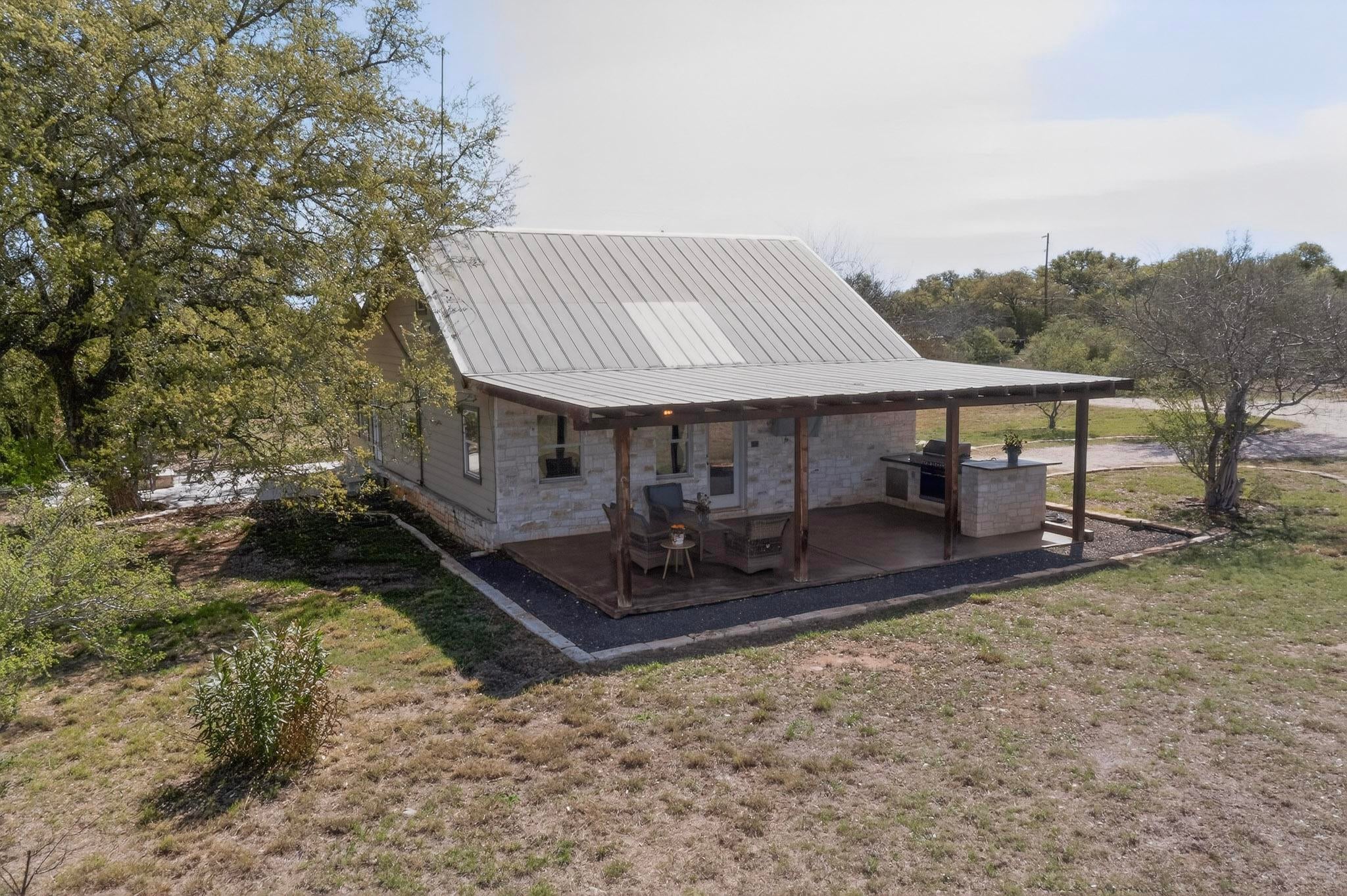 Set in the Texas countryside, the land offers open meadows, mature oaks, and natural privacy. It’s an ideal backdrop for a custom home, with space to design around the views, the trees, and the way you want to live. The existing home is a great starting point and works well as a guest house, weekend retreat, or a comfortable place to enjoy while your vision comes to life. Inside, you’ll find hardwood floors, vaulted ceilings, and an open living, dining, and kitchen area filled with natural light. The primary bedroom and two full baths are on the main level, with a loft bedroom above accessed by a spiral staircase. Outdoor living feels easy here. A covered patio with wood beams, an outdoor kitchen, built-in gas grill, sink, and bar is ideal for gathering. In contrast, a second patio tucked beneath the shade of towering oaks offers a quieter place to relax and take in the surroundings. The property is well-equipped with a detached two-car garage that includes an office and workspace, a separate hobby or art studio, two fenced dog runs, and covered parking for an RV or boat, offering flexibility for hobbies, storage, or weekend projects. An agricultural exemption will be in place this year, making the property eligible for a wildlife exemption filing in 2027.