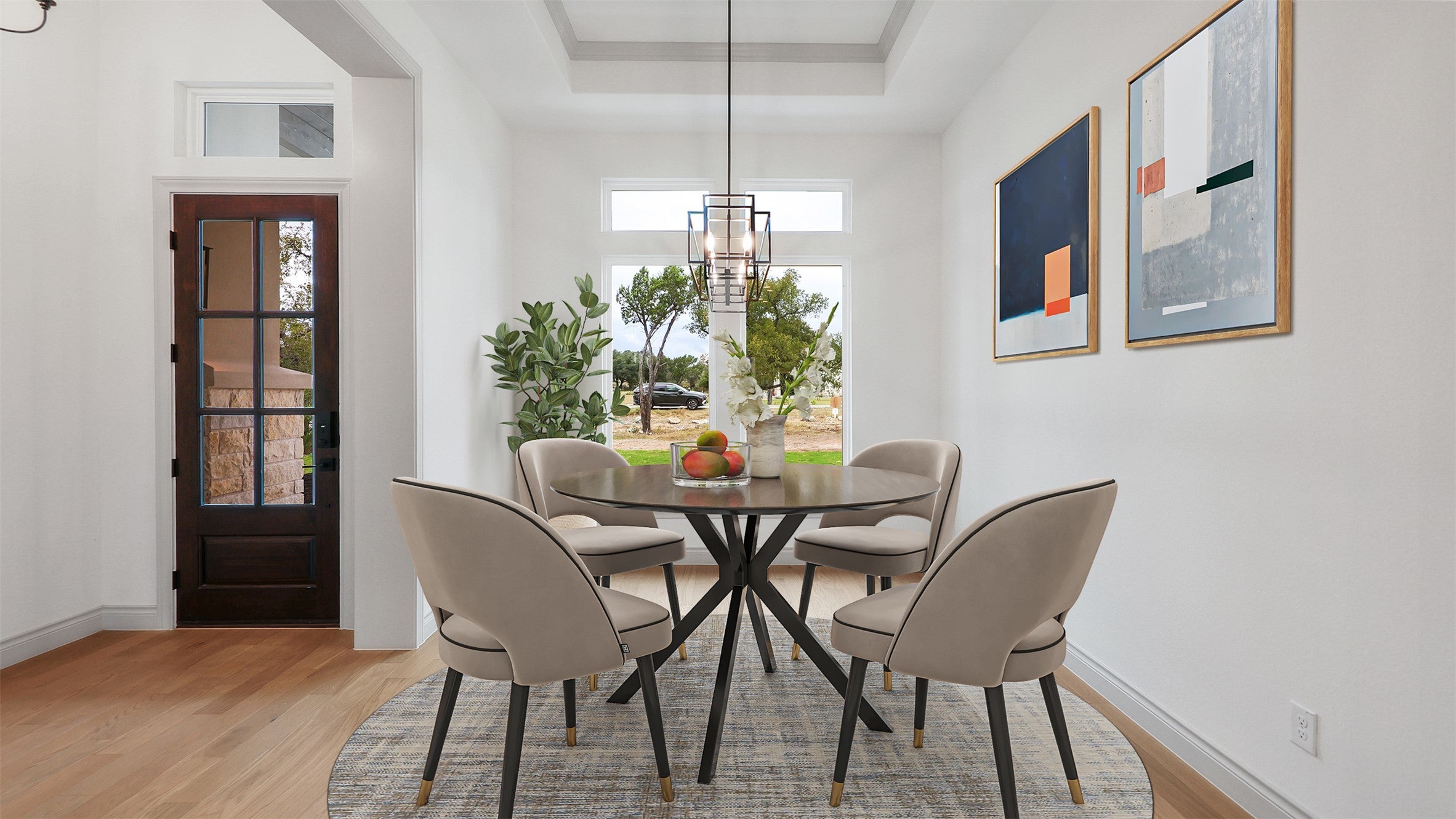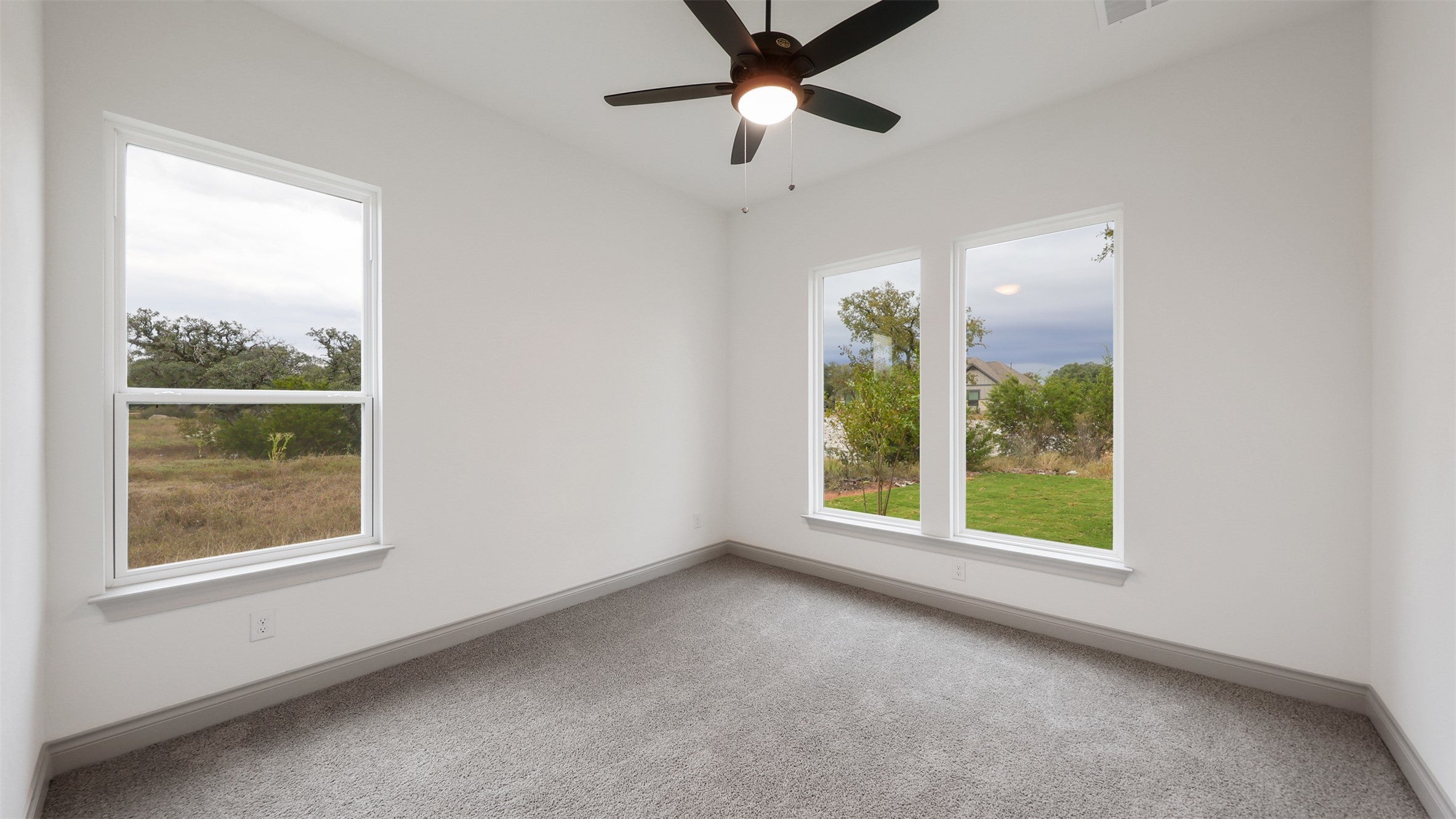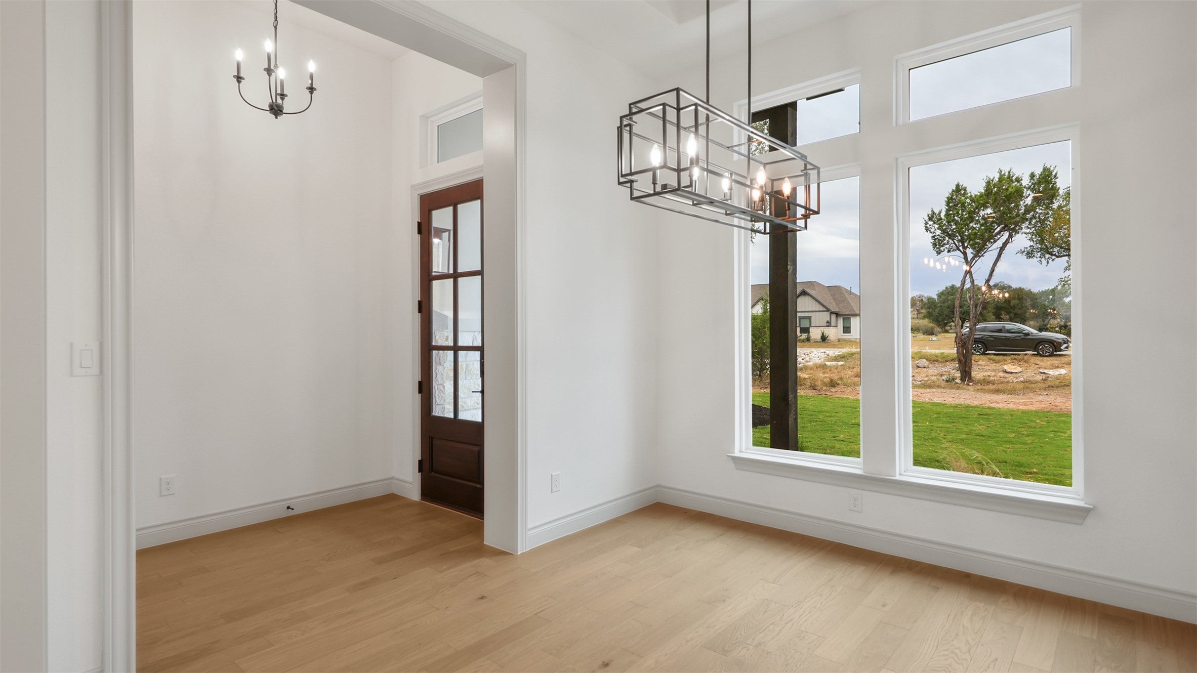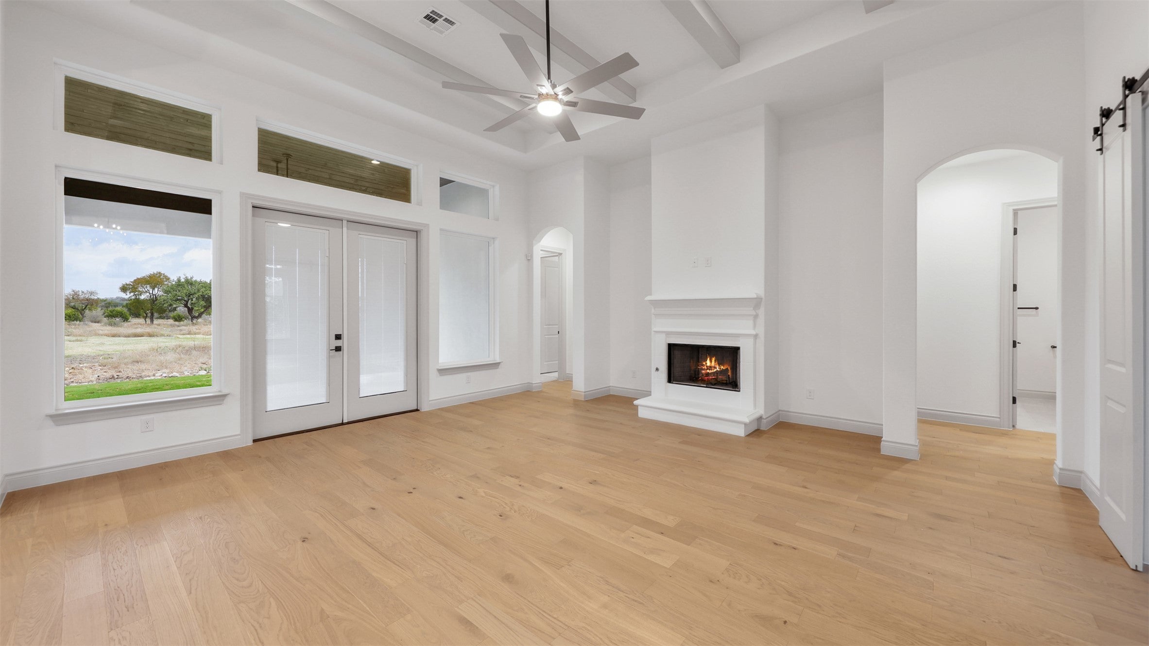 Nestled on one acre and steps from scenic walking trails, this brand-new 4-bedroom, 3.5-bath custom home blends modern luxury with the peaceful charm of the Spicewood Trails community. A refined 2,676 sq ft floor plan by JLP Builders, designed for effortless everyday living and elevated entertaining. The heart of the home is the open-concept great room, showcasing architectural beams, a dramatic cast-stone fireplace, and expansive windows that capture natural light and surrounding hill country views. The gourmet kitchen is a true showpiece, featuring quartz countertops, GE Café stainless steel appliances, double ovens, a large island, and a walk-in pantry. The private primary suite offers spa-like serenity with a soaking tub, walk-through shower, and generous closet space. A dedicated guest suite and two additional bedrooms provide flexible living options for family, visitors, or a home office. Step outside to the covered patio with tongue and groove ceilings—already pre-plumbed for a future outdoor kitchen—and enjoy peaceful evenings under the Texas sky. From the cedar truss front entry to every thoughtfully selected finish, this home delivers high-end design with lasting craftsmanship. This new construction home also includes a builder-backed, new home warranty.