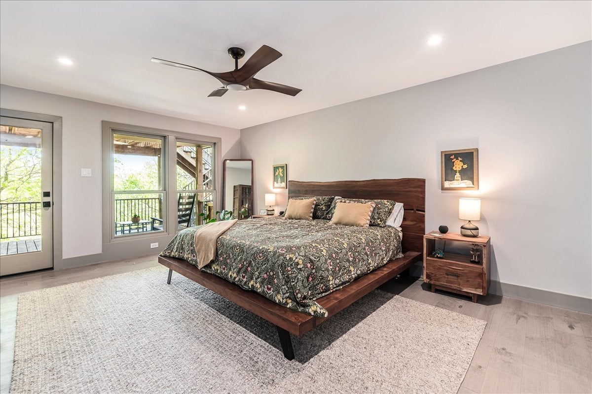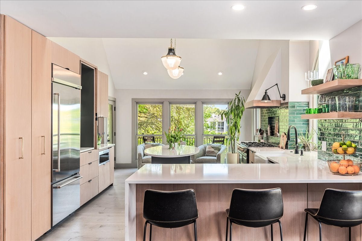 A private drive. Soaring oaks. An architectural masterpiece. Welcome to 4406 Hyridge Drive — one of Austin's most remarkable and completely reimagined luxury residences. Fully transformed in a studs-out renovation completed in 2023 by BuildCo Austin and Bonamici Designs — every inch of this home was reimagined with intention. The showstopping kitchen features soaring vaulted ceilings, a La Cornue dual-fuel range, full Premium KitchenAid built-in appliance suite, custom White Oak cabinetry, handmade tile backsplash, a custom oval island, and a hidden coffee station. The open living and dining areas flow seamlessly, anchored by a stunning tiled fireplace, designer wallcoverings, and treetop views. The primary suite is a true sanctuary — private walk-out deck, engineered hardwood floors, spa-inspired en-suite with imported Italian tile, Kohler body sprayers, rain-head shower, and custom closet cabinetry. The third-floor loft level adds incredible flexibility with a private bedroom, full bath, its own deck, and luxury vinyl plank flooring — perfect for guests, a teen suite, or a creative studio escape. Step outside to multiple decks with sweeping greenbelt views, a covered patio with a vibrant art wall, and a sprawling half-acre property alive with mature trees and natural beauty. Built for peace of mind: whole-home Kohler generator, two Carrier HVAC systems, full replumb, electrical rewire, 60-amp Tesla charger, and a fully integrated Ubiquiti smart home system — all conveying. A custom mudroom with pet station, walnut built-in lounge, and designer finishes throughout make this home truly irreplaceable. Privacy. Beauty. Location. This is the magic of Austin's Northwest Hills. For more photos and info: www.4406HyridgeDr.com