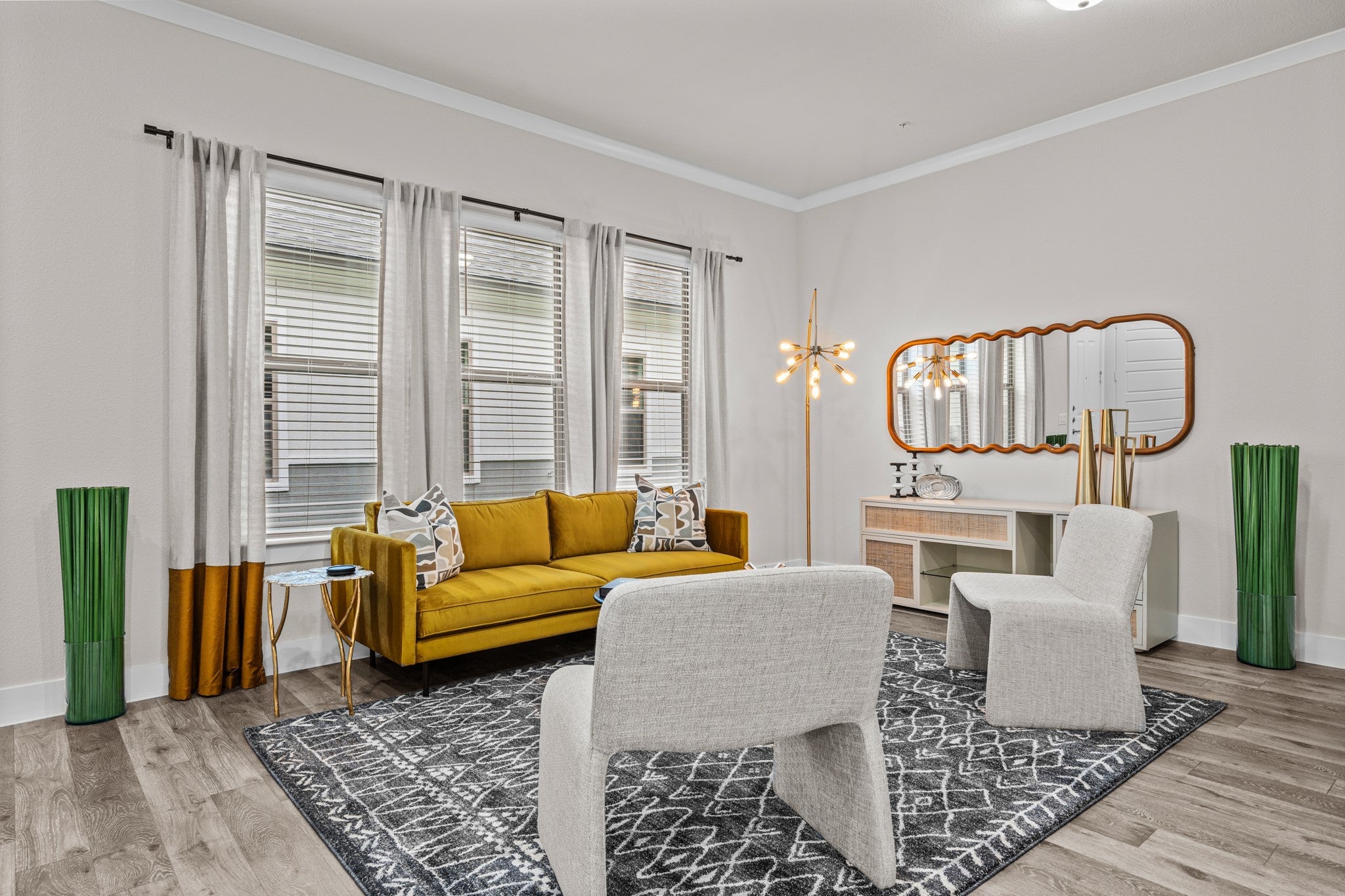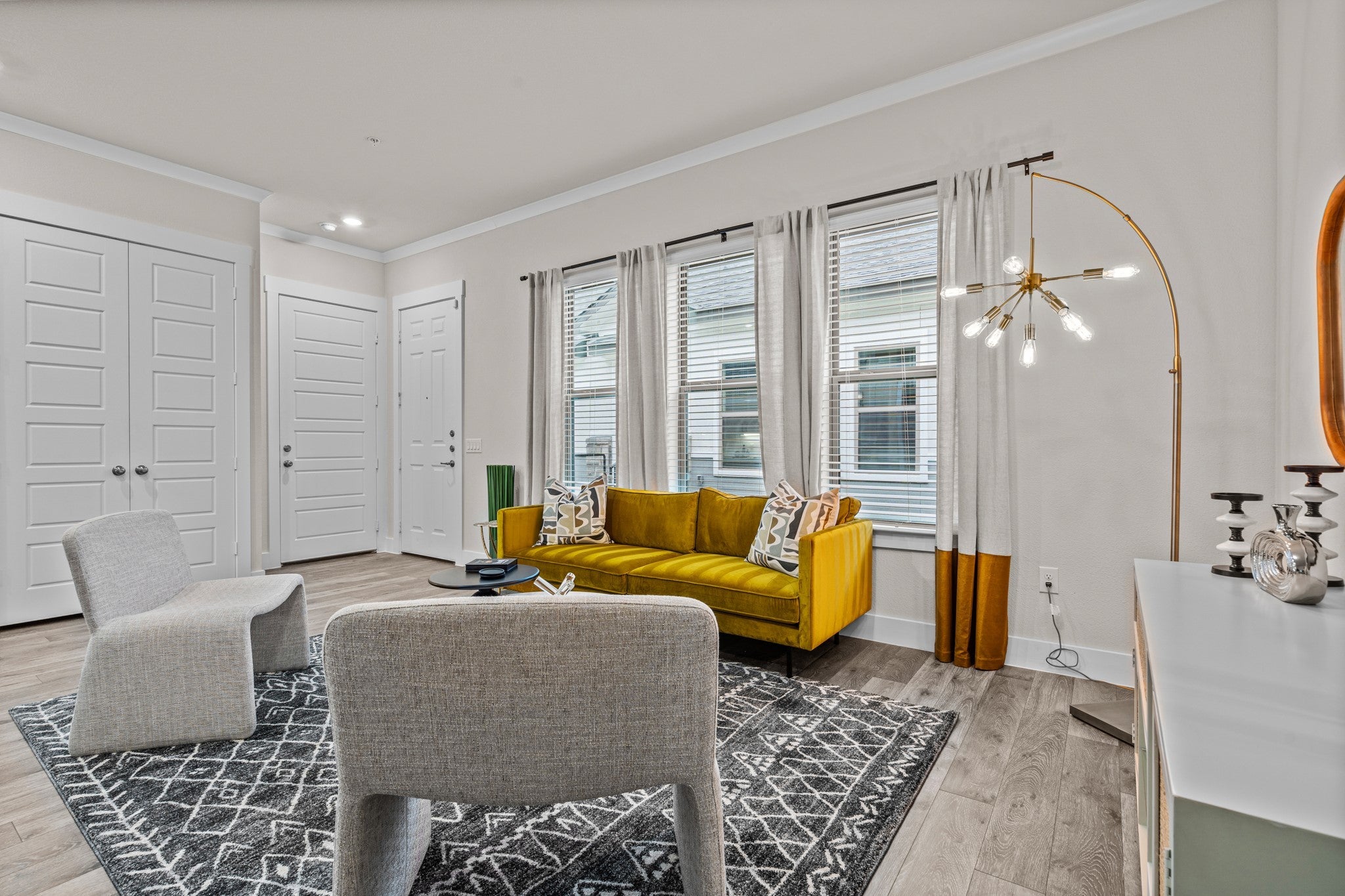 Private Fenced-In Yards & Covered Patios with Weekly Lawn Care Included in lease. First-Floor Entrance with No Adjoining Homes Above or Below, Doggie Doors available in some units, Wood Plank-Style Flooring, Tall, Expansive Windows, 2-Inch Custom Window Treatments, Quartz Countertops in Kitchen & Baths Modern Tile Backsplash, Under-Cabinet Lighting, Pantries with Built-in Shelves, Stainless-Steel, Under-Mount Kitchen Sink with Retractable Faucet, Dual Sinks, Garden Tubs Full-Size Washer/Dryer Connections, Walk-in Closets,9- to 10-Foot Ceilings & 8-Foot Doors, Programmable Thermostats, Energy-Efficient Insulation, Reflective Radiant Barrier Roofing & Extensive Extra Insulation, Double-Pane Windows, 16 SEER Heat Pump HVAC Pet-Friendly Community with Walking Trails & Waste Stations, Private Tanning Facility, Business Center with 27” iMac & PC Computer Stations, Outdoor Wi-Fi Lounge, Package Lockers & Mail Center, Community Events, Including Catered Brunches & Community Socials, Complimentary Starbucks ; Wi-Fi Cafe;, Spectrum All-fiber High Speed Internet, Eco-Friendly, Health-Conscious, Non-Smoking Environment, 24/7 Emergency Maintenance Service, Valet Trash Service, Onsite Management