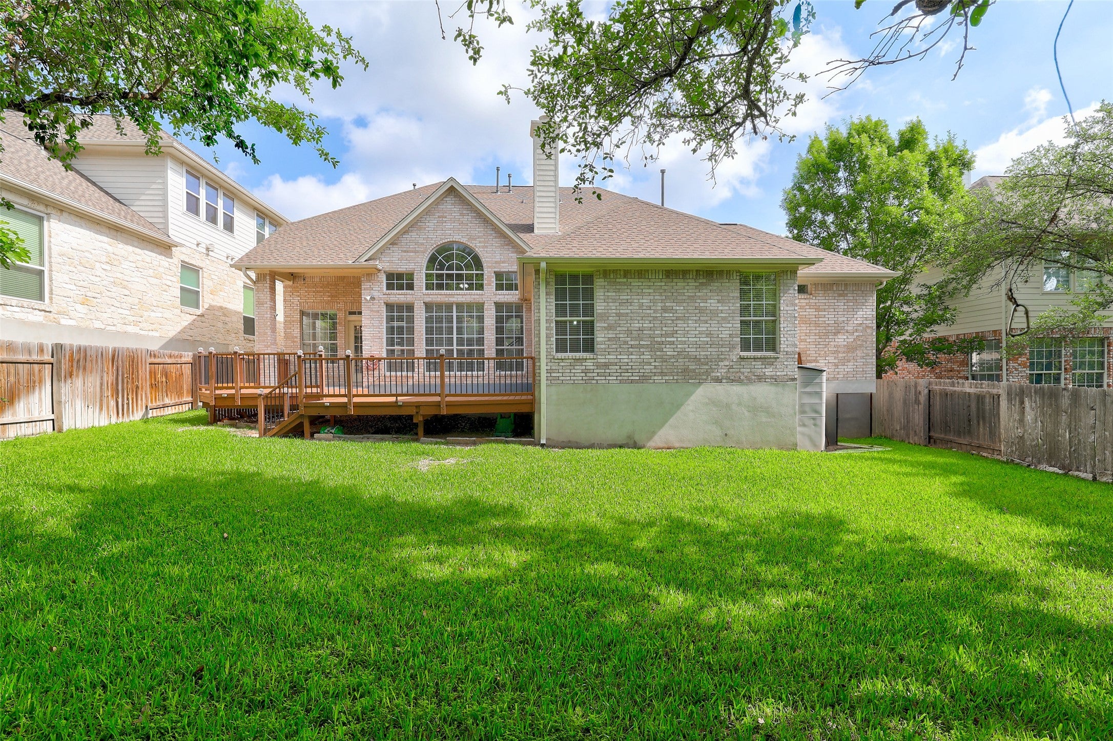 Welcome to this stunning Standard Pacific Edgewood floor plan in highly sought-after Canyon Creek, one of Northwest Austin’s most desirable communities zoned to top-rated Round Rock ISD. Offering 3,419 square feet of thoughtfully designed living space, this beautifully maintained two-story brick home blends timeless architecture with modern functionality in a prime location near top schools, major employers, and everyday conveniences. A charming front porch and classic brick elevation create inviting curb appeal. Inside, soaring ceilings elevate both the formal living room and the dramatic two-story family room, where a cozy fireplace and a wall of windows fill the home with natural light while overlooking the private backyard. Marble, wood, and tile flooring span the main living areas, with carpet only in the upstairs bedrooms for comfort and ease. The well-appointed kitchen is designed for both everyday living and entertaining, featuring double ovens, gas cooktop, built-in microwave, center island, breakfast bar, and a bright eat-in dining area that flows seamlessly into the family room. A formal dining room provides additional space for gatherings. The main level offers a private primary suite with hardwood floors and a spa-like ensuite complete with dual vanities, soaking tub, walk-in shower, and expansive walk-in closet. A dedicated office with full bath on the main floor provides flexibility as a guest suite or fifth bedroom. Upstairs includes a large game room and three spacious secondary bedrooms, including one with a private ensuite, offering ideal separation of space. Step outside to a peaceful backyard retreat featuring a covered patio and extended deck, perfect for outdoor dining or relaxing under mature trees. Additional highlights include a new roof in 2023 and a 2.5 car garage with ample storage. Located within walking distance to Canyon Creek Elementary and area amenities including a pool, courts, park, and trails, and zoned to Westwood HS