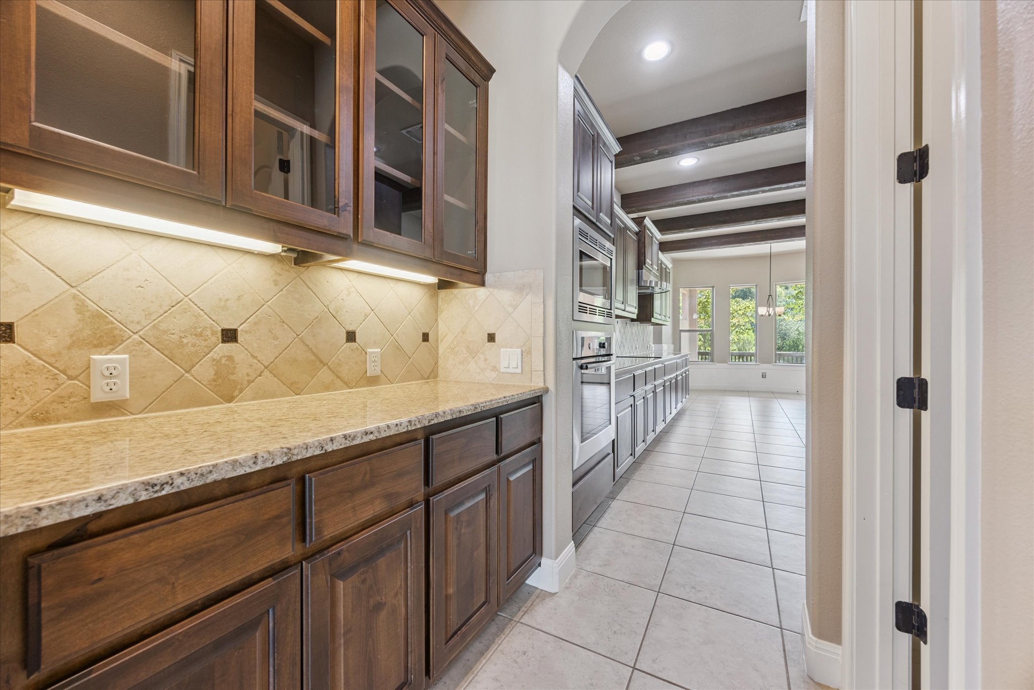 - Built-In Electric Range, Built-In Oven, Dishwasher, Disposal, Microwave, Refrigerator, Vented Exhaust Fan, Built-In Electric Oven, Wine Refrigerator
