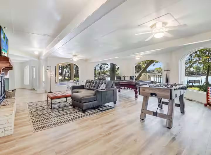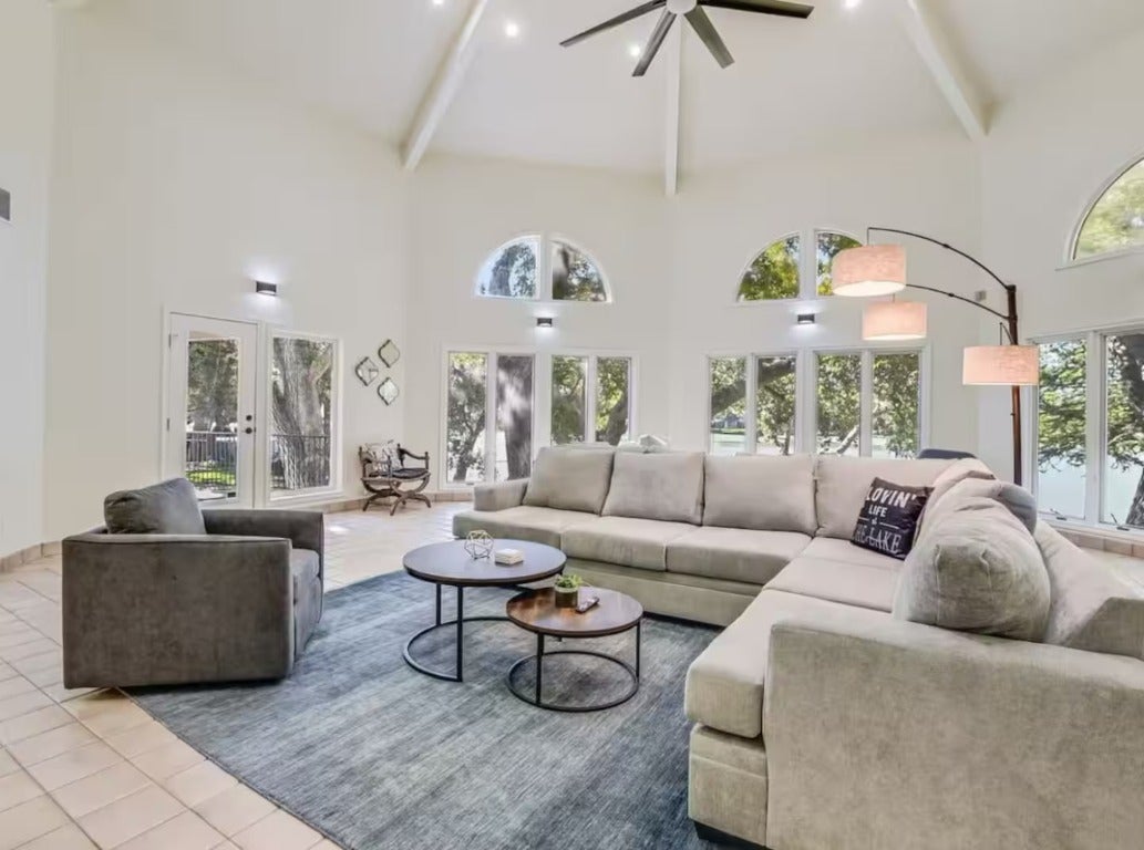 Experience luxury lakefront living in this fully furnished, custom-designed two-story home with unparalleled views of Lake McQueeney from the main living and dining areas. Nestled on a beautifully landscaped 1.3-acre lot with towering trees and a circular drive, this seven bedroom, seven and a half bathroom masterpiece offers elegance, comfort, and functionality. Step inside through a dramatic two-story atrium entry, highlighted by a hill-country stone elevator tower and a sweeping architecturally balanced circular staircase. Every inch of this home reflects thoughtful design and high-quality construction, with upscale features like an interior elevator, central vacuum system, and three spacious dining areas perfect for everyday living or entertaining. The home boasts over 200 feet of improved waterfront, complete with a private boathouse, dock, storage, and boat lift—ideal for embracing the lake lifestyle. Whether you’re enjoying a quiet morning coffee with lake views or hosting guests for a weekend getaway, this home provides the perfect setting. A rare opportunity to own a fully furnished, move-in ready waterfront estate on Lake McQueeney — schedule your private tour today.