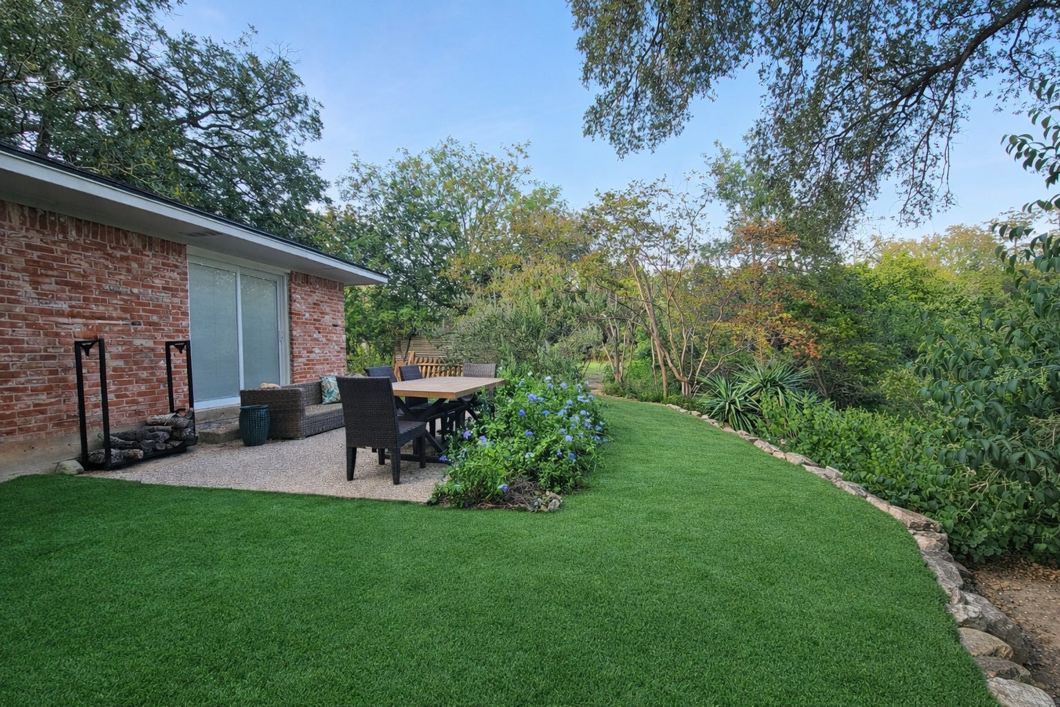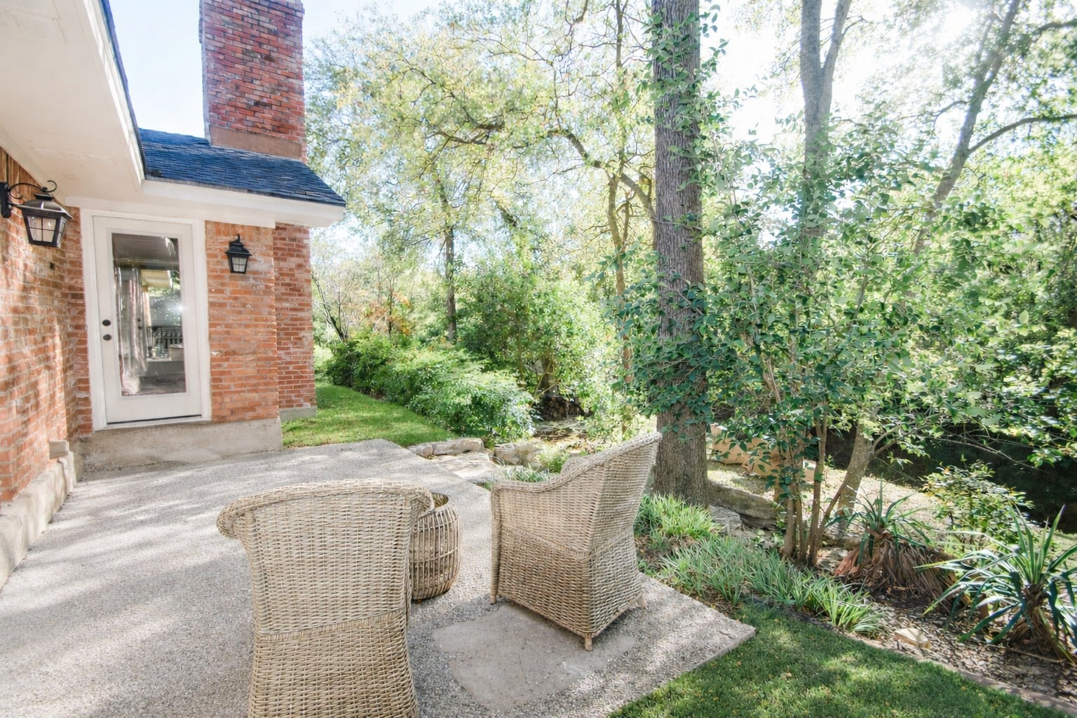 Private, design-heavy, single-story retreat, fully rebuilt in a private enclave unlike surrounding subdivisions. No city taxes and no HOA! On cul-de-sac road, very low traffic. Surrounded by mature trees and greenbelt, you'll feel far away, yet the airport, downtown, Mueller and Domain are just minutes from your door. You'll love the quiet surroundings without sacrificing convenience. Step inside and discover a thoughtfully designed layout with generously sized bedrooms, separate office and dining room, and three full bathrooms. The large open kitchen and breakfast area flow into the living room with vaulted ceilings and wood-burning fireplace. Remodeled as a forever home, no cheap flip tricks: all wiring replaced, high-efficiency HVAC, all new windows and doors, insulated garage door, wood and tile floors throughout, new roof, ultra efficient water heater, fixtures sourced from premium brands. Quality you'll notice and appreciate daily. The primary suite is a sanctuary in itself. Luxury steam shower in spa-liked wet room with chroma therapy lighting and built-in music, creating a space that restores both body and mind. Dual shower zones offer rain can, body spray, shower heads, and hand showers creating an indulgent, custom experience. Backing directly to Walnut Creek, the greenbelt and a three-acre park next door, the two-level backyard is nothing short of magical. Serene creek frontage and established perennials create a magical springtime retreat. Low-maintenance turf on the upper level provides year-round beauty and enjoyment. The spring canvas of color-towering crape myrtles, a majestic pecan tree, and vibrant flowers make every day feel like a retreat. Whether entertaining, gardening in the greenhouse or simply relaxing, this outdoor haven will become your favorite place to be. This isn’t just a move-in-ready home, it’s a rare opportunity to own a private retreat with easy access to 290, 35, 183, and 130 for quick access in all directions.