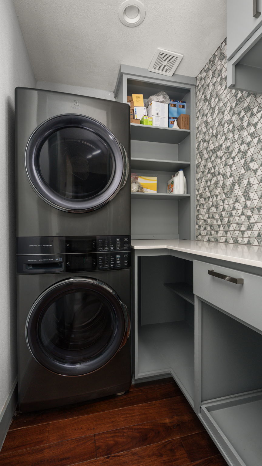 - Dryer, Washer/Dryer Stacked, Dishwasher, Free-Standing Gas Range, Gas Cooktop, Disposal, Gas Water Heater, Microwave, Refrigerator, Range Hood, Stainless Steel Appliance(s), Wine Refrigerator, Washer, Built-In Gas Oven