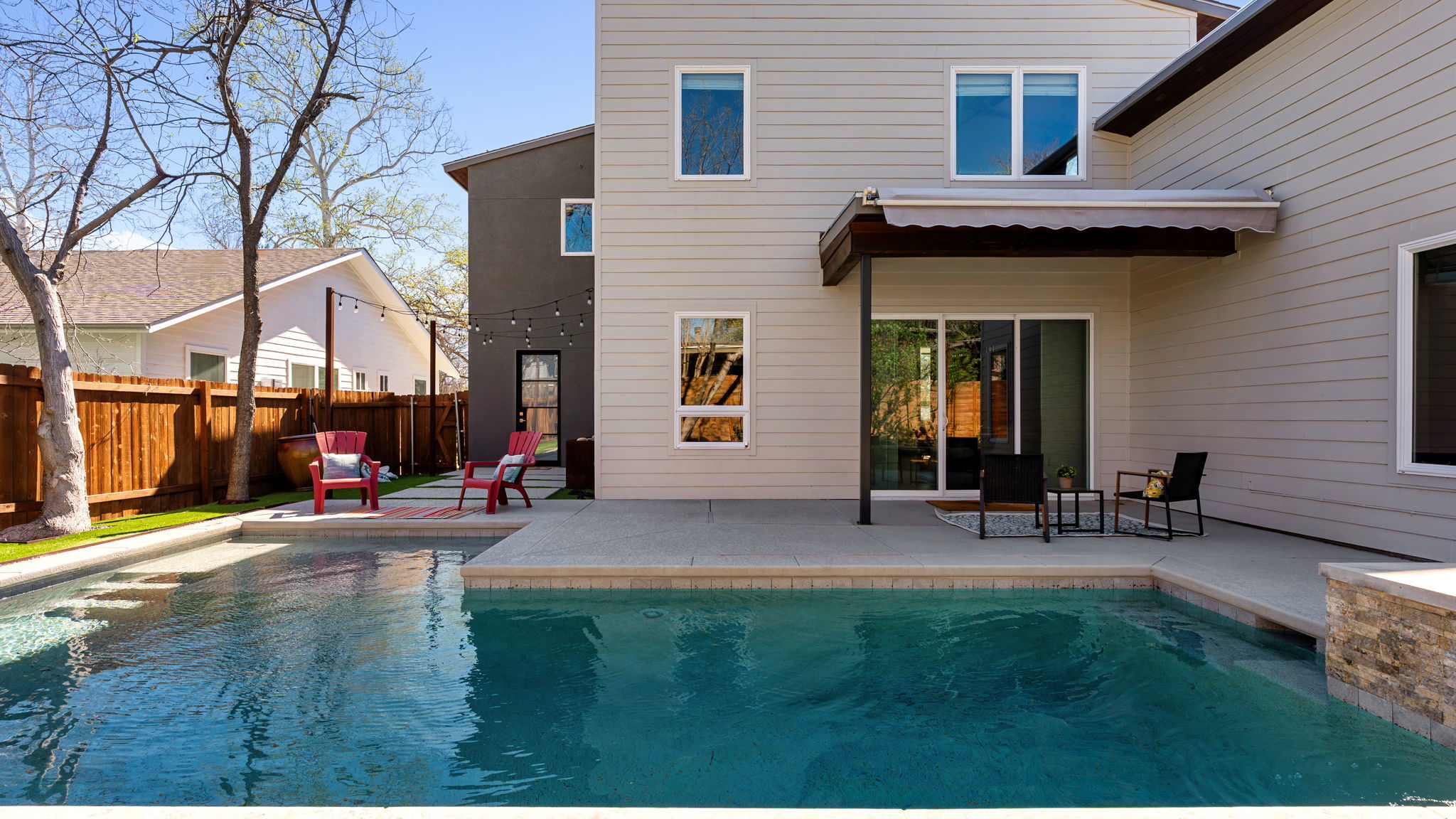 Discover this exceptional residence nestled in one of Austin’s most established and scenic neighborhoods. Located near the coveted Shoal Creek area, this home offers the perfect balance of timeless character, modern comfort, and unbeatable convenience—just minutes from the heart of downtown Austin. Classic Texas limestone architecture create a warm and inviting first impression. Inside, expansive living spaces are filled with natural light, complemented by rich hardwood floors, thoughtfully updated finishes in 2022. A seamless flow ideal for both everyday living and entertaining. Large windows frame peaceful neighborhood views, while multiple living and dining areas provide flexibility for gatherings, work-from-home needs, or relaxed evenings. The kitchen serves as the heart of the home, featuring generous counter space, high-end appliances, and ample storage designed to inspire home chefs and hosts alike. Well appointed coffee bar with wine frig set between the pool bath and kitchen. The main level primary suite provides a serene retreat with well-appointed bath and closet space. The spacious bedrooms offer comfort and privacy. One of the two guest bedrooms has an en suite bath and the other shares the large bath with a gathering area. Extra bonus is the large upstairs balcony with outdoor kitchen! Step outside to your own private backyard oasis with a sparkling expansive pool surrounded by mature trees—perfect for weekend barbecues, morning coffee under the shade of towering oaks, or future customization. The oversized lot offers both tranquility and opportunity, a rare find in such a central location. Enjoy the hiking trails of nearby Zilker Park, Barton Springs, Turkey Creek, and Town Lake. Near major thoroughfares for easy commuting, this address places you close to everything that makes Austin special—while still feeling tucked away in a peaceful enclave.