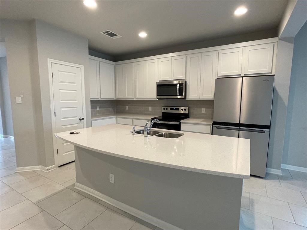 One Story, 3 Bedrooms, 2 Bathrooms, 2-Bay Garage. Kitchen features 42" white painted cabinets, white quartz countertops, subway backsplash, kitchen island. Upgrades include: Luxury Vynl throughout common areas at the main floor, rooms have carpet, additional recessed can lighting in great room, walk-in shower, bathtub and dual sinks at Primary Bath, as well as a covered patio and more. Refrigerator, Washer dryer included.