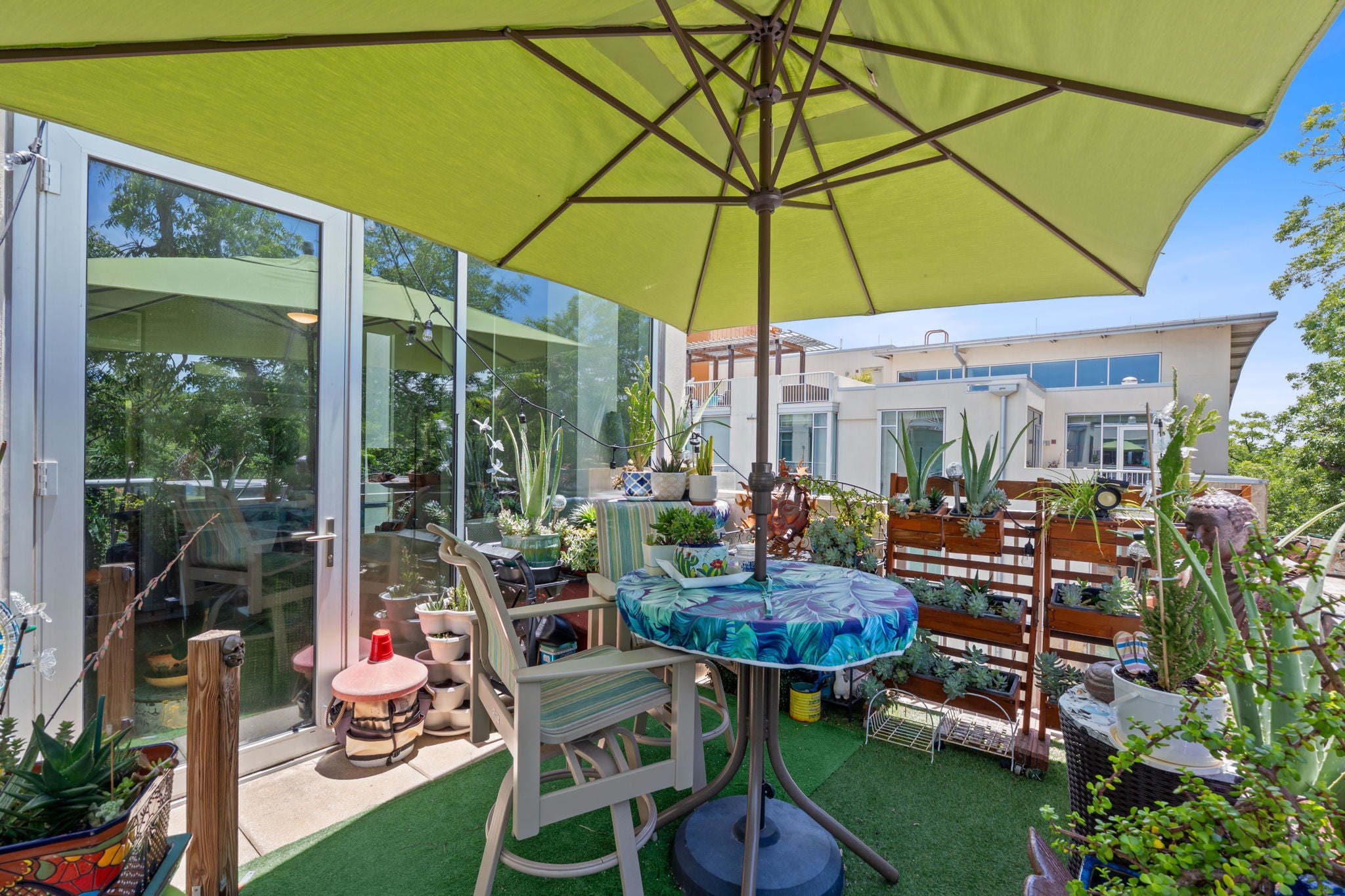 Step into elevated penthouse living among the treetops—where style, comfort, and convenience come together in a truly exceptional home. This one-of-a-kind residence offers a rare opportunity to own a luxury condo in one of Austin’s most desirable locations, just moments from the city’s vibrant culture, dining, and green spaces. Soaring ceilings and walls of glass bring in beautiful natural light, while the expansive corner terrace provides the perfect space to unwind or entertain. The smart, spacious layout includes open-concept living and dining areas, a luxurious primary suite with a spa-inspired bath, oversized walk-in shower, and generous walk-in closet. A private guest bedroom with ensuite bath, additional powder room, and well-equipped utility room with ample storage maintain easy living. Thoughtful upgrades elevate the experience, from sustainable cork flooring to a state-of-the-art home automation system featuring custom remote shades, integrated alarm and AV, smart thermostat, and energy-efficient LED lighting. Recent updates to appliances, HVAC, and water heater ensure peace of mind and turnkey living at its best. Live where Austin plays at BartonPlace! Perfectly positioned between iconic Zilker Park and the vibrant city center, this incredible community truly offers residents the best of both worlds. BartonPlace offers residents a mix of modern luxury, convenience, and an active, outdoorsy lifestyle, making it one of Austin's most sought-after residential condo communities. Community amenities include a heated saltwater pool with a lounging and grilling area, four rooftop terraces with grills, expansive outdoor spaces including a community garden, an Owner’s lounge with kitchenette, a guest suite for overnight visitors, a fitness room, a dog run, and a secure, gated environment with attentive 24-hour concierge service.