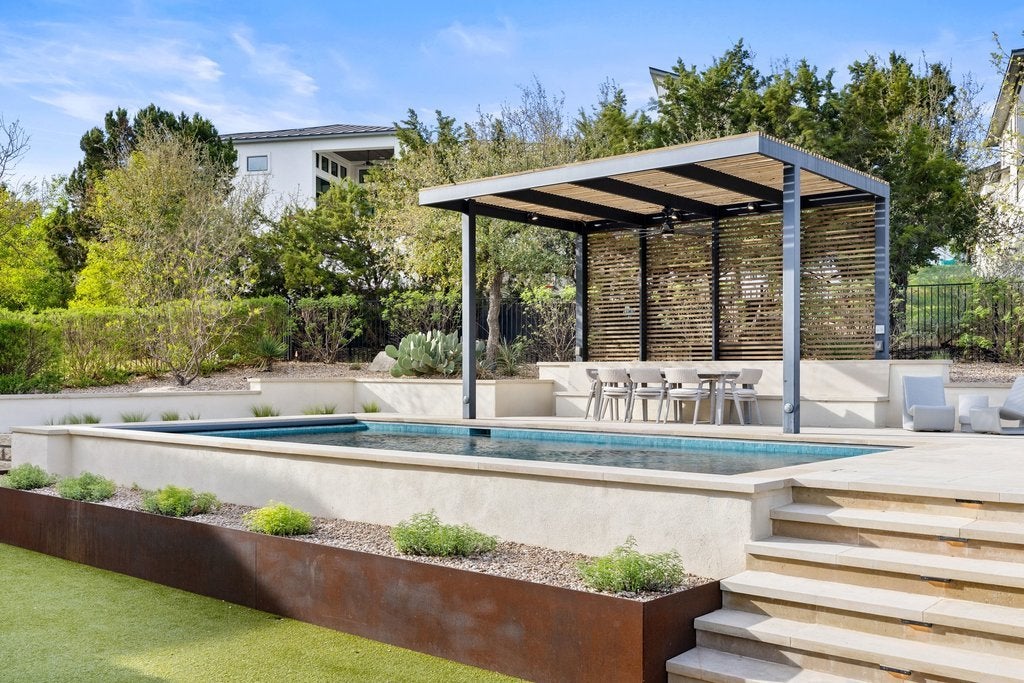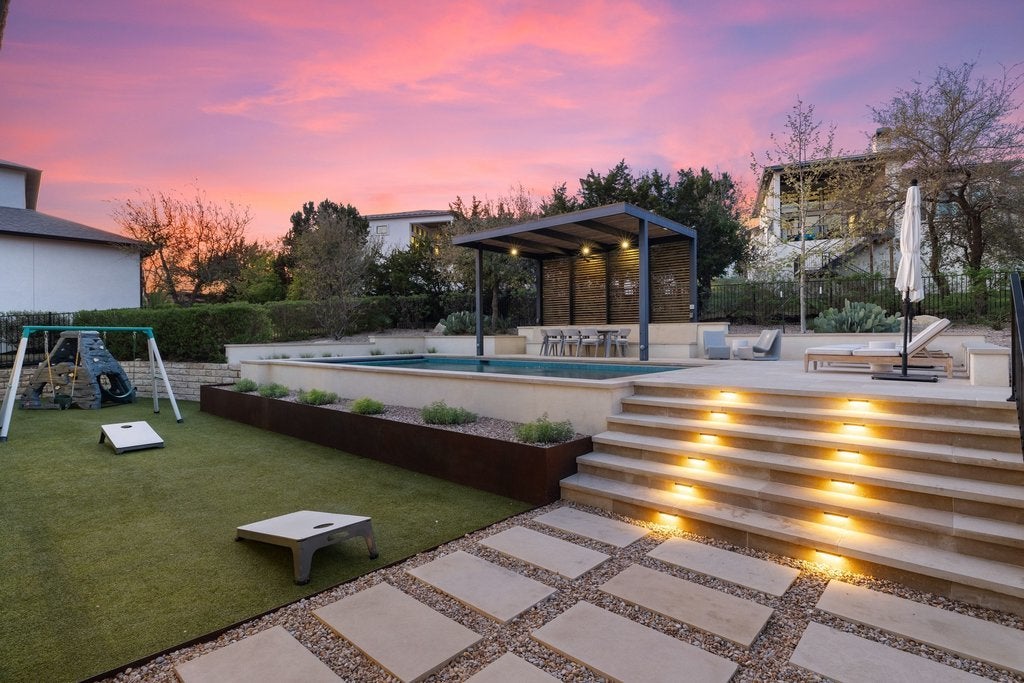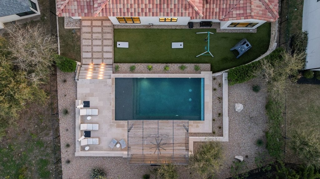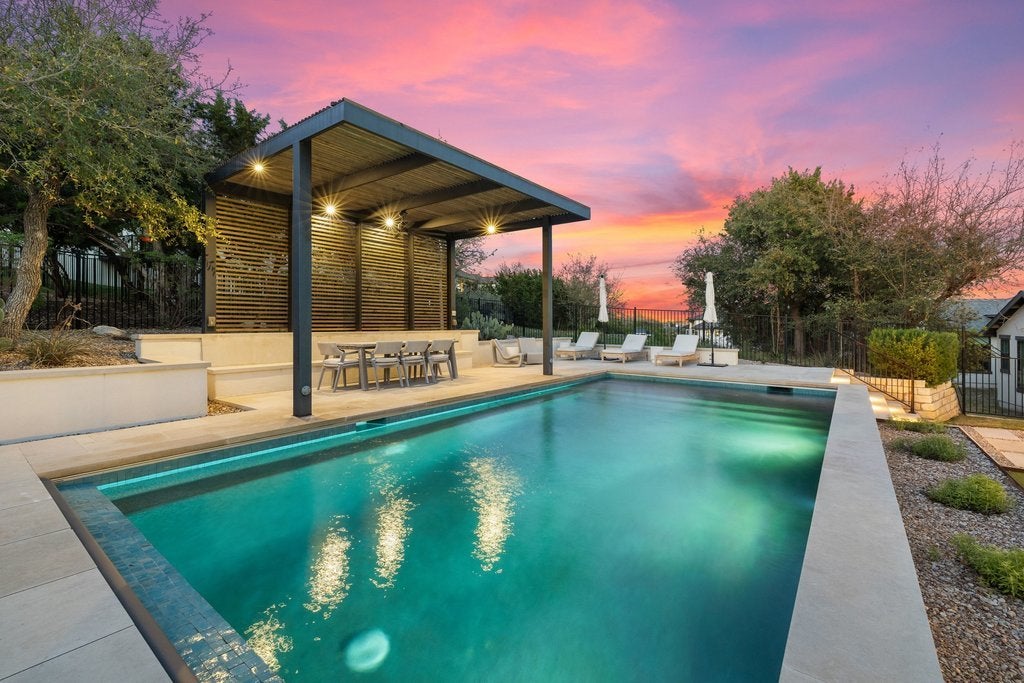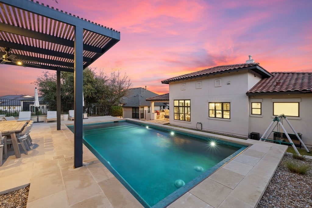 Welcome to 305 Ringtail Stream Drive. Located in the heart of hill country in Lakeway's coveted Serene Hills neighborhood, this single-story residence offers 3 bedrooms, 4 bathrooms and separate private office space. A versatile flex room offers for an additional home office, playroom, or game room. From the moment you arrive, this property is an oasis. Gorgeous grounds surround the home and the Spanish-style front elevation welcomes you to the front door. Once inside, the home is filled with beautiful natural lighting throughout. Wood beams in the main living areas offer additional warmth and architectural detail. The primary suite occupies its own wing of the home for the ultimate feeling of privacy and retreat. The spa-inspired primary bathroom showcases his-and-her vanities, a grand shower and adjacent oversized closet. A sparkling white kitchen featuring quartz countertops offset from the dining area is a chef's kiss with Bosch appliances and a GE Monogram professional range top. Outside the grounds elevate everyday living. The backyard centerpiece features a pebble sheen finished lap pool trimmed with Zellige tile, a pergola for relaxing and entertaining, custom landscaping, and complimentary uplighting throughout offering both serenity and privacy. Out back, a fully turfed yard and outdoor kitchen await featuring a Hestan Aspire Grill and Kamado Joe Smoker. Located in the prestigious LTISD, a home both extraordinary for functional living and entertaining, the finest of Texas hill country can be found here.