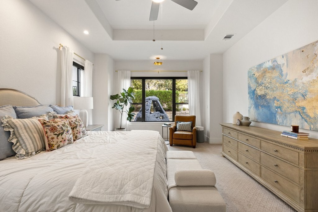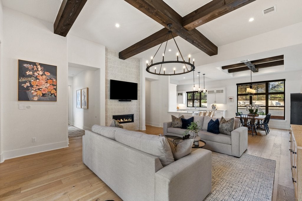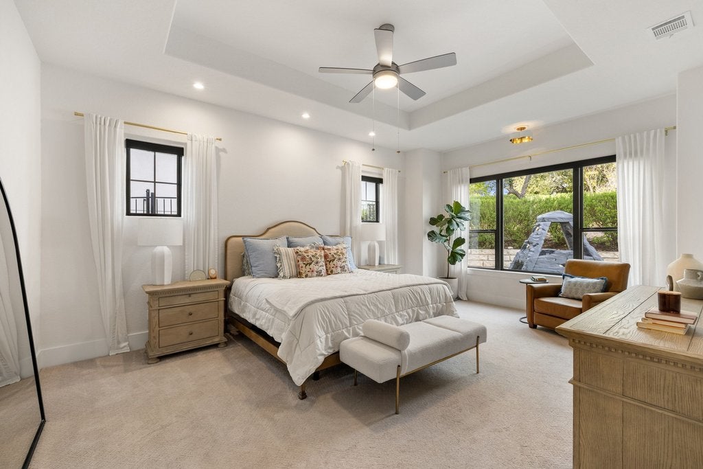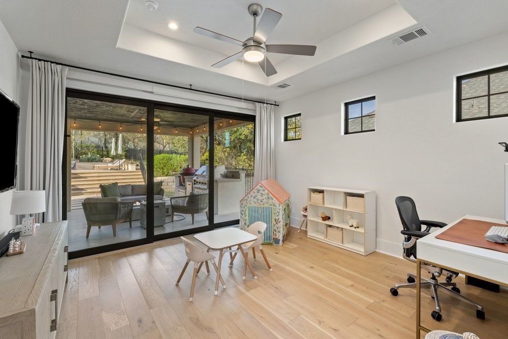 Welcome to 305 Ringtail Stream Drive. Located in the heart of hill country in Lakeway's coveted Serene Hills neighborhood, this single-story residence offers 3 bedrooms, 4 bathrooms and separate private office space. A versatile flex room offers for an additional home office, playroom, or game room. From the moment you arrive, this property is an oasis. Gorgeous grounds surround the home and the Spanish-style front elevation welcomes you to the front door. Once inside, the home is filled with beautiful natural lighting throughout. Wood beams in the main living areas offer additional warmth and architectural detail. The primary suite occupies its own wing of the home for the ultimate feeling of privacy and retreat. The spa-inspired primary bathroom showcases his-and-her vanities, a grand shower and adjacent oversized closet. A sparkling white kitchen featuring quartz countertops offset from the dining area is a chef's kiss with Bosch appliances and a GE Monogram professional range top. Outside the grounds elevate everyday living. The backyard centerpiece features a pebble sheen finished lap pool trimmed with Zellige tile, a pergola for relaxing and entertaining, custom landscaping, and complimentary uplighting throughout offering both serenity and privacy. Out back, a fully turfed yard and outdoor kitchen await featuring a Hestan Aspire Grill and Kamado Joe Smoker. Located in the prestigious LTISD, a home both extraordinary for functional living and entertaining, the finest of Texas hill country can be found here.