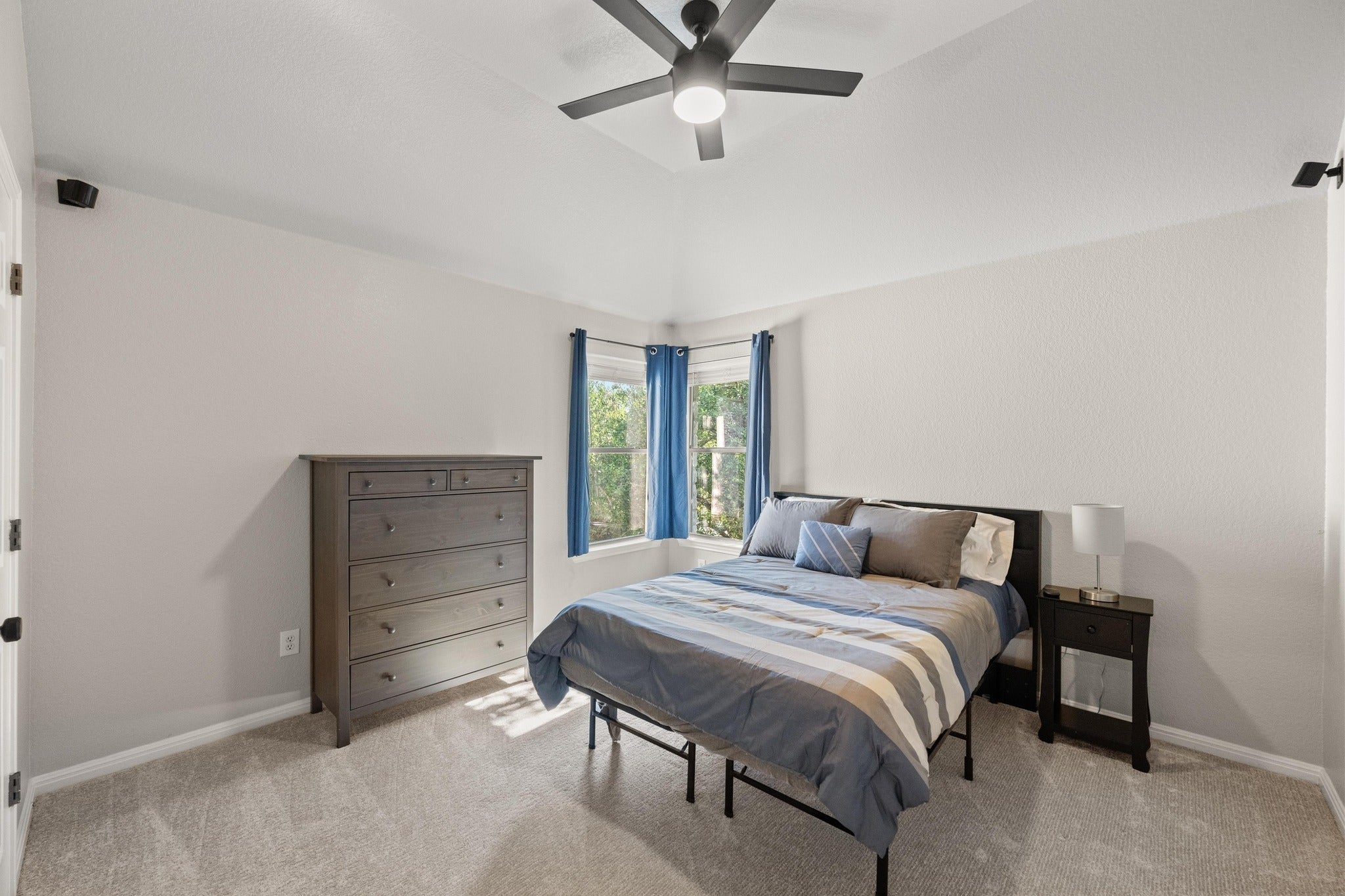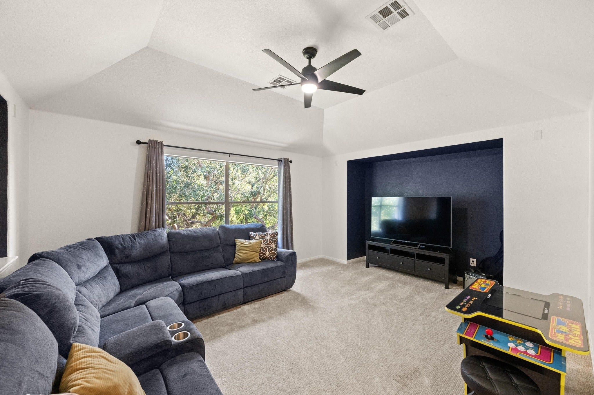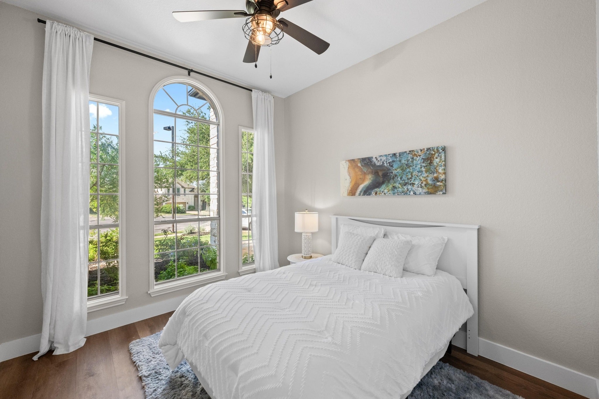 Nestled on a spacious .28-acre cul-de-sac lot in the desirable Circle C West community, this beautifully updated 4-bedroom, 3-bath home offers 3,123 square feet of thoughtfully designed living space. Featuring a highly sought-after layout with a primary suite and secondary bedroom on the main level, plus a dedicated office with double doors, this home provides exceptional flexibility for everyday living, guests, or multigenerational needs. The main living area flows seamlessly into the remodeled kitchen, complete with quartz countertops, updated cabinetry, and modern finishes, all opening to the breakfast area and family room. The main floor showcases updated flooring throughout with no carpet, creating a clean, cohesive feel. The primary suite offers a private retreat with a spa-like bathroom, including a soaking tub, walk-in shower, dual vanities, and a spacious walk-in closet. Upstairs, you’ll find two additional bedrooms, a full bath, and a versatile second living area ideal for a game room, media space, or additional lounge. Step outside to a park-like backyard shaded by mature trees, offering plenty of room to relax, entertain, or play. A 3-car garage provides ample space for vehicles and storage. Major updates completed in 2022 include a new roof and interior updates throughout, providing peace of mind and move-in-ready convenience. Located approximately 20 minutes from downtown Austin and zoned to Clayton Elementary, Gorzycki Middle School, and Bowie High School, with access to Circle C amenities including parks, trails, pools, golf, and nearby shopping and dining.