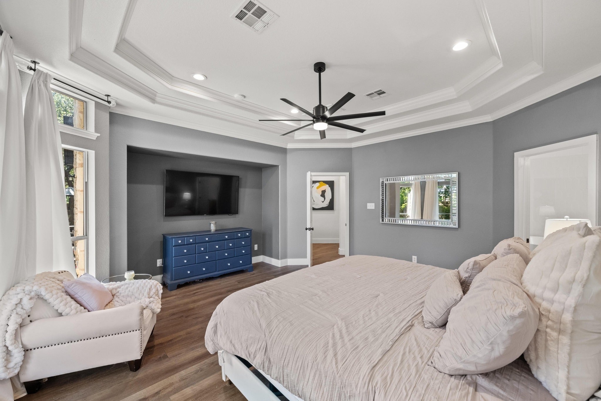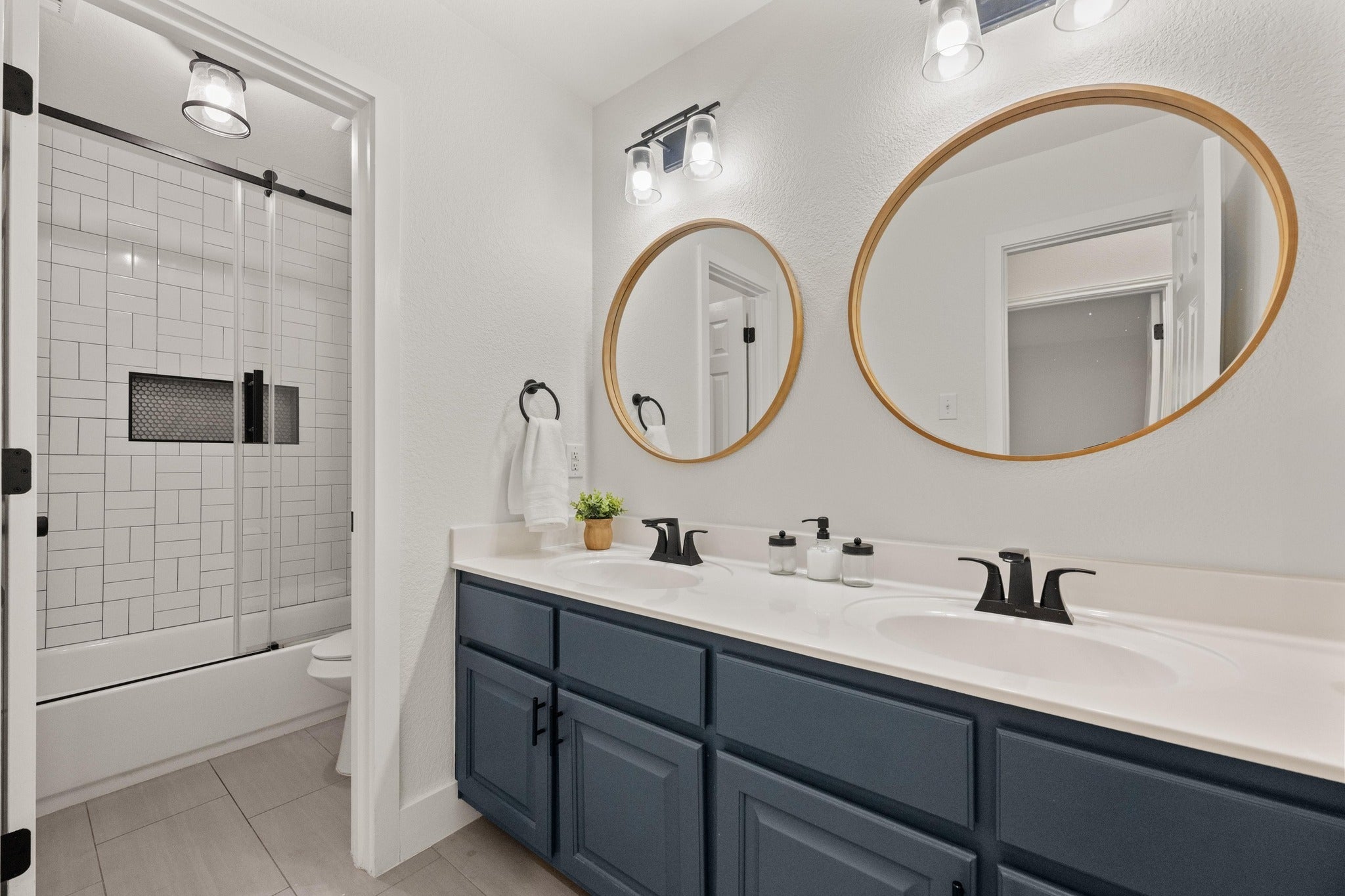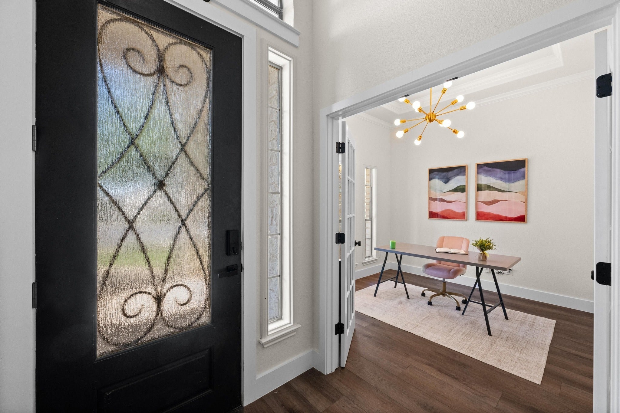 Nestled on a spacious .28-acre cul-de-sac lot in the desirable Circle C West community, this beautifully updated 4-bedroom, 3-bath home offers 3,123 square feet of thoughtfully designed living space. Featuring a highly sought-after layout with a primary suite and secondary bedroom on the main level, plus a dedicated office with double doors, this home provides exceptional flexibility for everyday living, guests, or multigenerational needs. The main living area flows seamlessly into the remodeled kitchen, complete with quartz countertops, updated cabinetry, and modern finishes, all opening to the breakfast area and family room. The main floor showcases updated flooring throughout with no carpet, creating a clean, cohesive feel. The primary suite offers a private retreat with a spa-like bathroom, including a soaking tub, walk-in shower, dual vanities, and a spacious walk-in closet. Upstairs, you’ll find two additional bedrooms, a full bath, and a versatile second living area ideal for a game room, media space, or additional lounge. Step outside to a park-like backyard shaded by mature trees, offering plenty of room to relax, entertain, or play. A 3-car garage provides ample space for vehicles and storage. Major updates completed in 2022 include a new roof and interior updates throughout, providing peace of mind and move-in-ready convenience. Located approximately 20 minutes from downtown Austin and zoned to Clayton Elementary, Gorzycki Middle School, and Bowie High School, with access to Circle C amenities including parks, trails, pools, golf, and nearby shopping and dining.