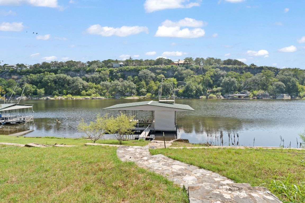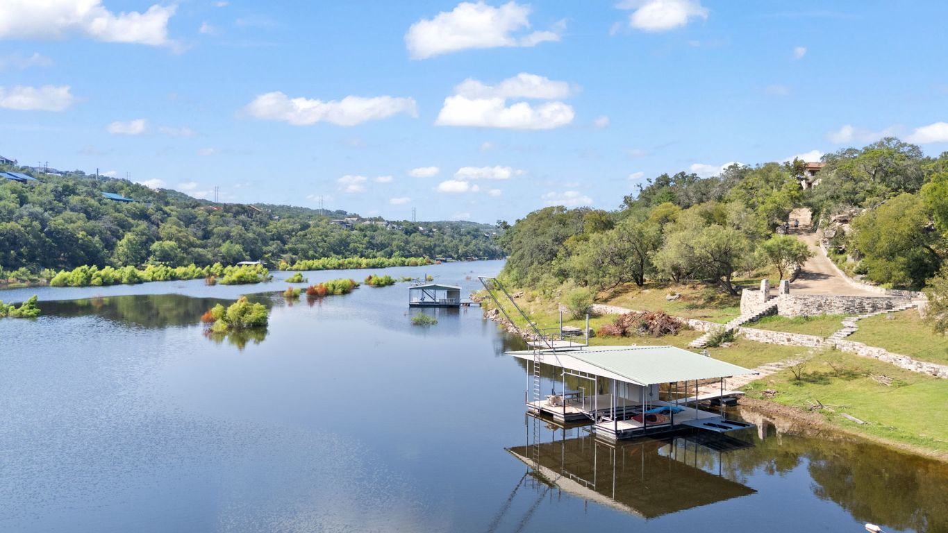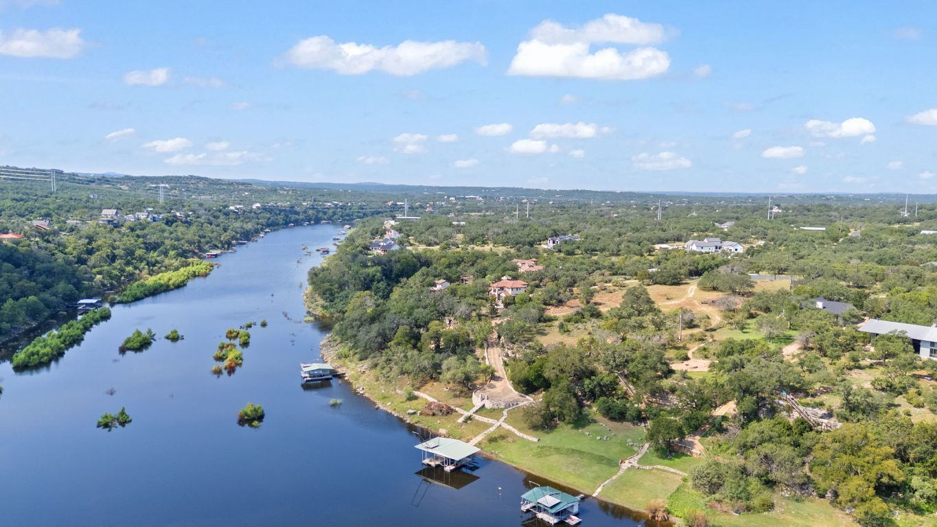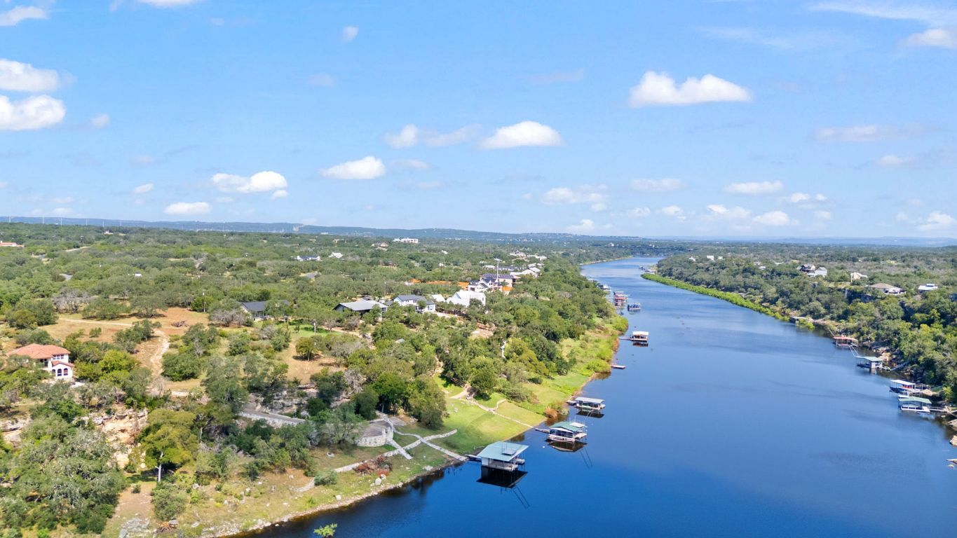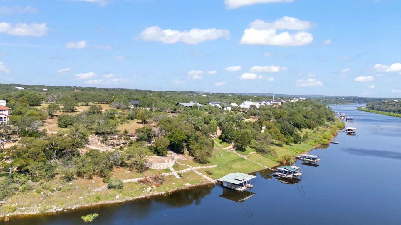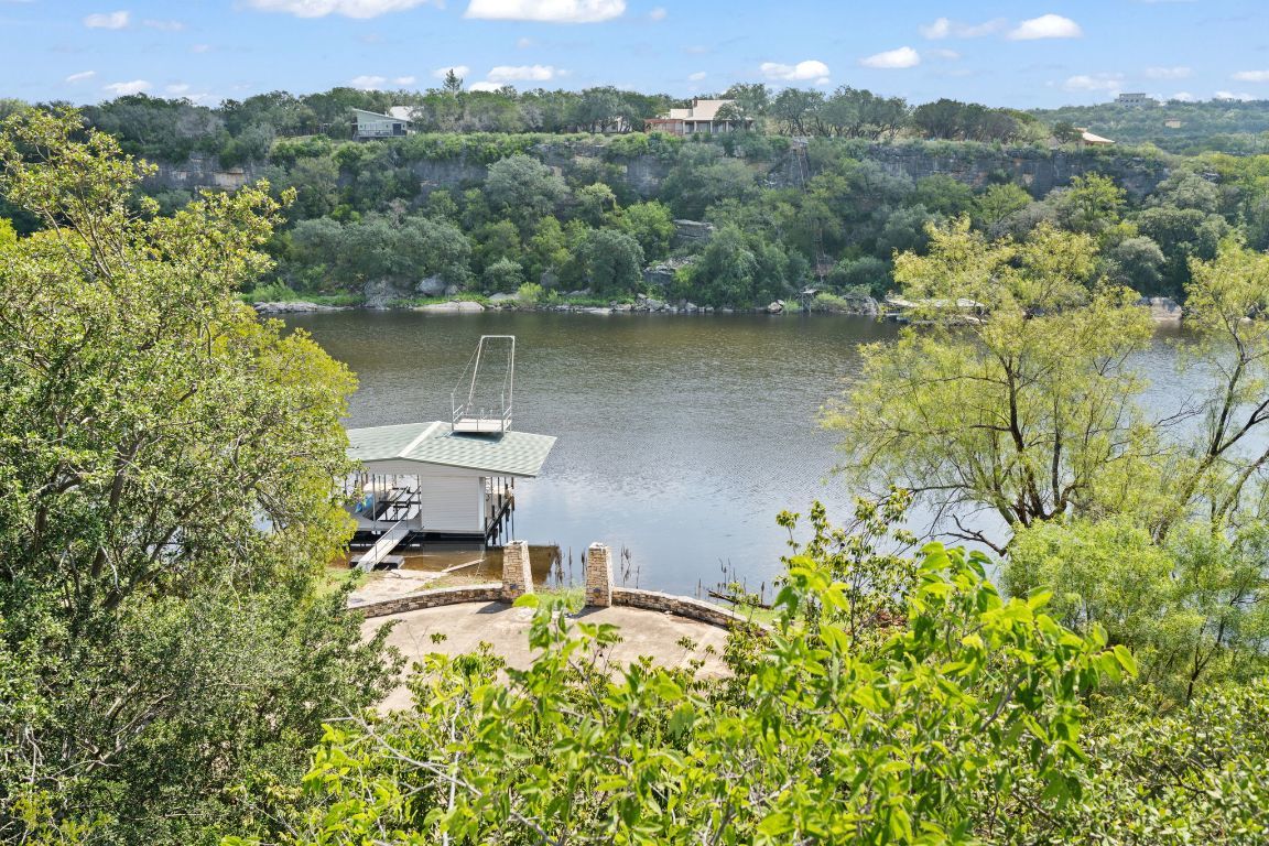 Gated Entrance into Paleface Ranch! Own a part of the Paleface Ranch with this one of a kind, approx. 3.362 ac. Waterfront lot with, like new, boat dock with swing and jet ski lift, along with locked storage room. The flatwork that has been done on these 2 lots combined into one, is nothing short of amazing. Drive right down a concrete driveway to a parking area below and just a few stone steps to the water's edge. Beach like by the water and plenty of area to entertain. Rock outcroppings from the cliff side is really spectacular! Possibly fossils millions of years old! VERY FEW LOTS WITH ALL THIS FLATWORK! Everything is in place to take it to the next level of finishes. Approx. 259 ft of waterfront on the beautiful Pedernales River, which once offered some of the best water skiing around the Hill Country. Build your dream home or make it the perfect lake house. Pale Ranch offers a 11.24 ac. home owners park with a boat ramp. Absolutely Incredible Property!