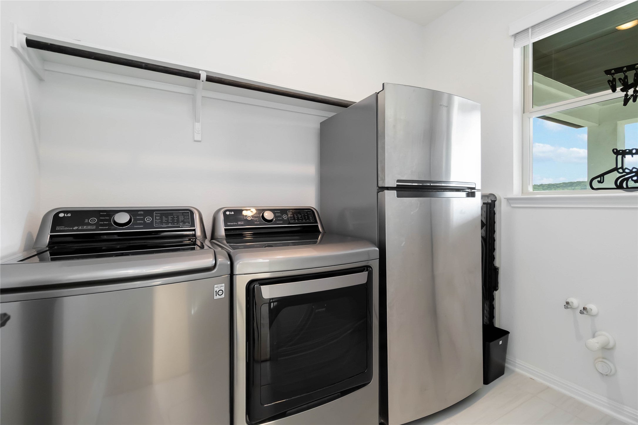 - Dryer, Dishwasher, Exhaust Fan, Microwave, Refrigerator, Washer, Built-In Gas Range, Built-In Oven, Cooktop, Gas Oven