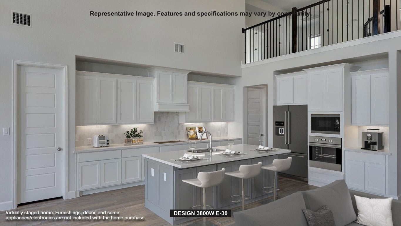 Front porch opens into a grand entryway embraced by a private home office with French doors, a formal dining room, and a spiral staircase. A guest suite is off the main entrance and features a full bathroom and walk-in closet. The two-story family room boasts a 19-foot ceiling and glass sliding doors, and a wood mantel fireplace. Hardwood floors throughout main living area. The kitchen hosts a morning area, a double wall oven, a 6-range gas range top, an island with built-in seating, walk-in pantry, butler's pantry and additional storage space. The primary bedroom features a wall of windows. The primary bedroom hosts dual vanities, a freestanding tub, separate glass enclosed shower, two-walk-in closets, a linen closet, and secondary access to the utility room. Upstairs on the second level you are greeted by a game room with French doors leading into a separate media room. Secondary bedrooms featuring walk-in closets and a Hollywood bathroom. An additional private guest suite completes the second floor. Two-story extended covered backyard patio. A mud room with a half-bathroom is located off the three-car garage.