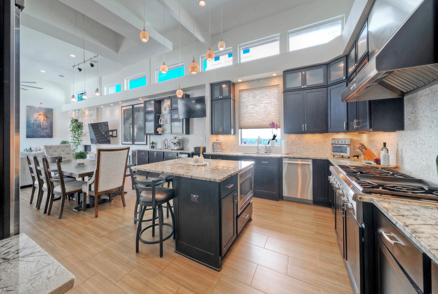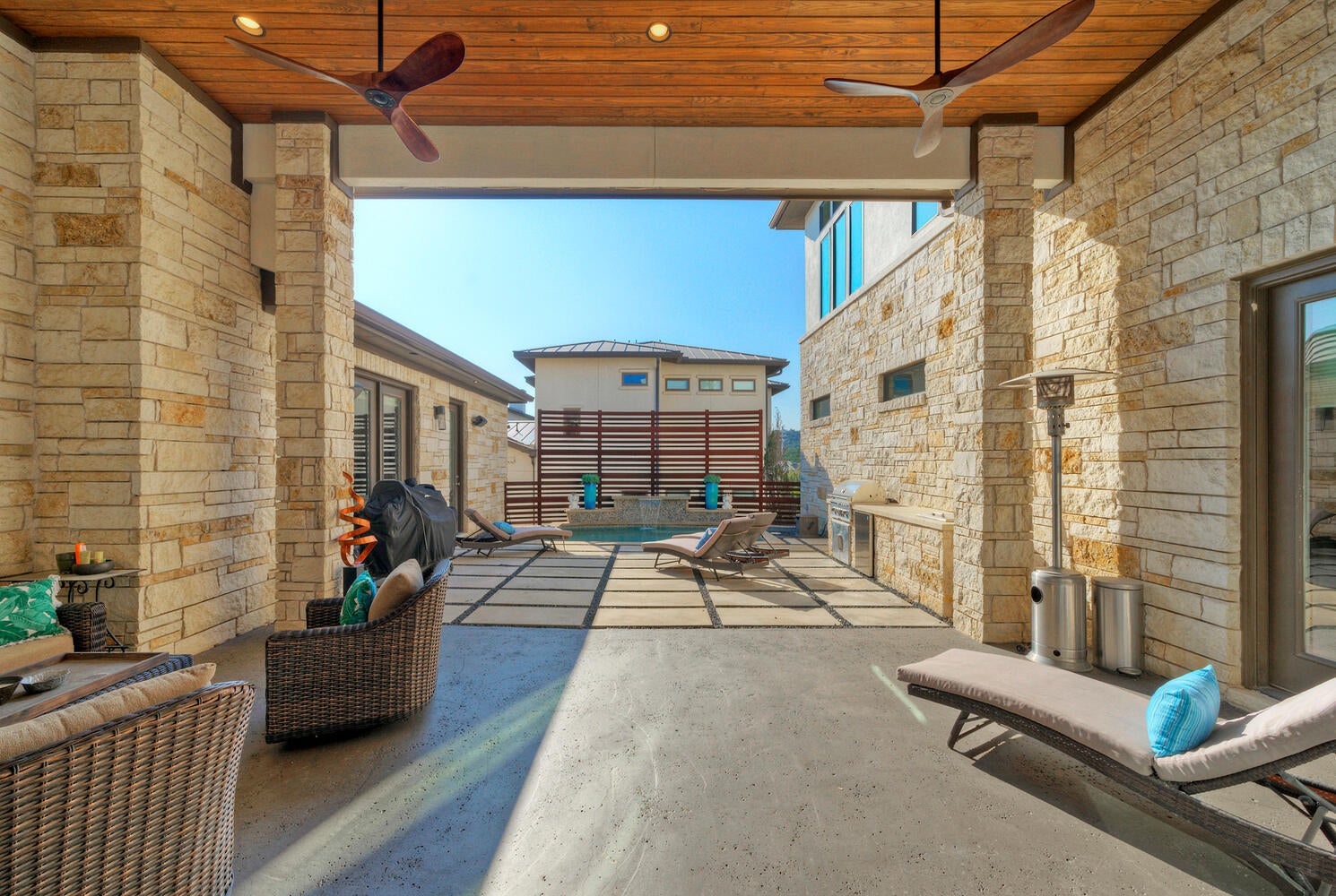 Welcome to 106 Bisset Court, tucked into The Bluffs—one of the most sought-after sections of Rough Hollow, known for its elevated setting, larger homes, and added privacy. If you’ve been considering new construction but don’t want the wait, added costs, or construction around you, this home offers a move-in ready alternative with everything already in place. This 4-bedroom, 4-bath home offers 3,565 square feet with a functional layout, including the primary suite and a private guest or mother-in-law suite on the main level, complete with its own dry bar and full bath—ideal for extended stays or multigenerational living. The open living areas are comfortable and practical for everyday use. The kitchen features a Thermador 6-burner gas range, built-in refrigerator (conveys), oversized island, granite countertops, and a bar area with ice maker. A whole-home automation system controls lighting, HVAC, audio, security, and more. Additional upgrades include blackout shades, updated lighting, UV-protected windows, vessel sinks, and art lighting. The primary suite offers tray ceilings, its own A/C unit, and a large custom walk-in closet. Upstairs living areas capture partial Lake Travis and Hill Country views. The outdoor space is designed as a private courtyard centered around the pool and spa, surrounded by the home for a more intimate setting. With a covered patio, cabana bath access, and outdoor kitchen, it’s built for enjoyment without the upkeep of a large yard—ideal for a low-maintenance, lock-and-leave lifestyle. Rough Hollow residents enjoy marina access on Lake Travis, resort-style pools, trails, fitness center, parks, and community events. Zoned to Lake Travis ISD and just minutes to Lakeway, Bee Cave, and the Hill Country Galleria.
