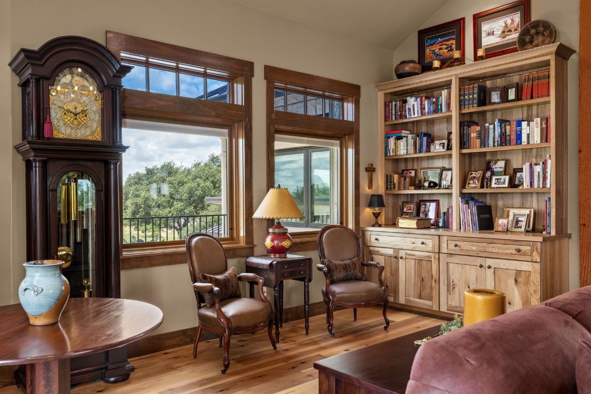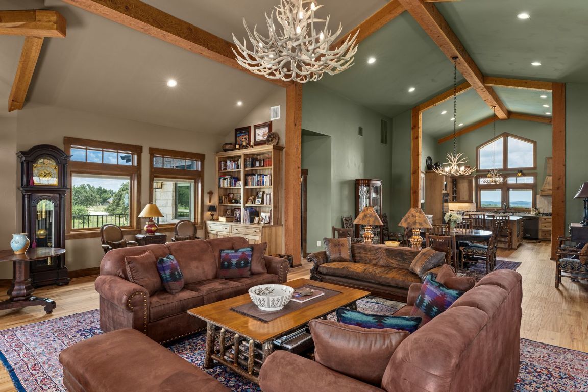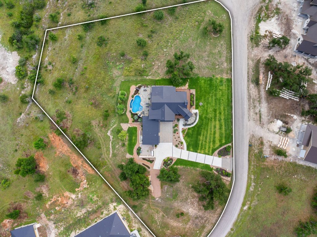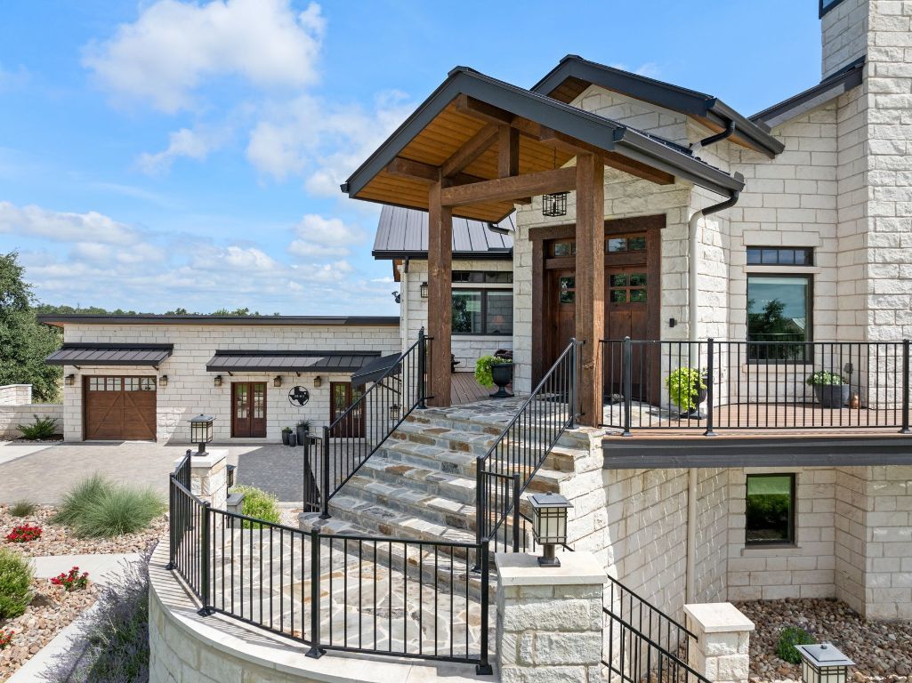 Welcome to 115 Trophy Oak, a 4,778 SF custom estate set on 2.49 acres in The Point Enclave at Vineyard Ridge—a gated community ideally located between Fredericksburg and Johnson City, in the heart of Texas Wine Country. Surrounded by rolling hills and scenic vineyards, this property offers a rare opportunity to enjoy refined Hill Country living with both privacy and convenience. The five-bedroom, five-bathroom residence is thoughtfully designed with high-end finishes and a warm, inviting aesthetic. The main home features maple wood flooring, 18-foot vaulted ceilings with exposed pine and fir beams, and a striking limestone fireplace that anchors the spacious great room. The gourmet kitchen is both functional and elegant, featuring a leathered granite island, custom cherrywood cabinetry, soapstone countertops, black stainless KitchenAid appliances, a 5-burner gas stove, and a wine fridge—making it ideal for both entertaining and daily living. A detached casita provides added versatility with its own living room, kitchen, bedroom, and private garage, perfect for guests or multi-generational living. Outdoor amenities include a Blue Haven beach-entry pool, Trex decking, a flagstone patio, and multiple lounge areas set among native landscaping—ideal for taking in the serenity of the Hill Country. Located just minutes from Fredericksburg’s celebrated restaurants, tasting rooms, and boutique shops, this home delivers the best of the region’s lifestyle in a secure, gated setting with a low 1.055% tax rate.