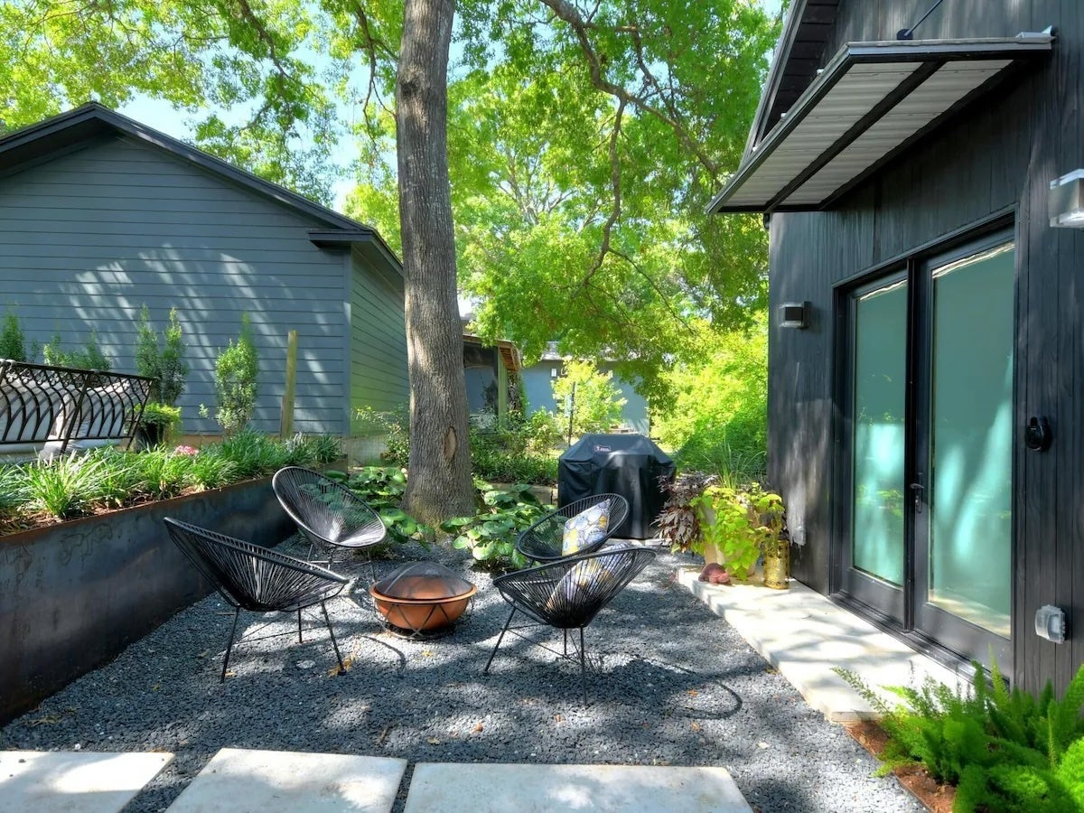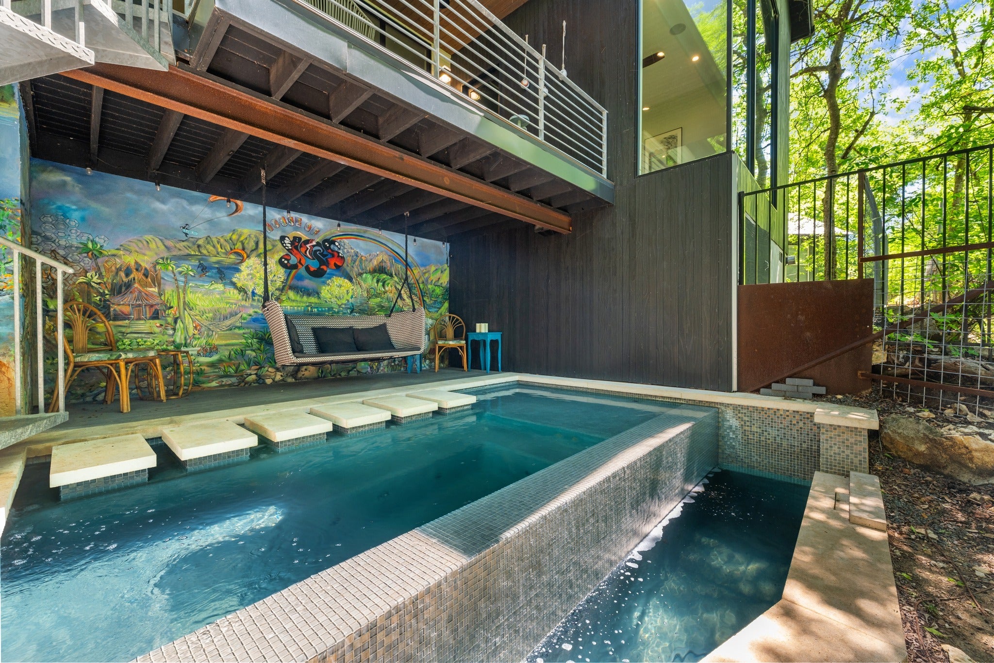 Set on a quiet non-thru street in the heart of Zilker, 700 Jessie Street is a rare 2018 modern retreat offering architectural pedigree, privacy, walkability, luxury, and exceptional flexibility. Built by Austin Impressions, with architecture by Rodney Palmer of Cornerstone Architects and interiors by Glynis Woods Design, this design-forward property spans 4,227+/- sqft on a private .20+ acre lot. Two luxury homes on one lot create a unique opportunity for multigenerational living, guest accommodations, executive rental use, or income-producing flexibility. Live in one residence and offset expenses by renting the other, with short-term rental potential creating a compelling ownership opportunity. The property includes a 4BD/3BA main residence with loft/flex space, first-floor ensuite with separate entrance and kitchenette, plus a detached 2BD/2BA ADU with bonus room, private entrance, and carport. Inside, warm oak floors, 10' ceilings, smooth walls, expansive glass, and custom closet systems create a refined yet inviting atmosphere. The open-concept living spaces flow into a chef’s kitchen with custom cabinetry, waterfall counters, large island, Wolf and Sub-Zero appliances, steam oven, microwave drawer, and gas fireplace. The main-level primary suite offers a spa-like retreat with sauna and soaking tub. Outdoors, a heated pool and hot tub, turf, low-maintenance landscaping, irrigation, and greenbelt views create a private resort setting. Energy-efficient features include spray foam insulation, solar, tankless water heaters, dual-speed HVAC, metal roof, and Austin Energy Green Building standards. Smart features include whole-house audio, security cameras, strong WiFi, app control for lighting, HVAC, pool, hot tub, and irrigation, plus EV charging. Minutes from Barton Springs, Zilker Park, Lady Bird Lake, South Lamar, South Congress, and downtown Austin. See attached floor plan - main home @ 3,116 SF; ADU @ 1,311 SF for total of 4,427 SF.