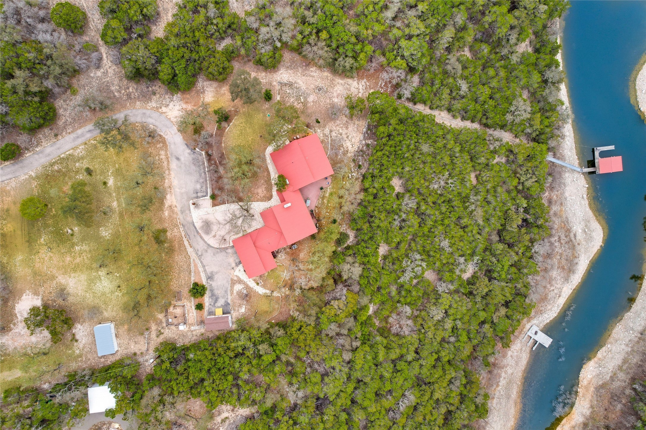 Privacy. Acreage. This rare opportunity on Hatters Cove in the Lakeshore Ranch community offers nearly 3.5 acres of serene Hill Country beauty! Located in an ETJ with a voluntary HOA community, this property is ideal for buyers seeking a primary residence or private lake retreat. Enjoy a lower tax rate than the City of Lago Vista. Unique Features: • Community boat ramp • Calm cove waters — perfect for swimming, paddle boarding, and relaxing • Mature trees, panoramic cove views Inside, natural light fills the home with multiple access points to the expansive back deck overlooking the cove. The spacious living room, featuring a fireplace, flows into the dining area which includes a wet bar, and the kitchen connects seamlessly for easy entertaining. The primary suite offers high ceilings, built-in shelving, tranquil views, and an en-suite bath with walk-in shower and jetted tub. Two additional bedrooms, full bath, utility room, and a versatile upstairs loft provide flexibility for a bunk room, office, or play space. Recent improvements include: • Well, pressure tank, and water softener system replaced • Septic recently pumped and repaired Additional features: • Fenced backyard • Two storage sheds • Garage with workshop area • Refrigerator, washer, and dryer convey Seller is highly motivated. Lakeshore Ranch is known for generous spacing between homesites, peaceful waterfront living, and access to the charm of Lago Vista — all within convenient reach of Austin. This is your opportunity to own a truly private lakeside escape.
