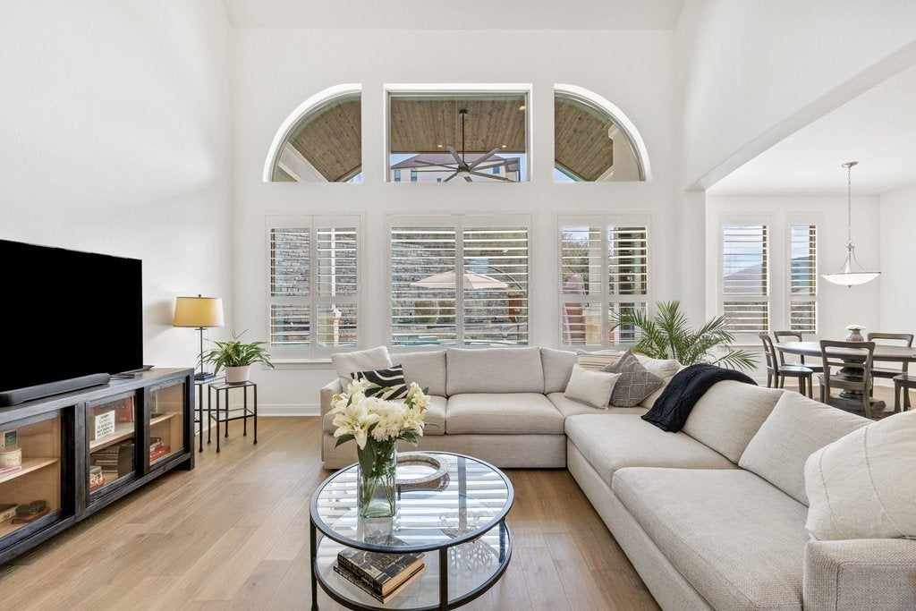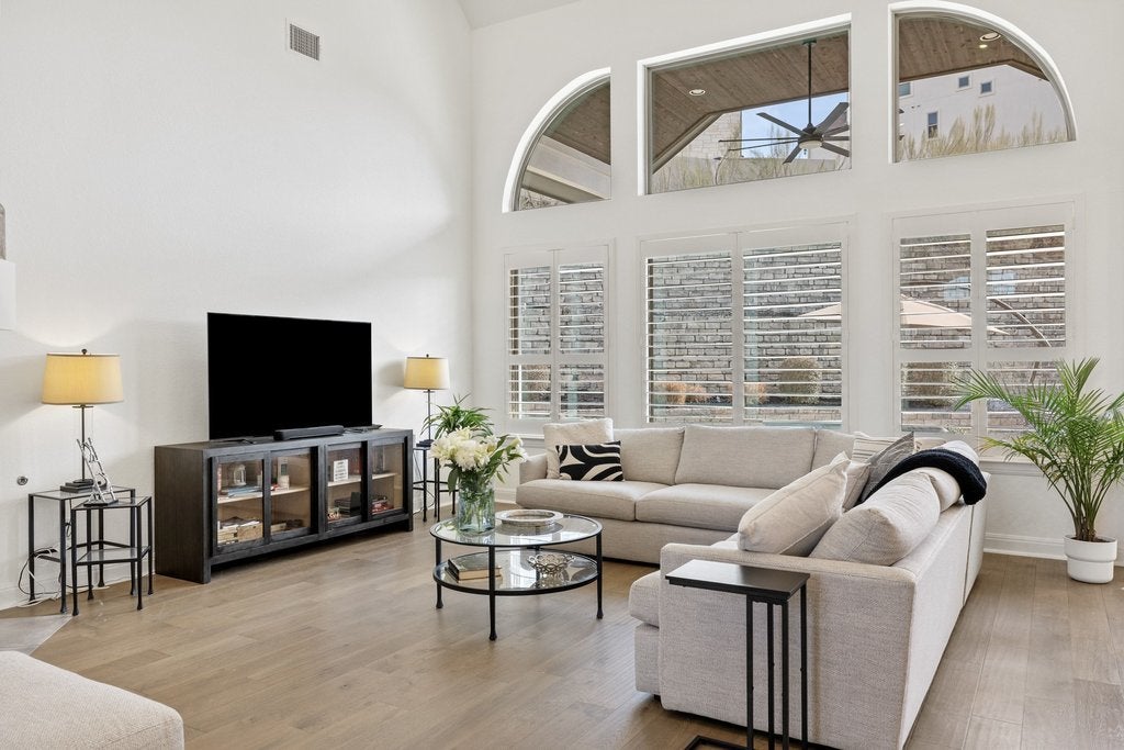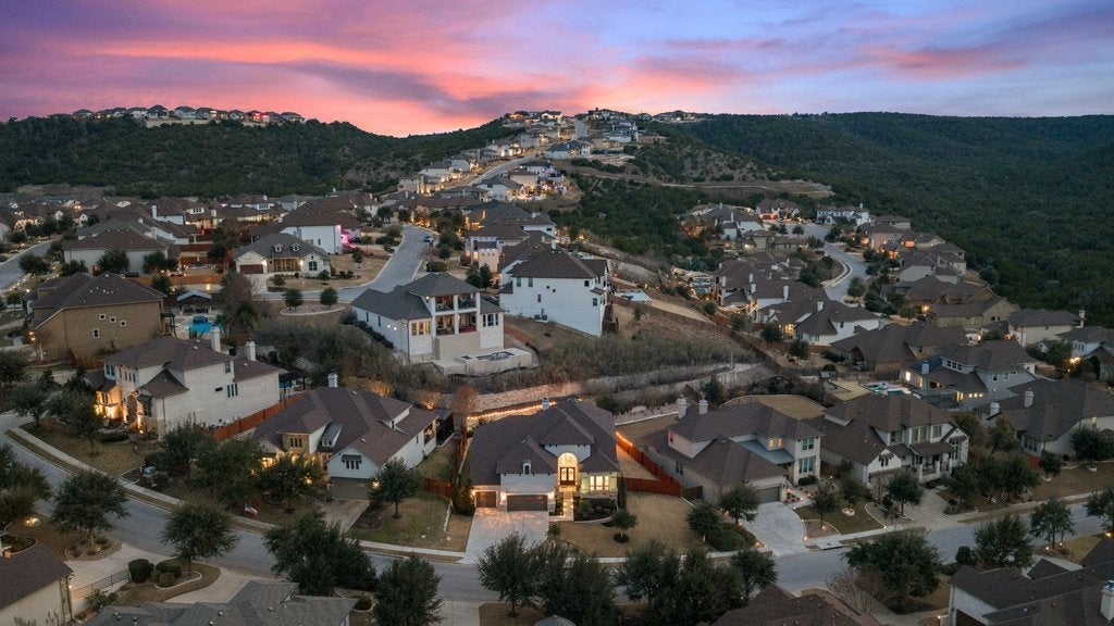 Beautifully updated and impeccably maintained, this Drees-built residence is located within the gated Davenport Summit enclave of Sweetwater and offers resort-style living with a sparkling pool, spa, and slide. Situated on a quarter-acre lot, 5812 Davenport Divide Rd spans 4,455 square feet of thoughtfully designed living space balancing scale, comfort, and flexibility. The expansive floor plan includes five bedrooms and four and a half bathrooms, with a spacious primary suite on the main level and a secondary first-floor bedroom ideal for guests or multi-generational living. A private office at the front of the home provides separation for focused work, while the upper level features a game room and dedicated media room, offering versatile space for gathering and everyday living. Interior finishes reflect quality and warmth, including plank wood flooring, beamed dining ceilings, double front doors, plantation shutters, and a light-filled white kitchen with stainless steel appliances, farmhouse sink, expansive walk-in pantry, and generous cabinetry. Thoughtful detailing and cohesive design elements throughout create a refined, move-in-ready presentation. The backyard is designed for year-round enjoyment. A resort-style pool and spa anchor the outdoor space, complemented by an expansive deck and covered patio for dining, lounging, and entertaining under Texas skies. The forward-facing three-car garage features epoxy flooring and built-in storage for polished functionality. Sweetwater residents enjoy two resort-style pools, a private fitness center, sport courts, a putting green, dog park, and miles of scenic trails. Zoned to acclaimed Lake Travis ISD and located minutes from Lake Travis and premier golf courses, this address pairs natural beauty with everyday convenience. A rare offering within one of Sweetwater’s most sought-after gated enclaves. Private showings available by appointment.