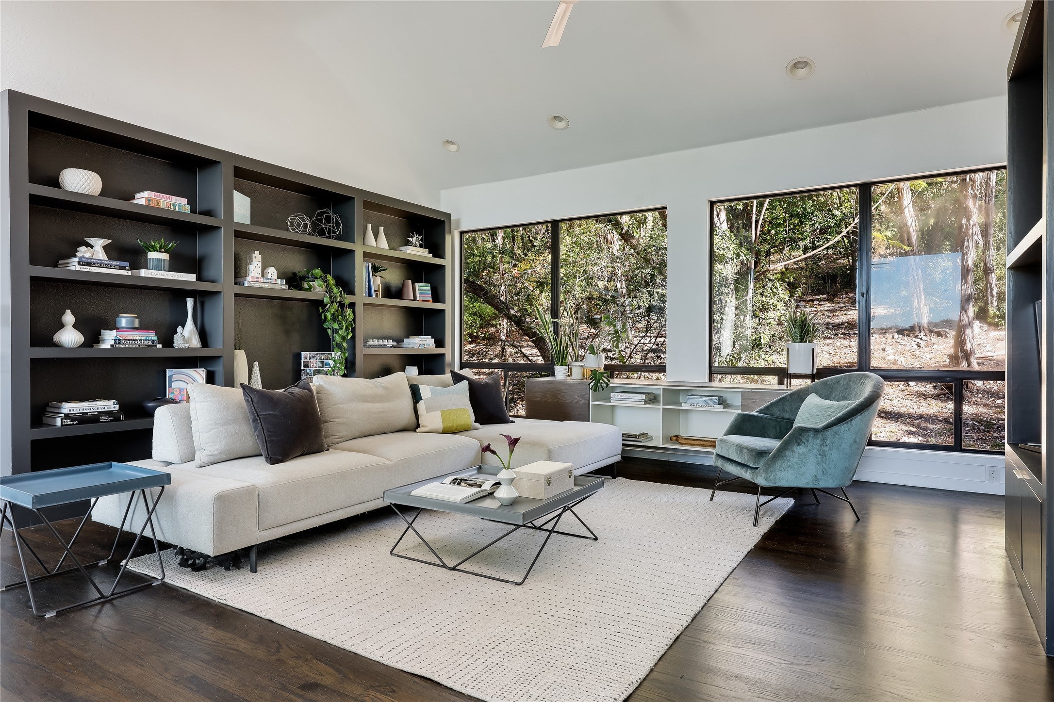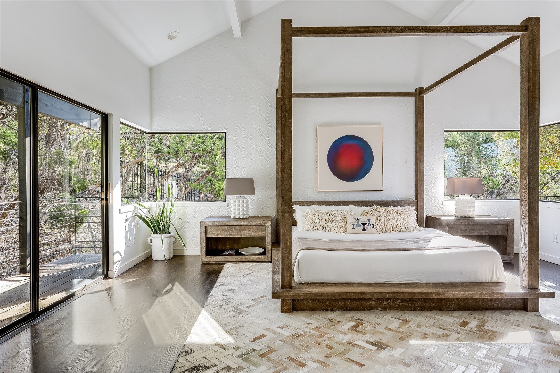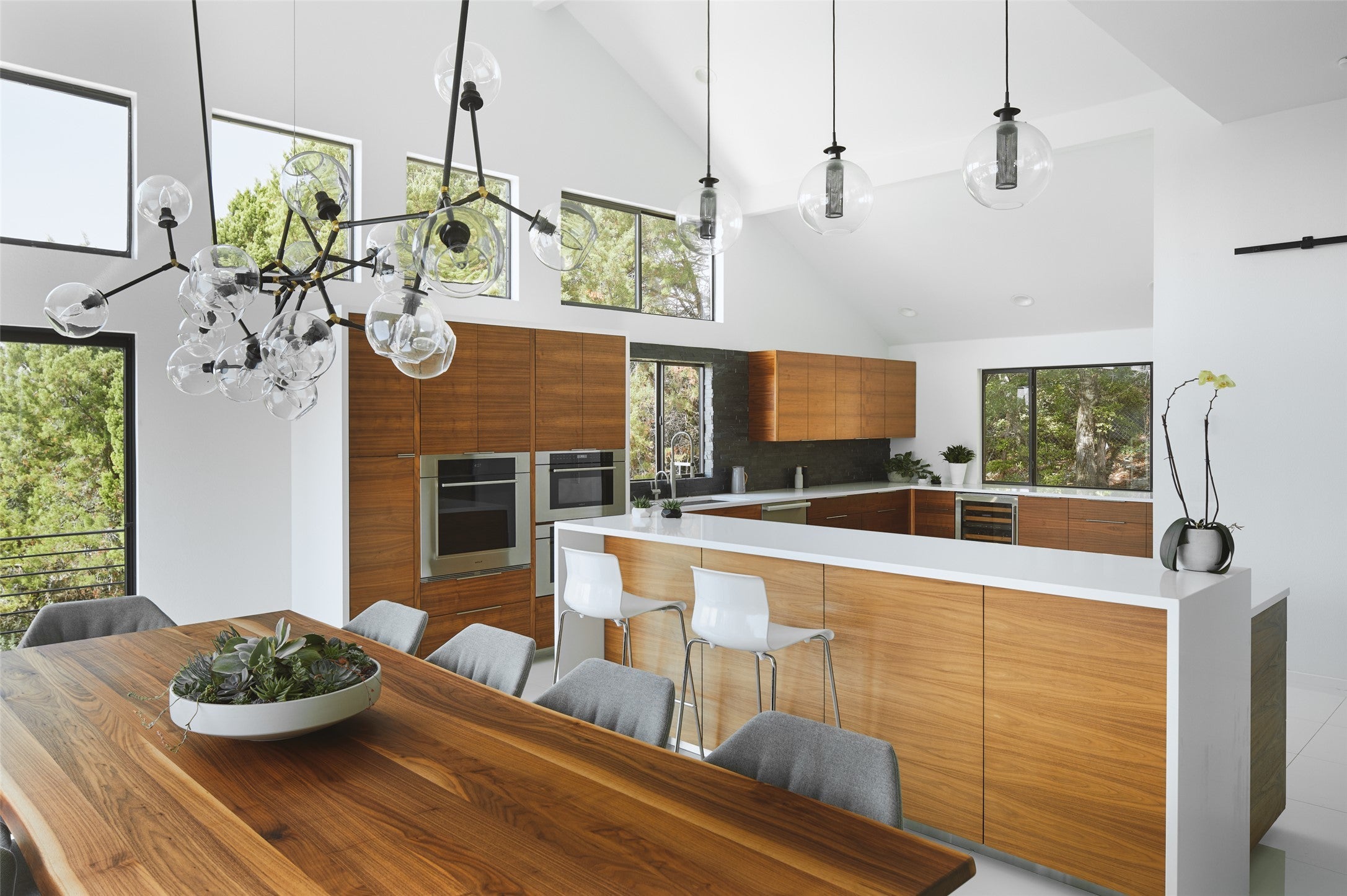 Set high in the hills of Westlake, 4713 Via Media is an exquisite blend of architectural integrity and contemporary sophistication. Originally envisioned by esteemed architect Alan Taniguchi and thoughtfully reimagined and expanded in 2018 by Matt Fajkus Architecture, Risher Martin Fine Homes, and Michelle Tumlin Design, the residence captures the essence of modern Austin living—where panoramic Hill Country vistas, natural materials, and thoughtful design converge in perfect harmony. Every room opens gracefully to the outdoors, inviting light and landscape into daily life through walls of glass and a series of private decks and patios. Smooth white stucco, rich wood accents, and honed stone surfaces create a serene, enduring palette that complements the surrounding hills. The kitchen serves as the heart of the home, appointed with custom walnut cabinetry, a waterfall-edge island, and Wolf appliances—designed for both everyday comfort and elevated entertaining. A detached studio extends the home’s architectural rhythm, offering flexible space for creative pursuits or guests. The courtyard, anchored by a shimmering pool and spa, is framed by covered patios and native landscape, creating a resort-like sanctuary just minutes from downtown Austin. Blending craftsmanship, warmth, and connection to its natural surroundings, this Westlake residence embodies the enduring beauty of refined Austin living.